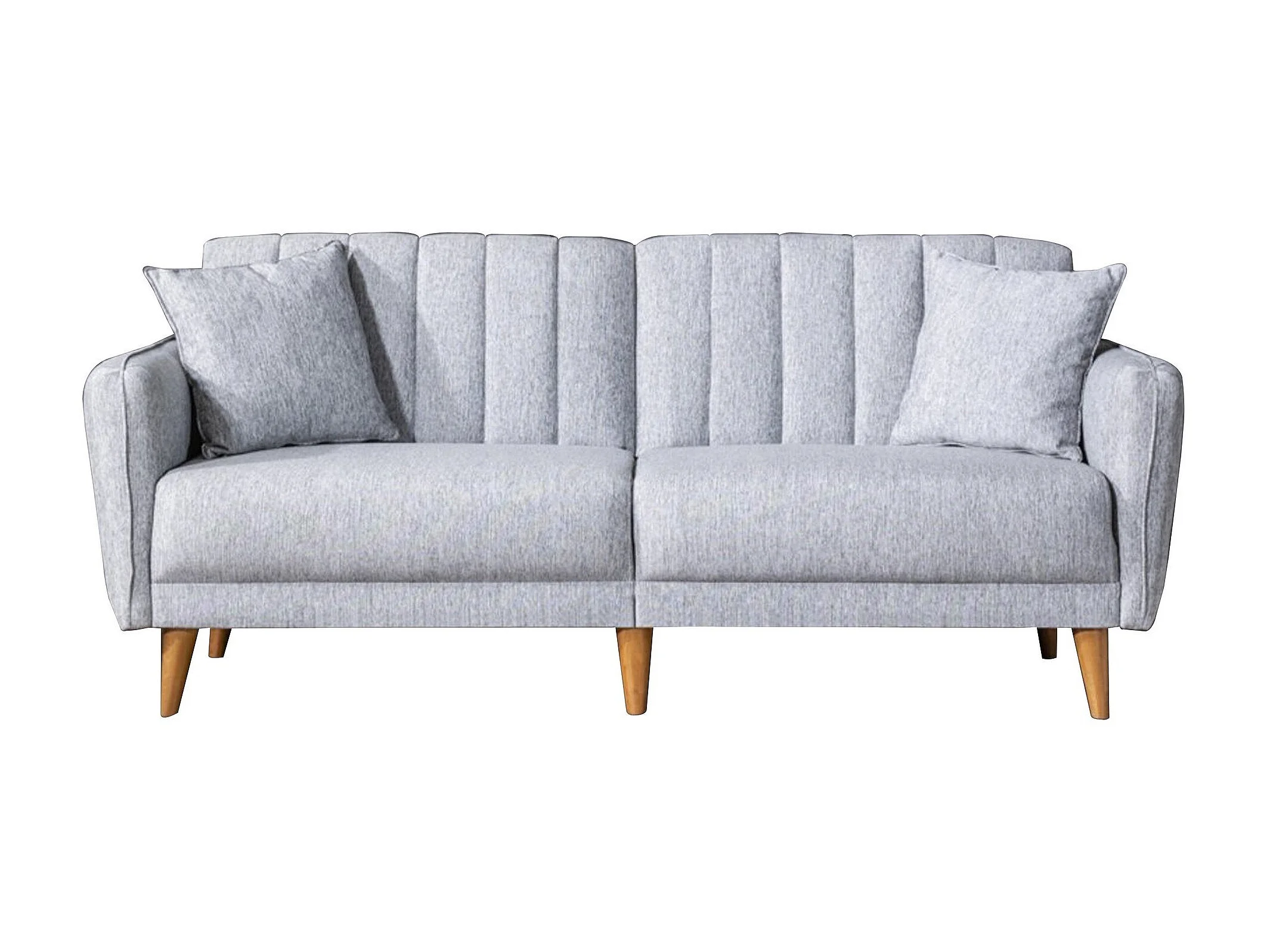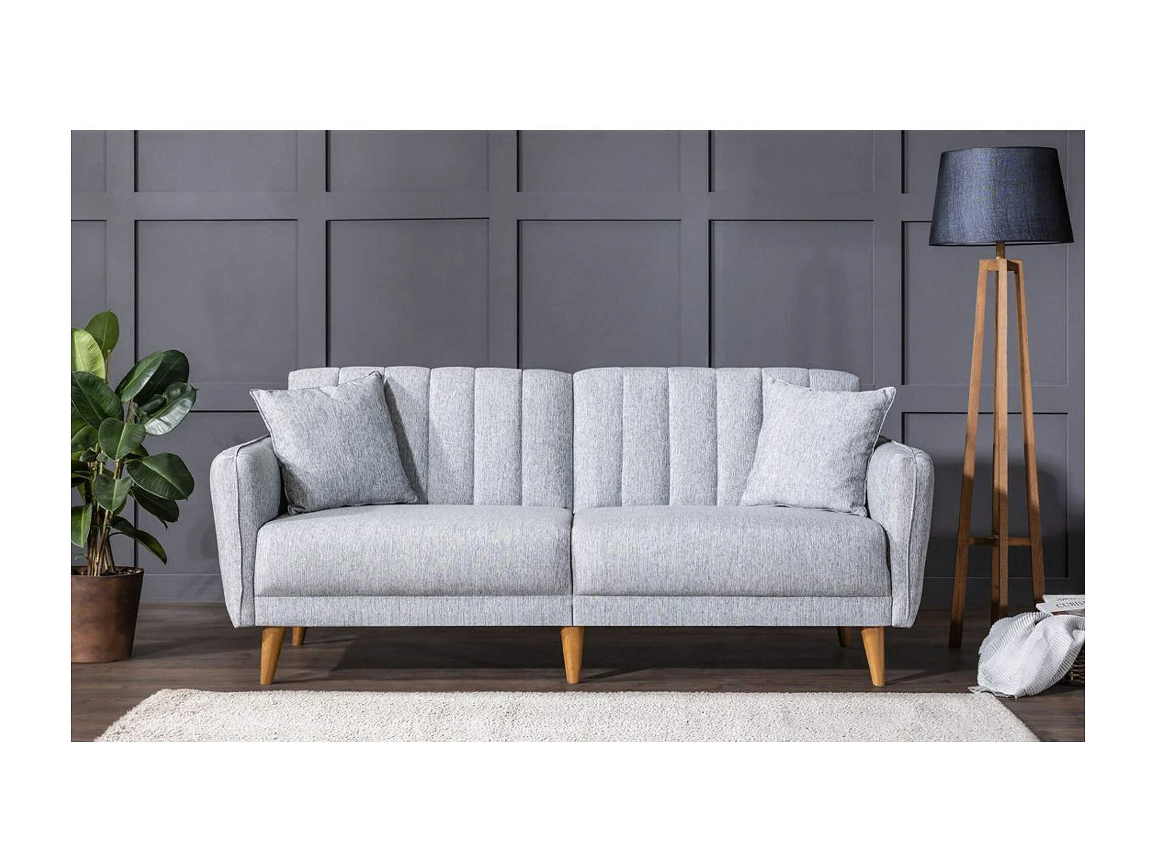 Canapé lit 3 places tissu lin gris clair et pieds bois naturel Shekal 210cm
