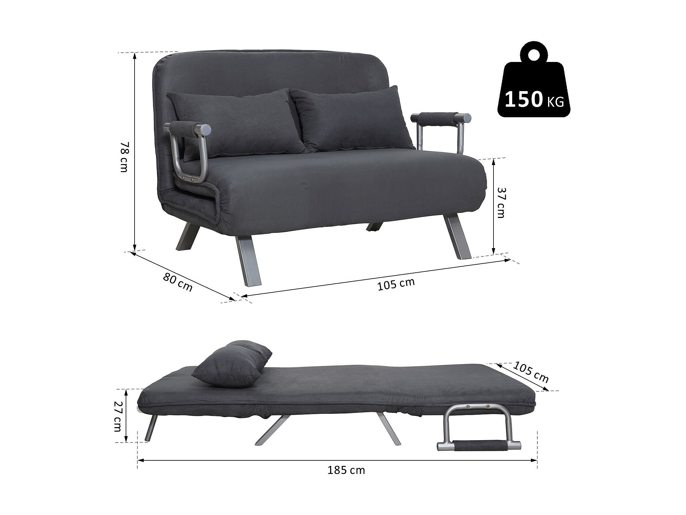 Canapé-lit canapé convertible 2 places déhoussable grand confort 2 coussins fournis pieds accoudoirs métal suède anthracite