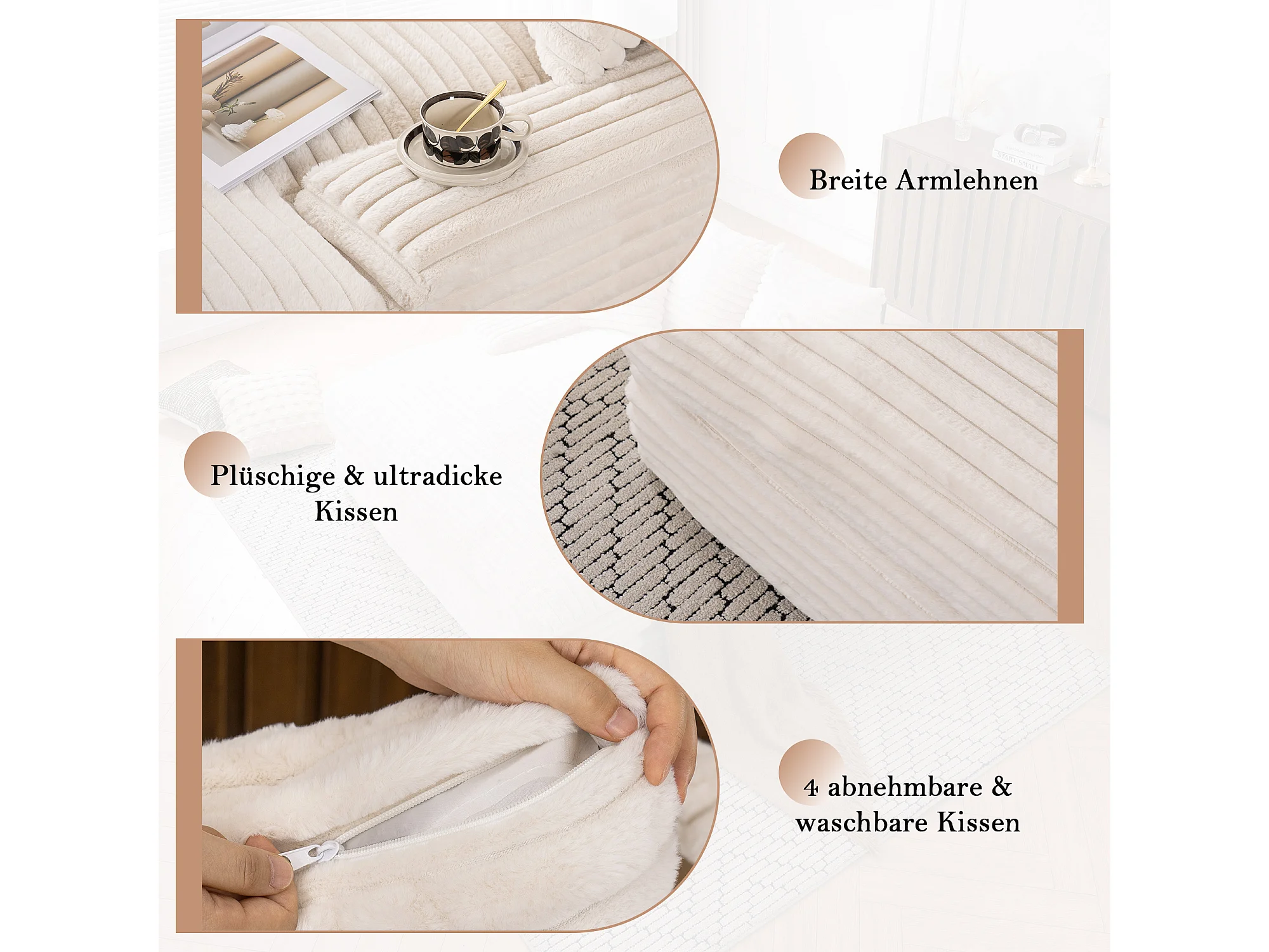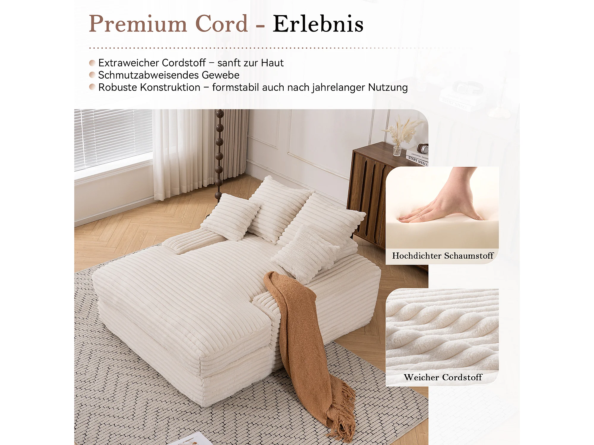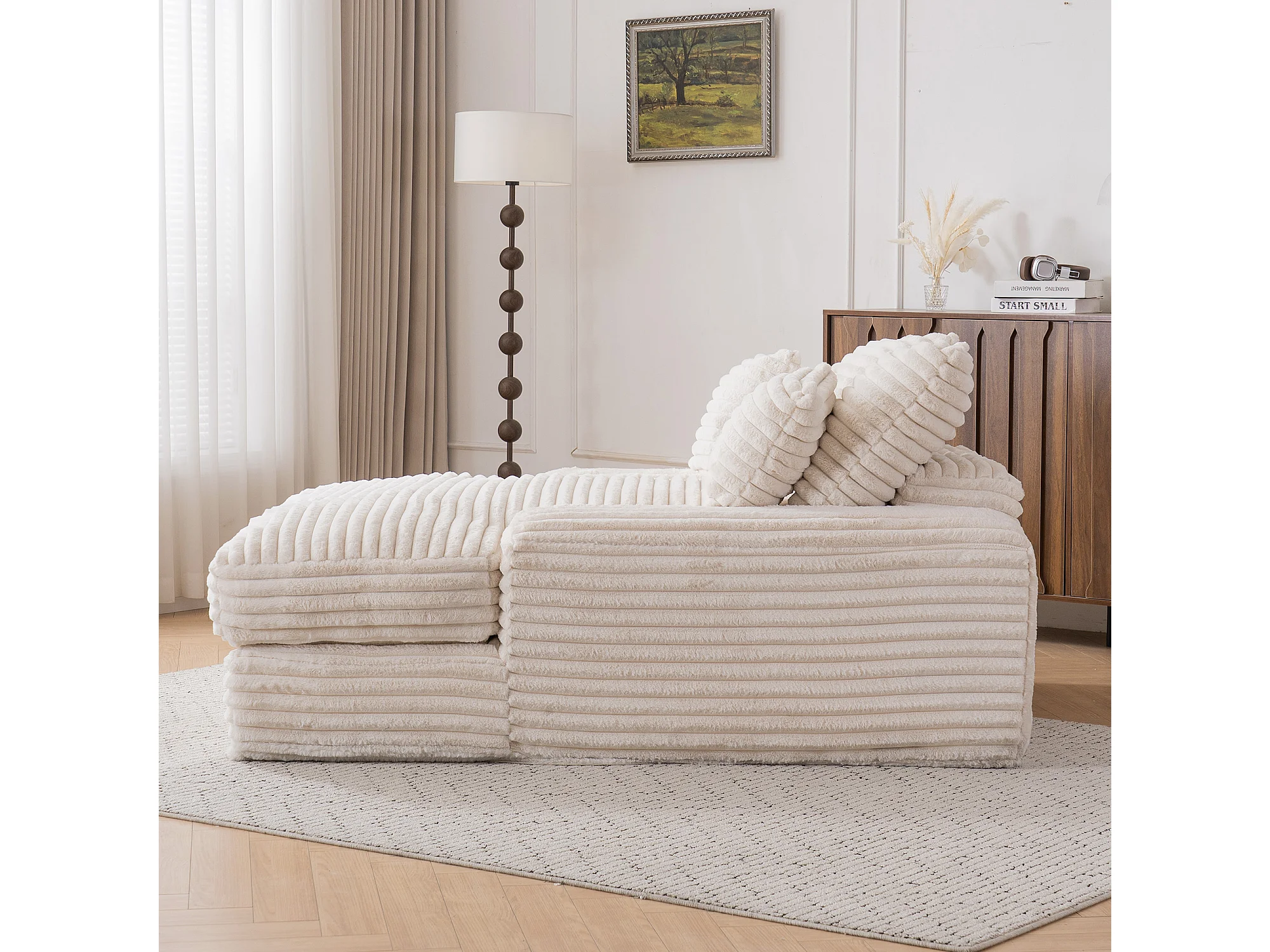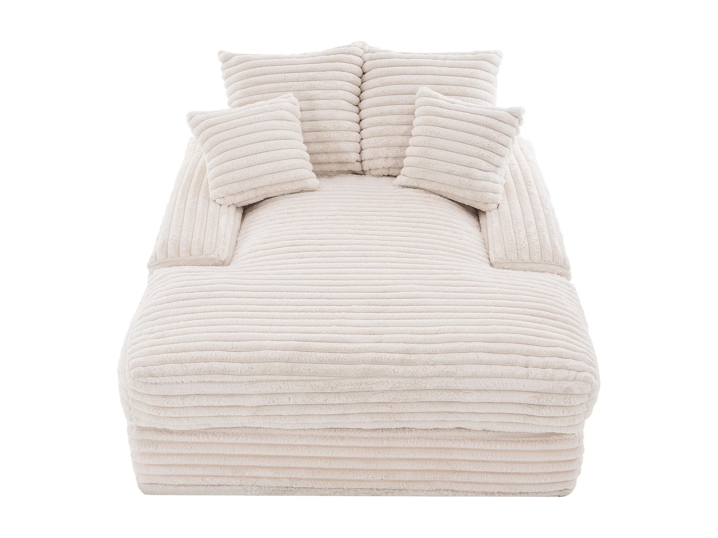 Canapé lit chaise longue avec 4 coussins - Velours côtelé beige