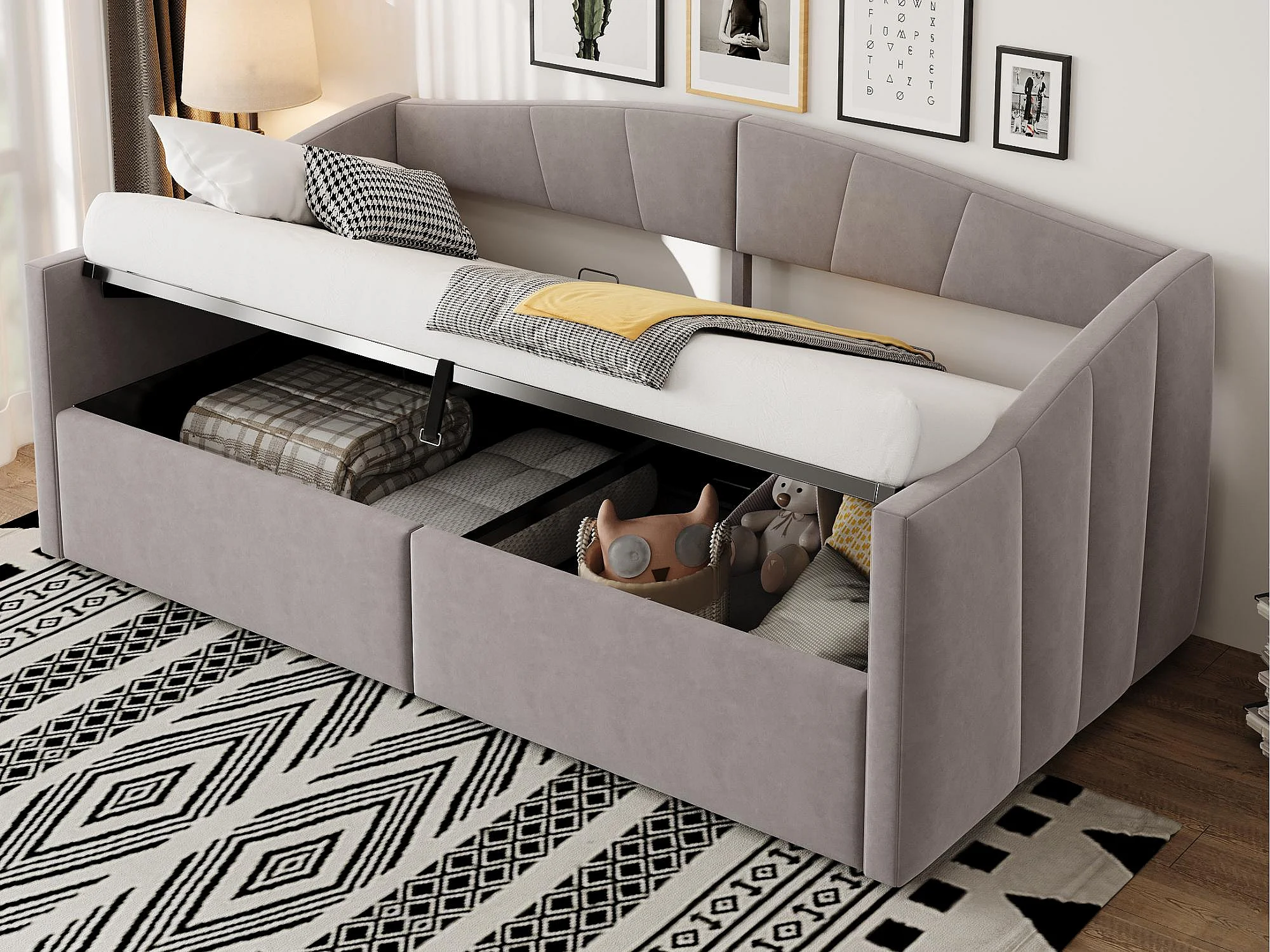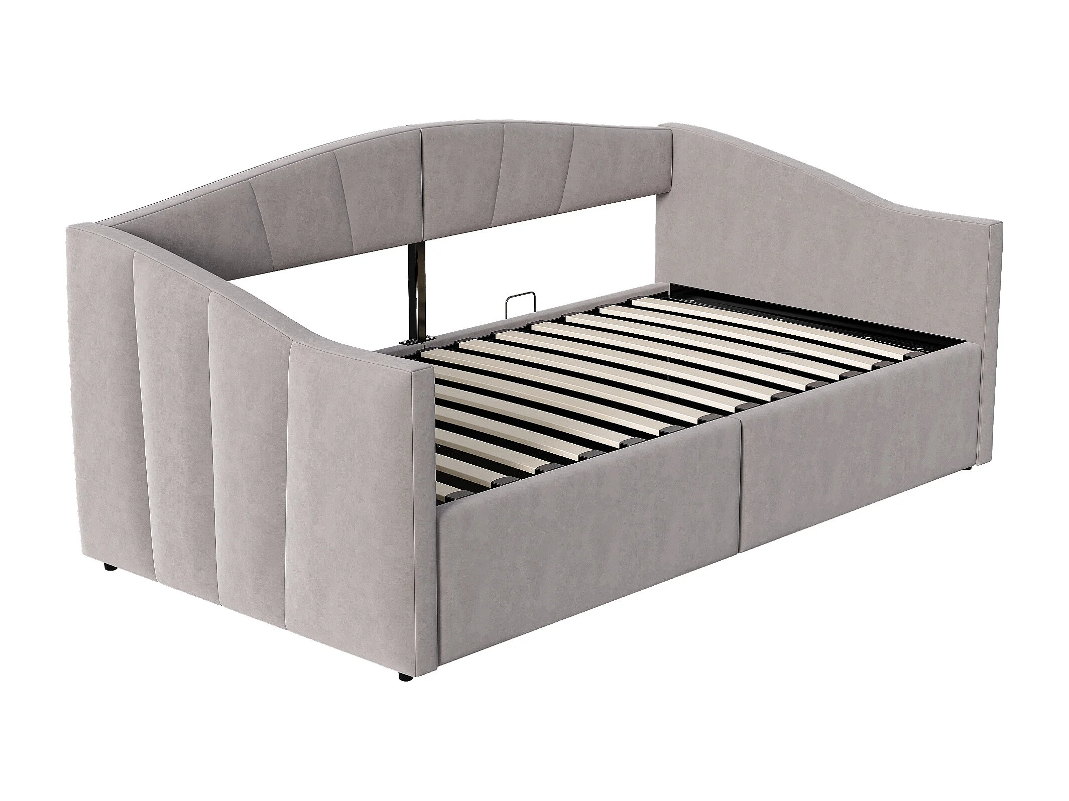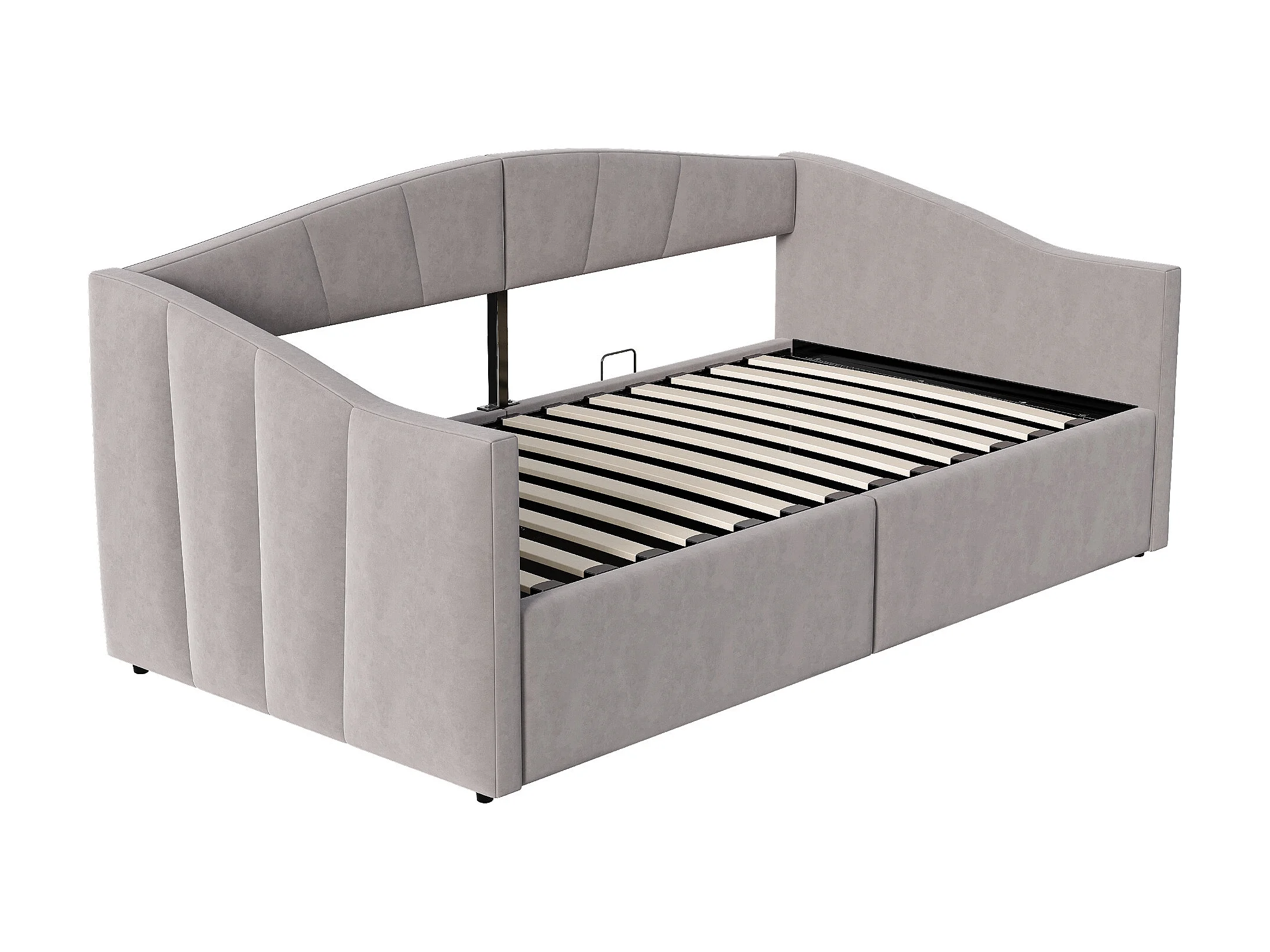 Canapé-lit coffre 90x200cm - sommier à lattes - tissu velours - gris clair (matelas non inclus)