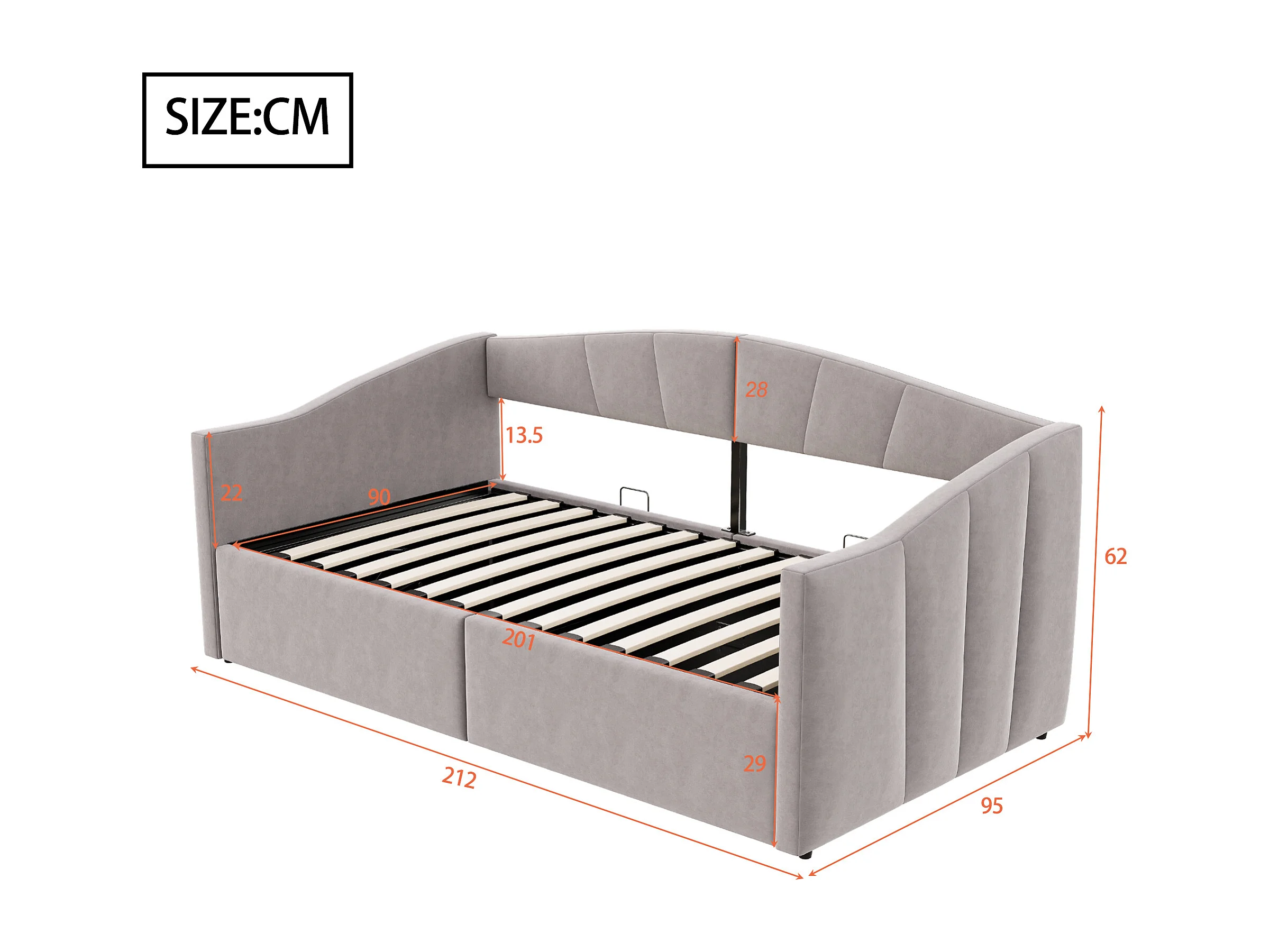 Existe en : Gris clair / Avec sommier