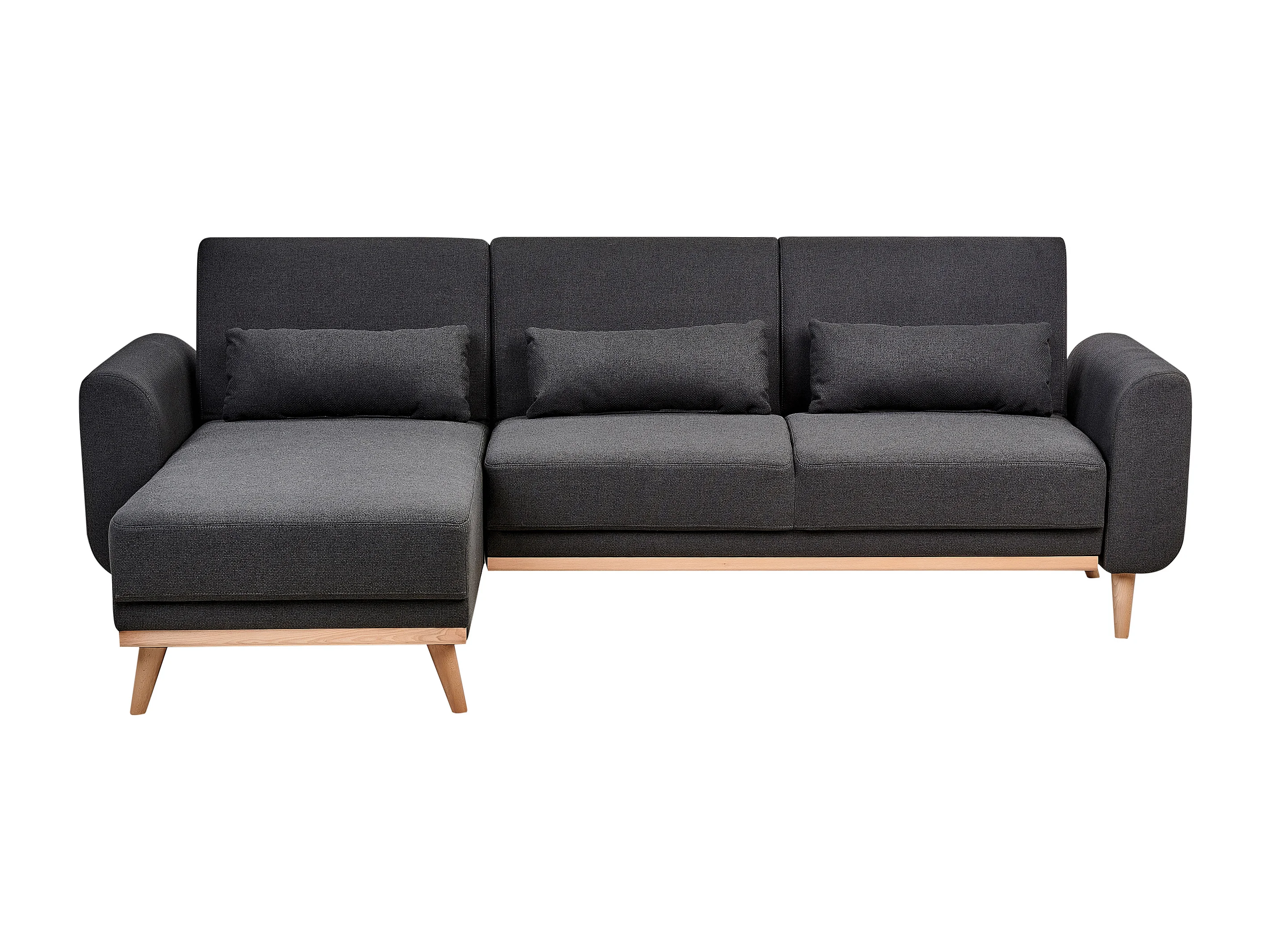 Canapé-Lit d'Angle à Droite Moderne en Tissu Pieds en Bois Coussins Supplémentaires Noir Ollsta