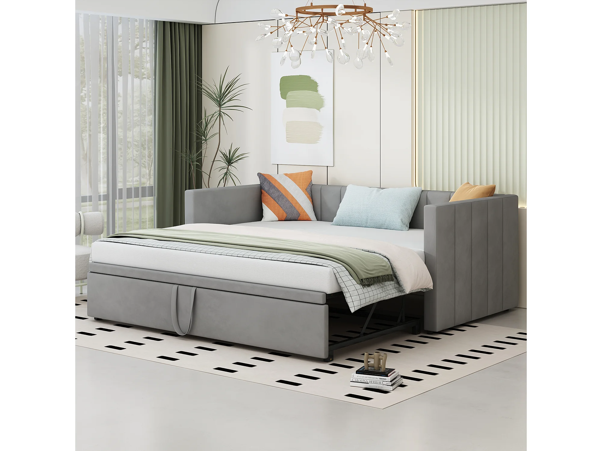 Canapé-lit extensible 90/180x200 cm avec sommier, lit multifonction en velours gris, design sobre et fonctionnel