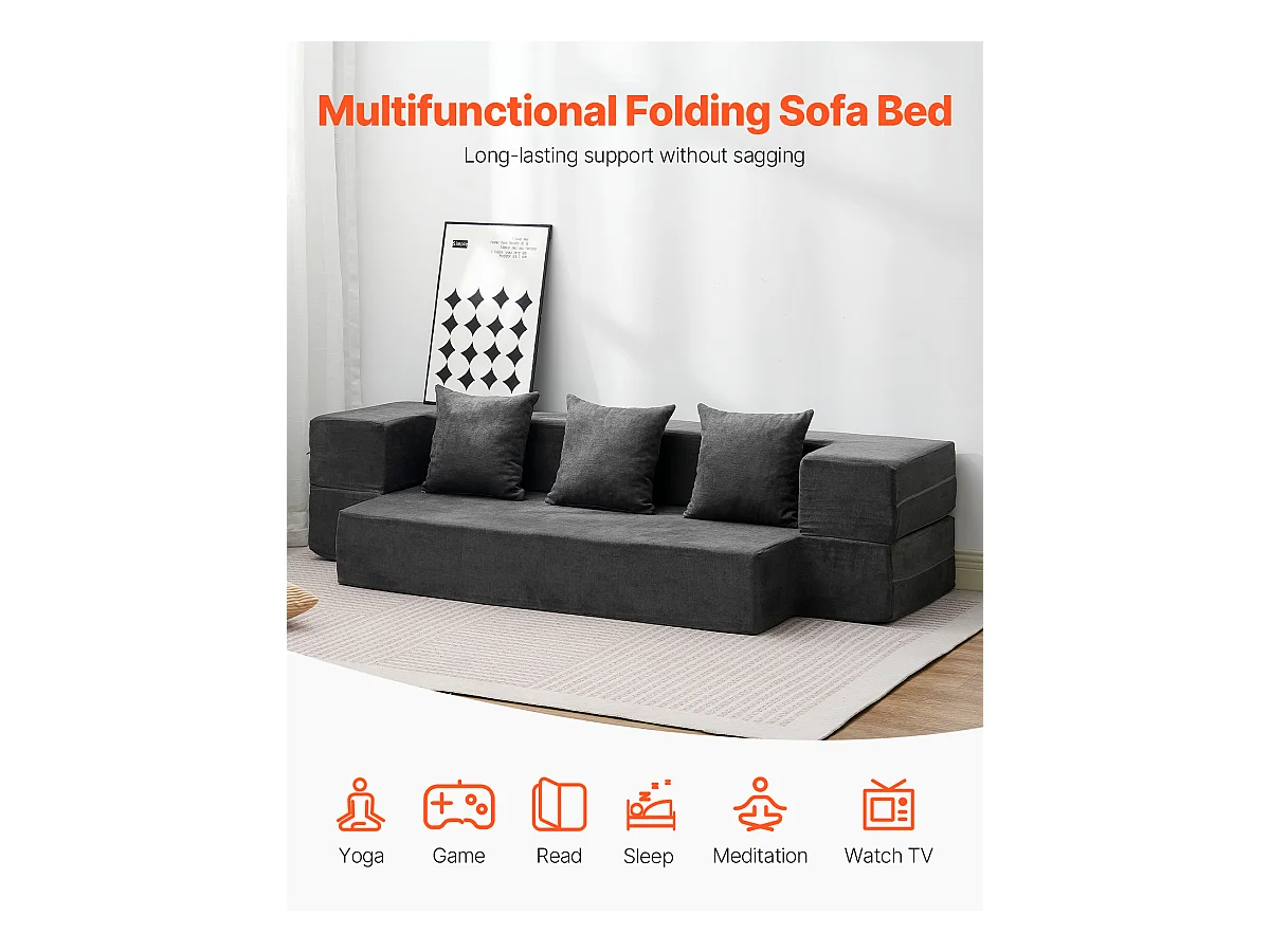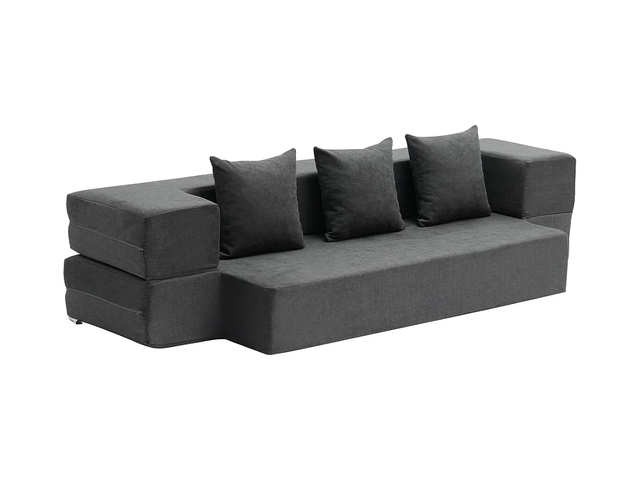 Canapé-lit Moderne, SucceBuy Canapé-lit Pliant 3 en 1 avec 3 Oreillers pour Lit Simple Gris Foncé