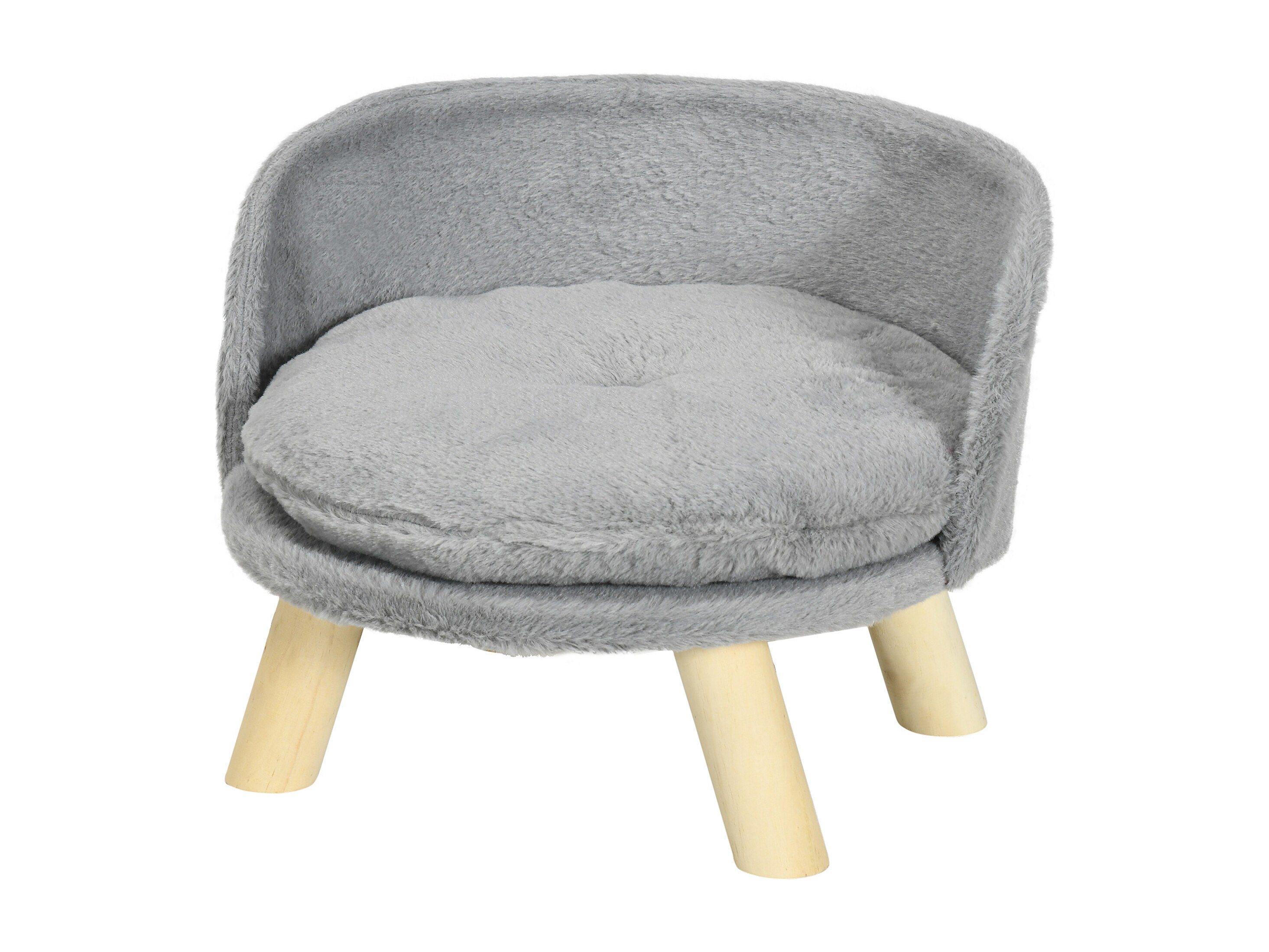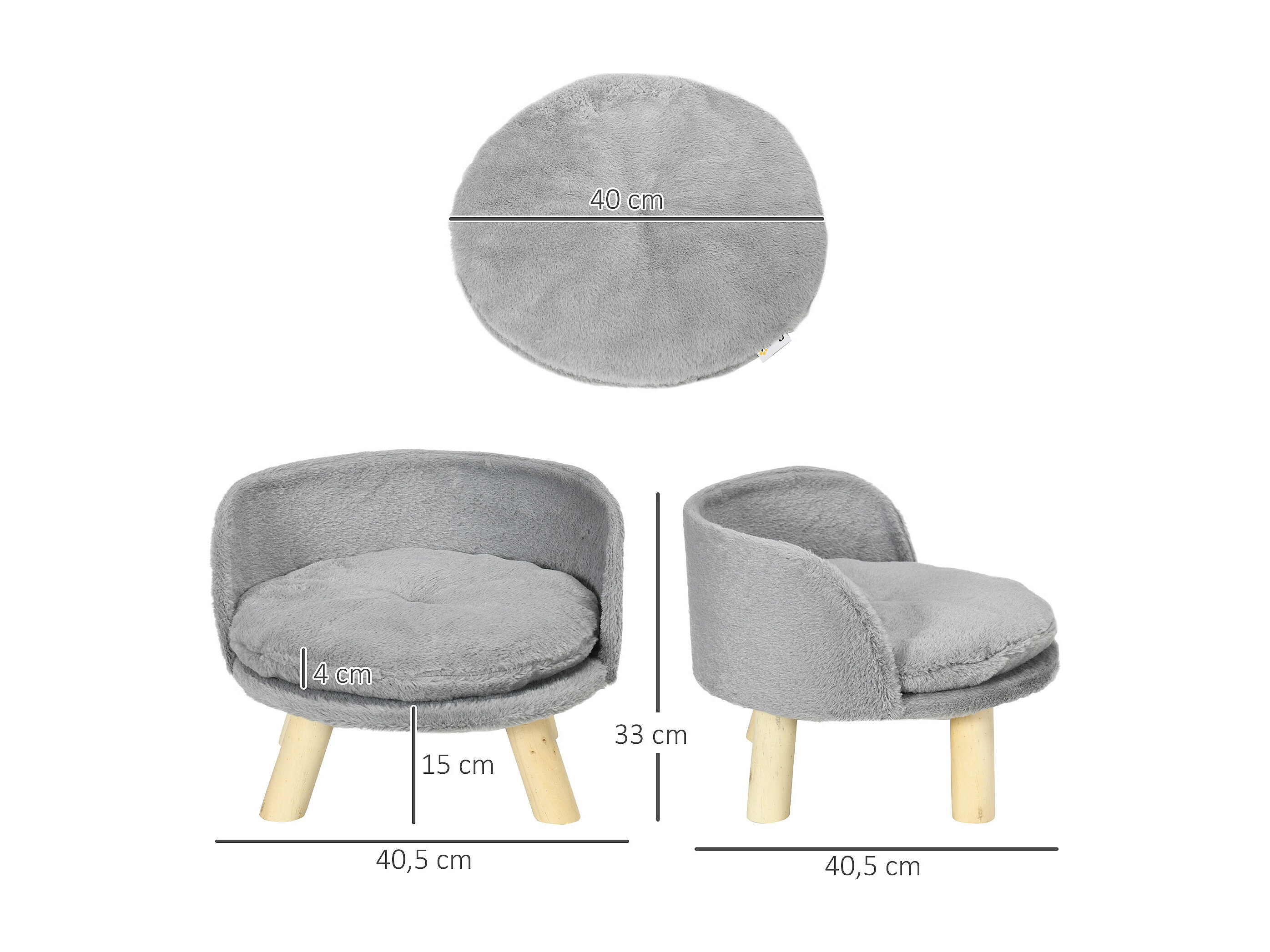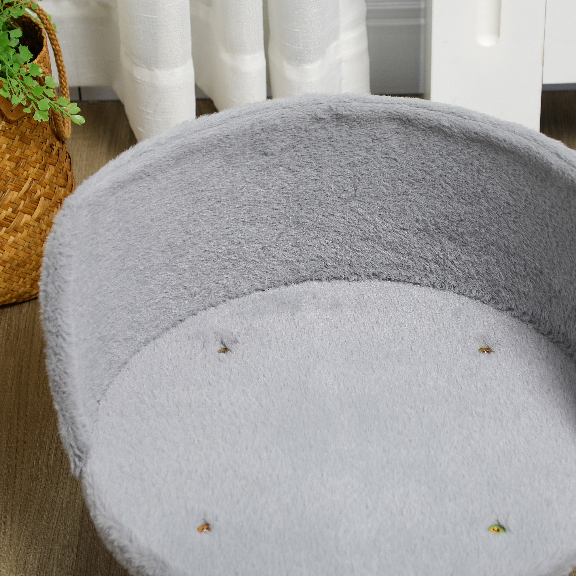 Canapé lit panier pour chien design scandinave coussin moelleux amovible pieds en bois Ø 40,5 x 33H cm gris