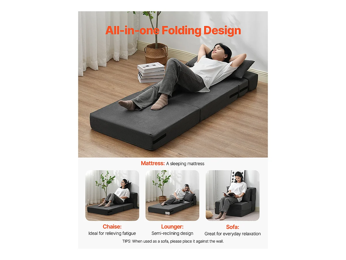 Canapé-Lit Pliant SucceBuy, 3 en 1 Pliable avec 2 Oreillers, Gris Foncé, Simple