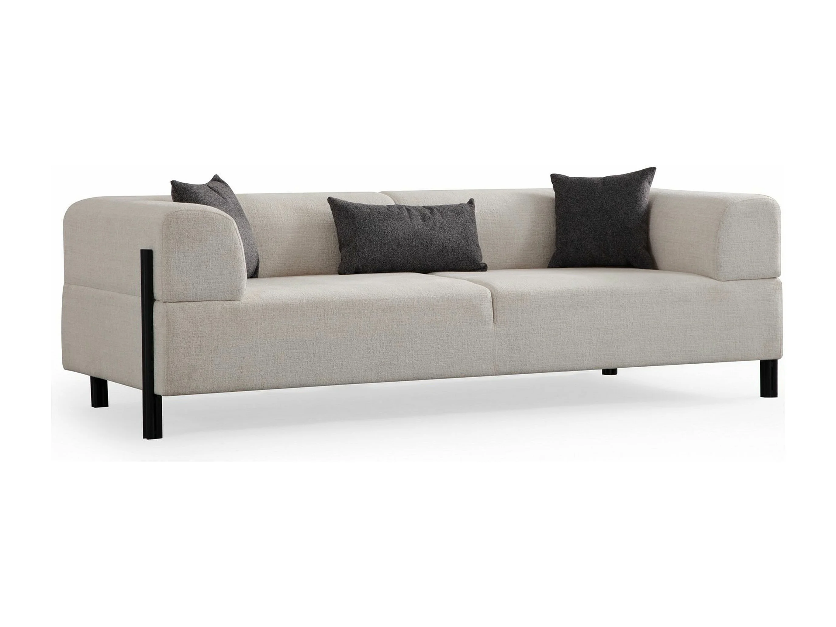 Canapé moderne 3 places Capertio Tissu Blanc et Métal Noir