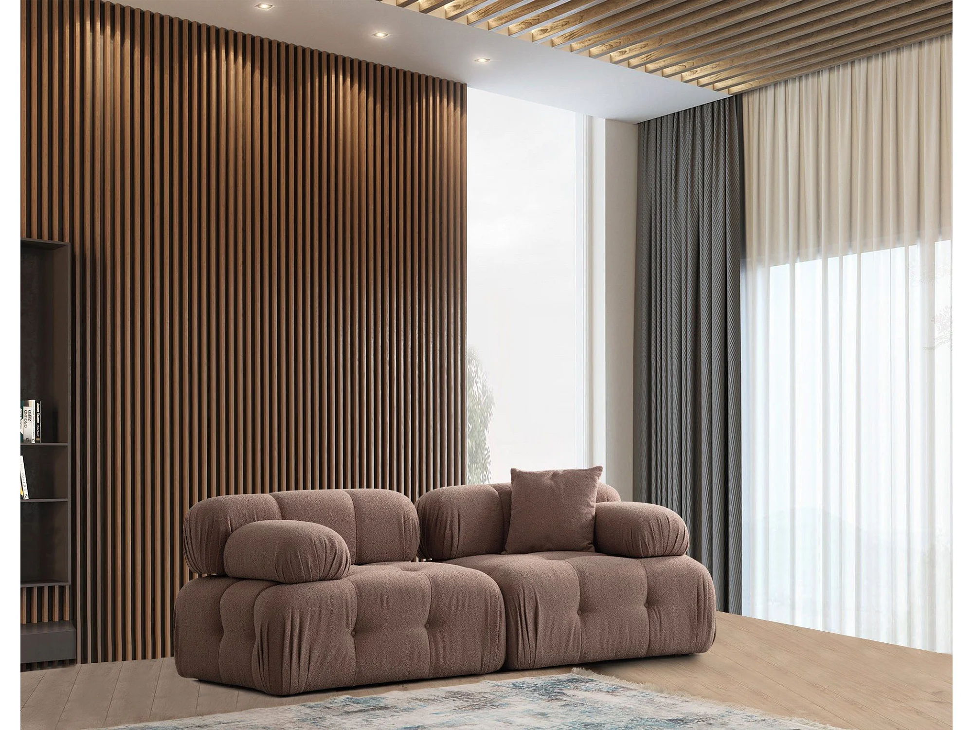 Canapé modulable 2 places Nounou Tissu bouclette Cappuccino