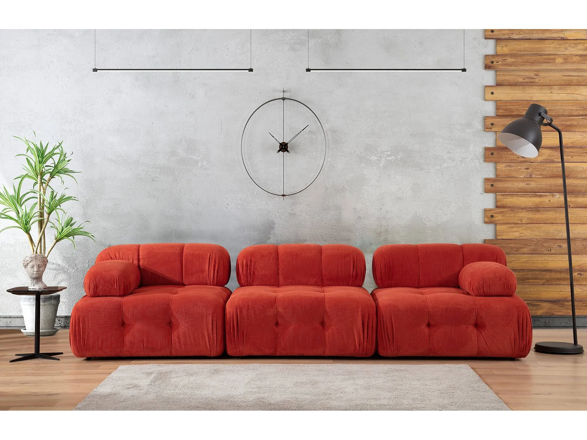 Canapé modulable 3 places avec pouf Nounou Velours côtelé Rouge