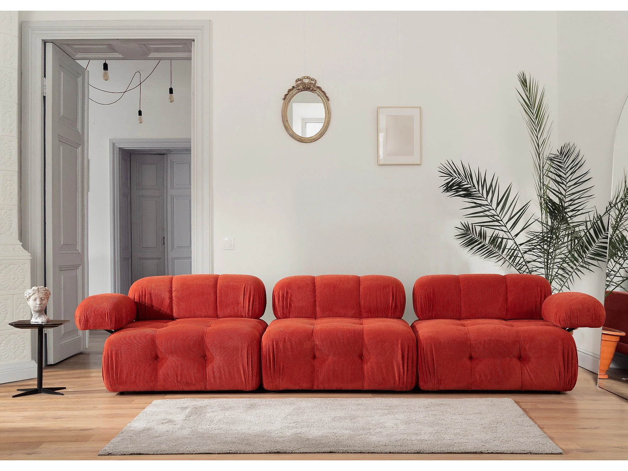 Canapé modulable 3 places Nounou Velours côtelé Rouge