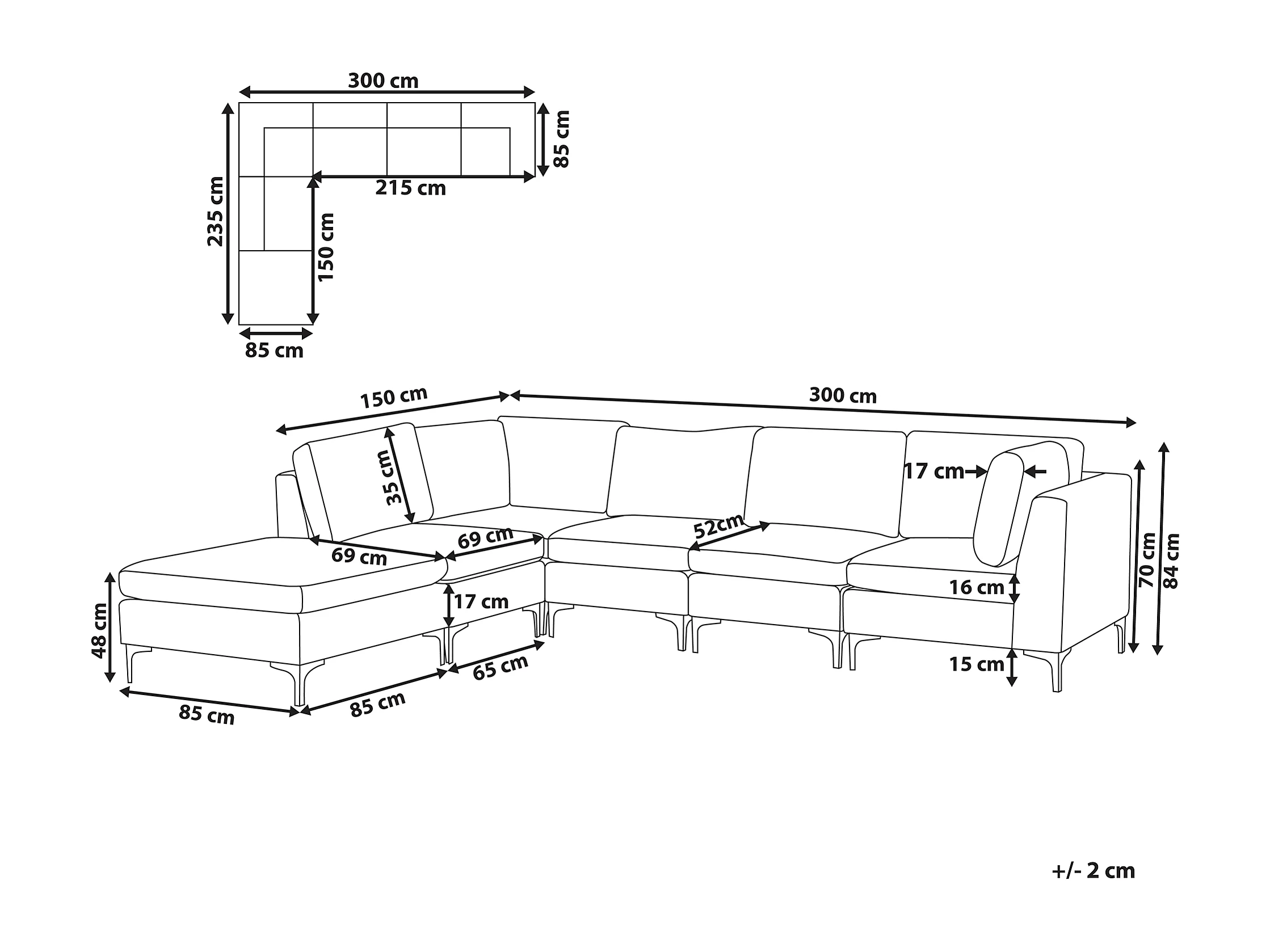 Canapé d'angle modulable 5 places EVJA Velours Bleu marine avec ottoman Côté droit