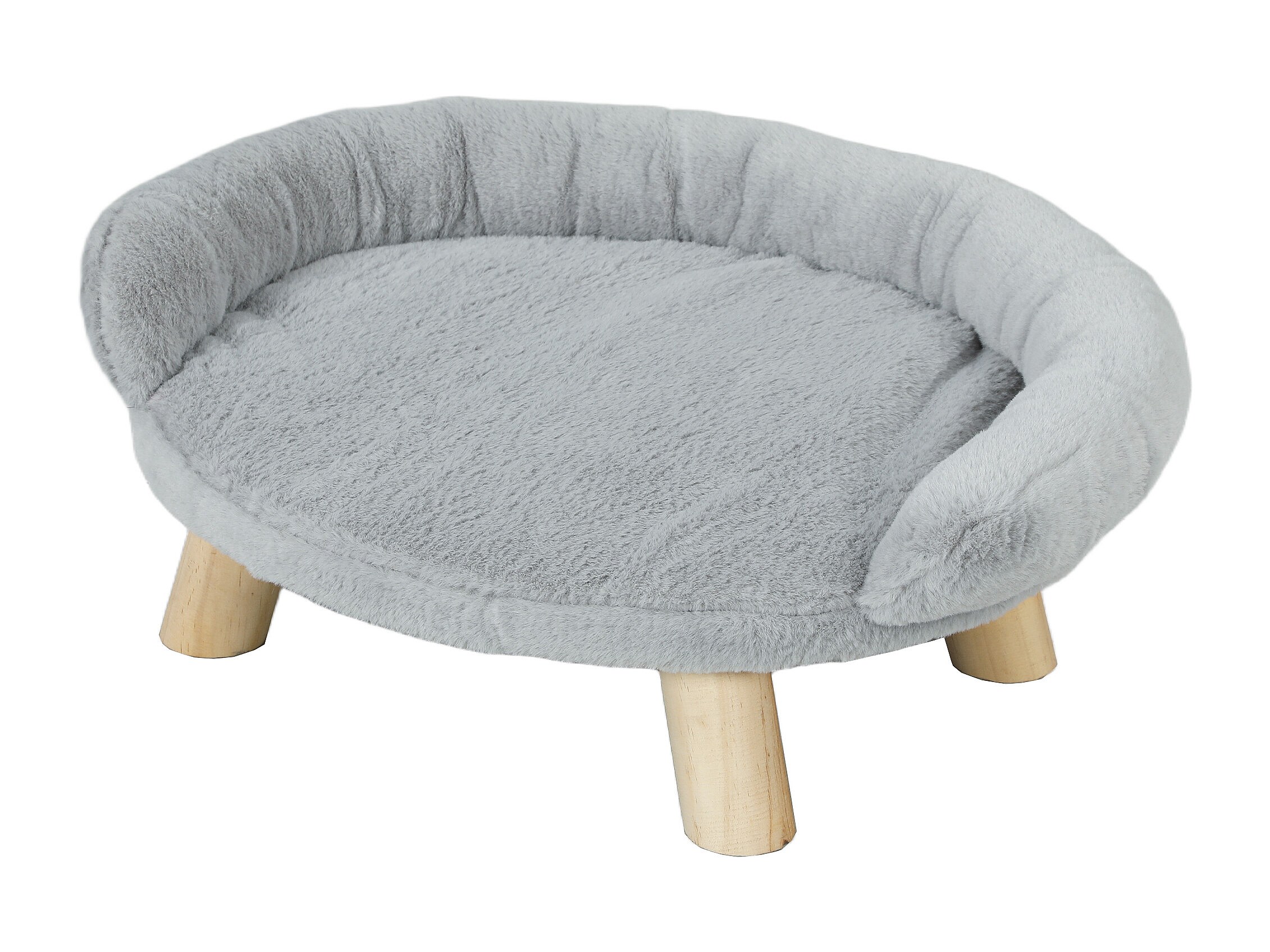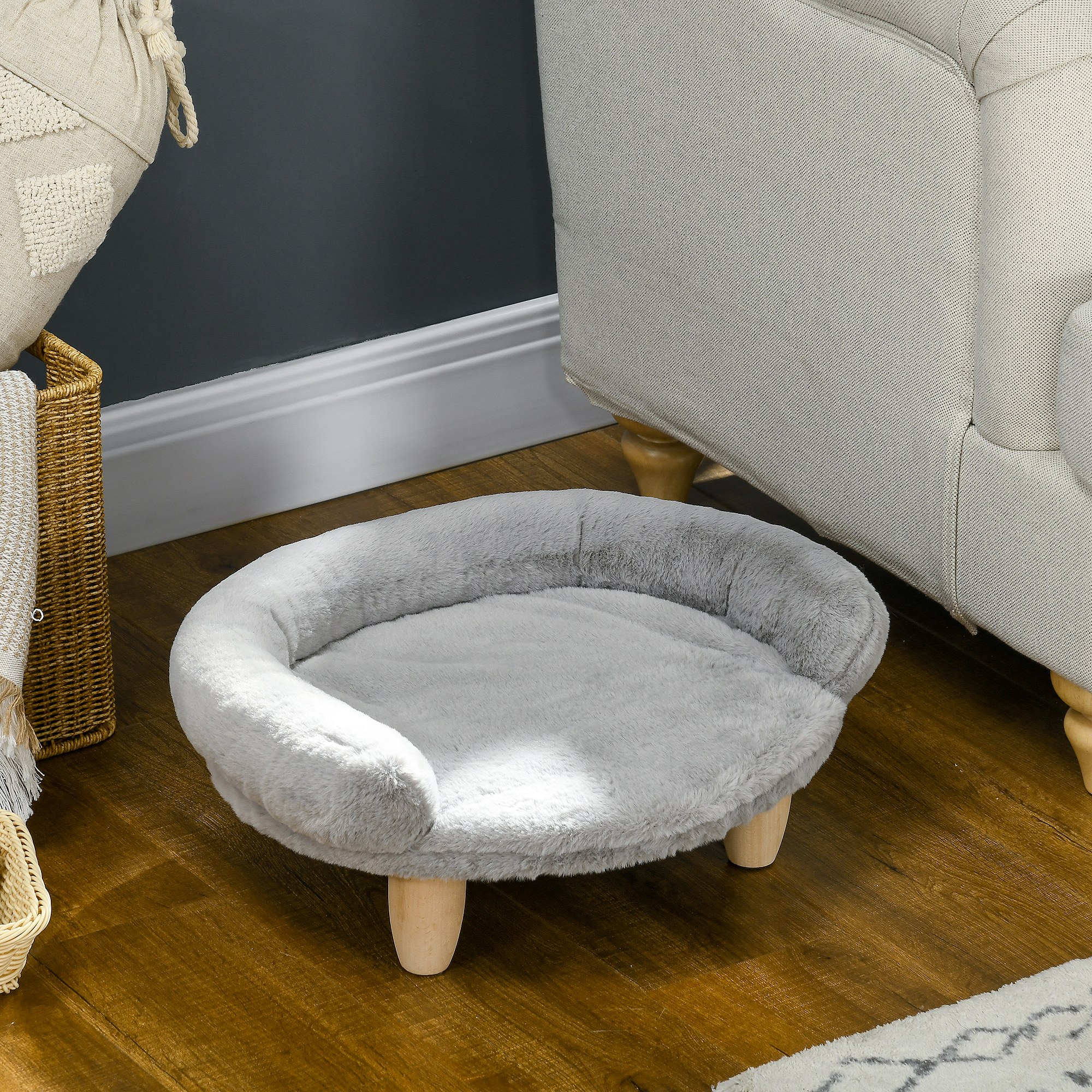 Canapé panier chien ou chat design scandinave housse amovible pieds en bois peluche douce gris