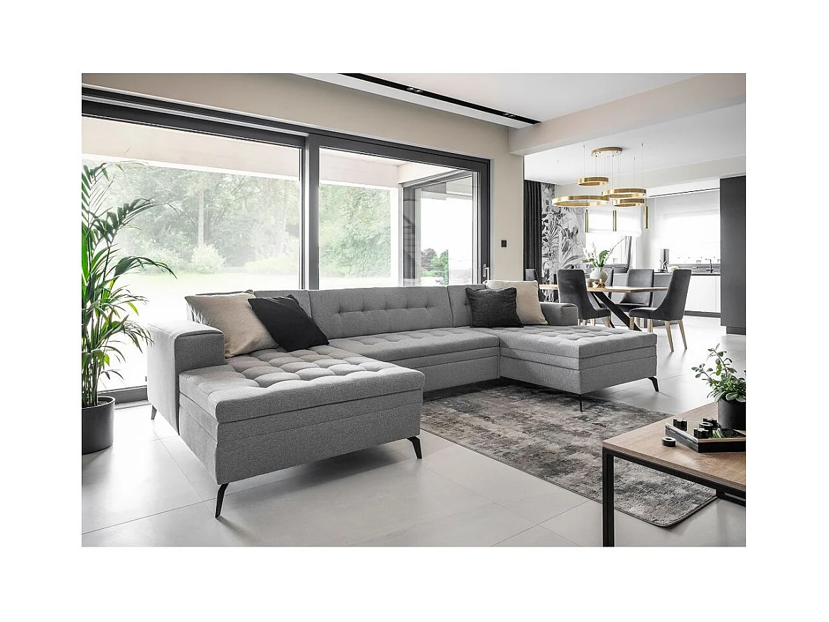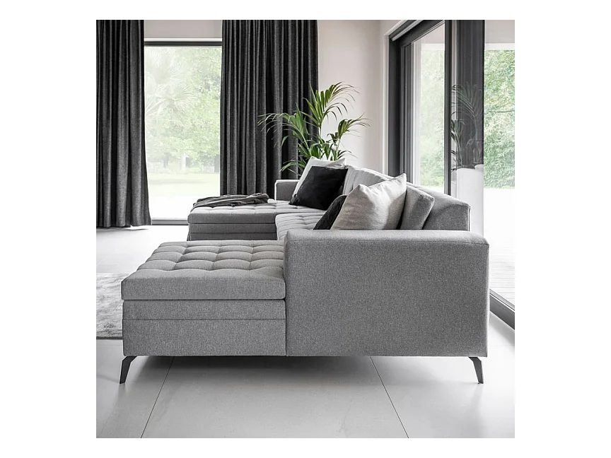 Canapé convertible capitonné angle droit tissu gris et pieds métal noir Lazor 295cm