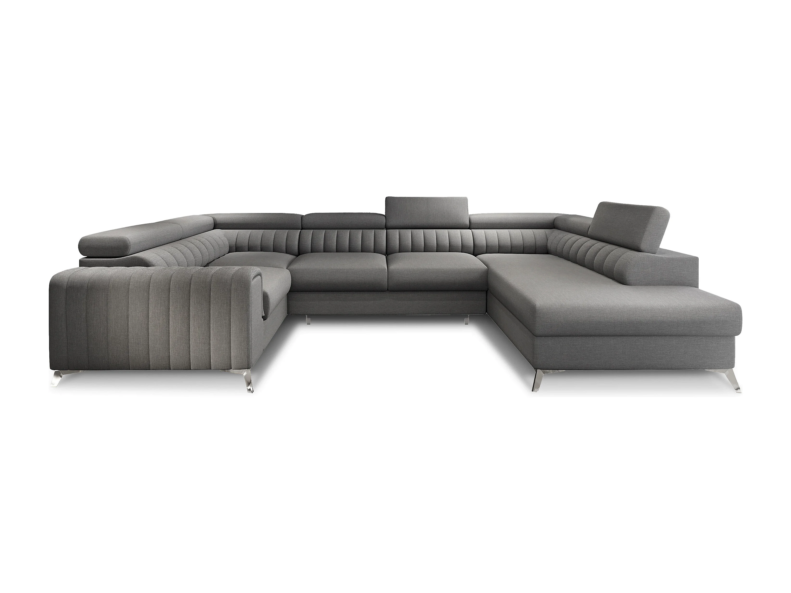 Canapé panoramique convertible LOUVE tissu - Rangement et têtières réglables-Gris foncé-Coffre à droite
