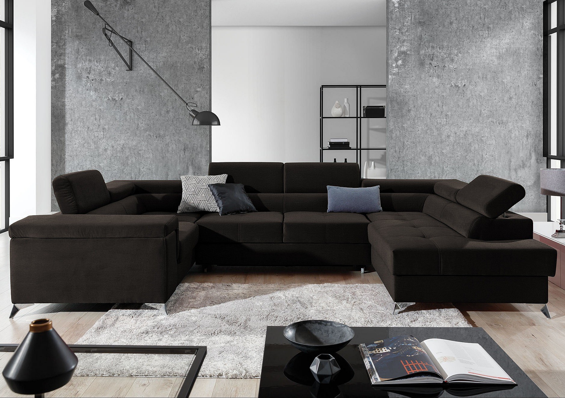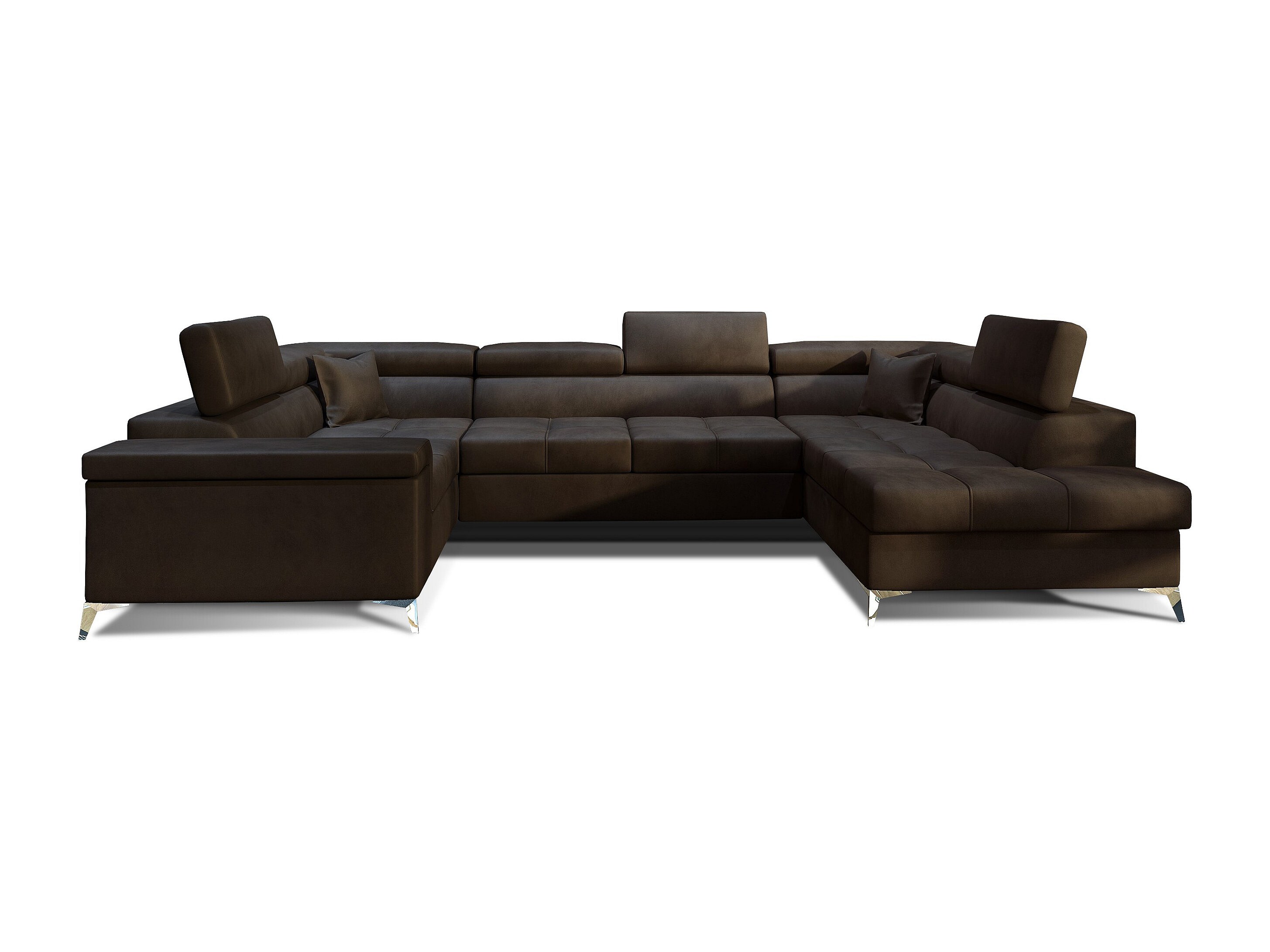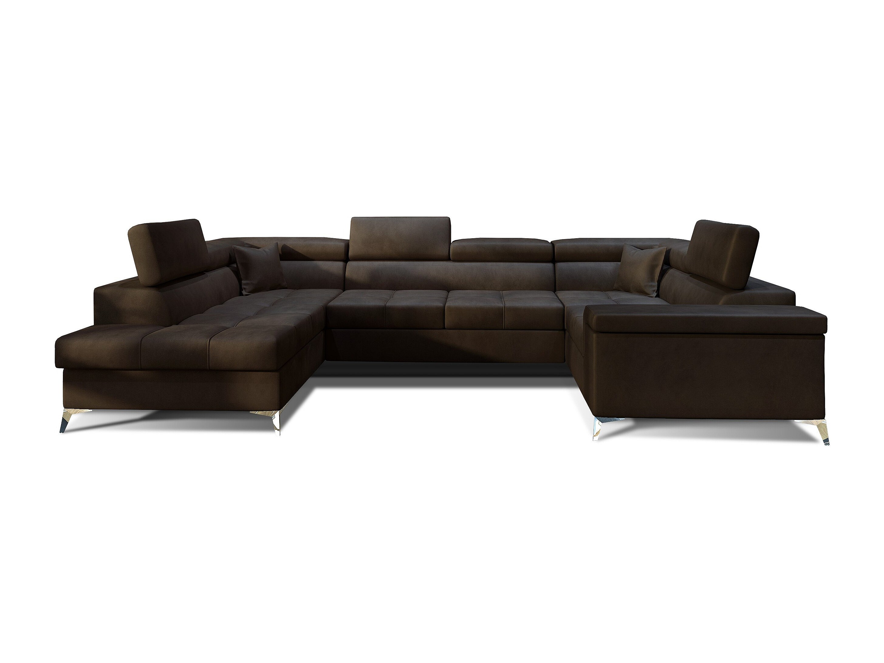 Canapé panoramique convertible velours marron avec coffre de rangement Triano 342cm-Coffre de rangement à gauche
