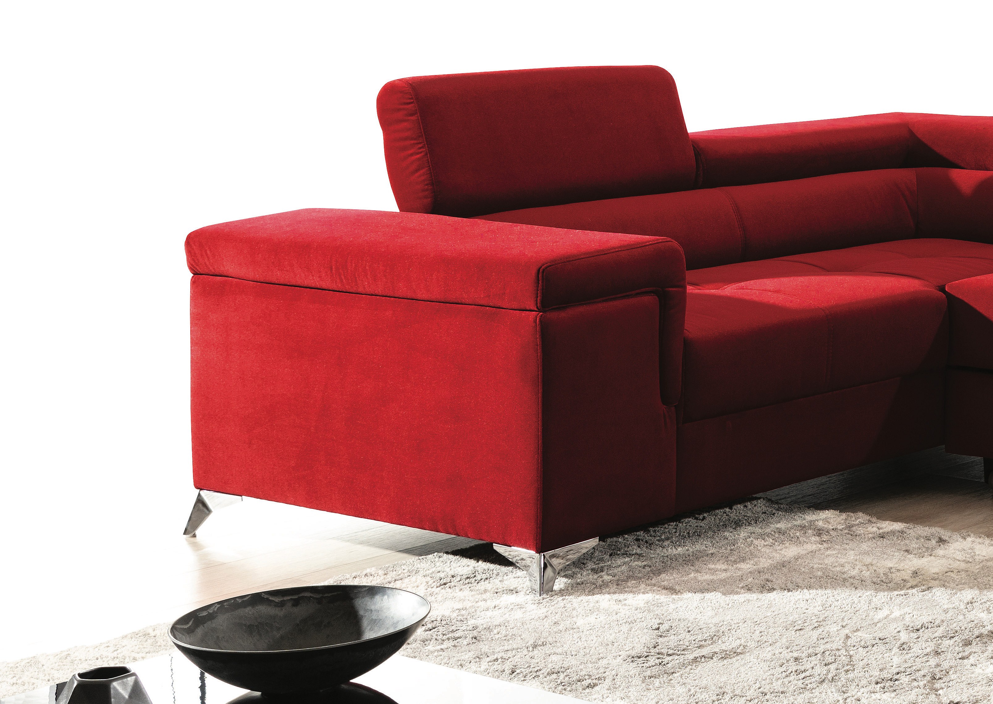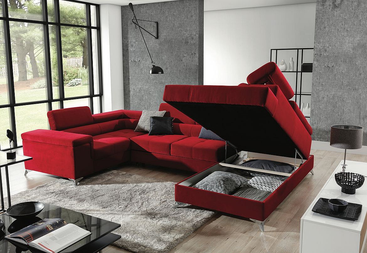 Canapé panoramique convertible velours rose cuivré avec coffre de rangement Triano 342cm-Coffre de rangement à gauche