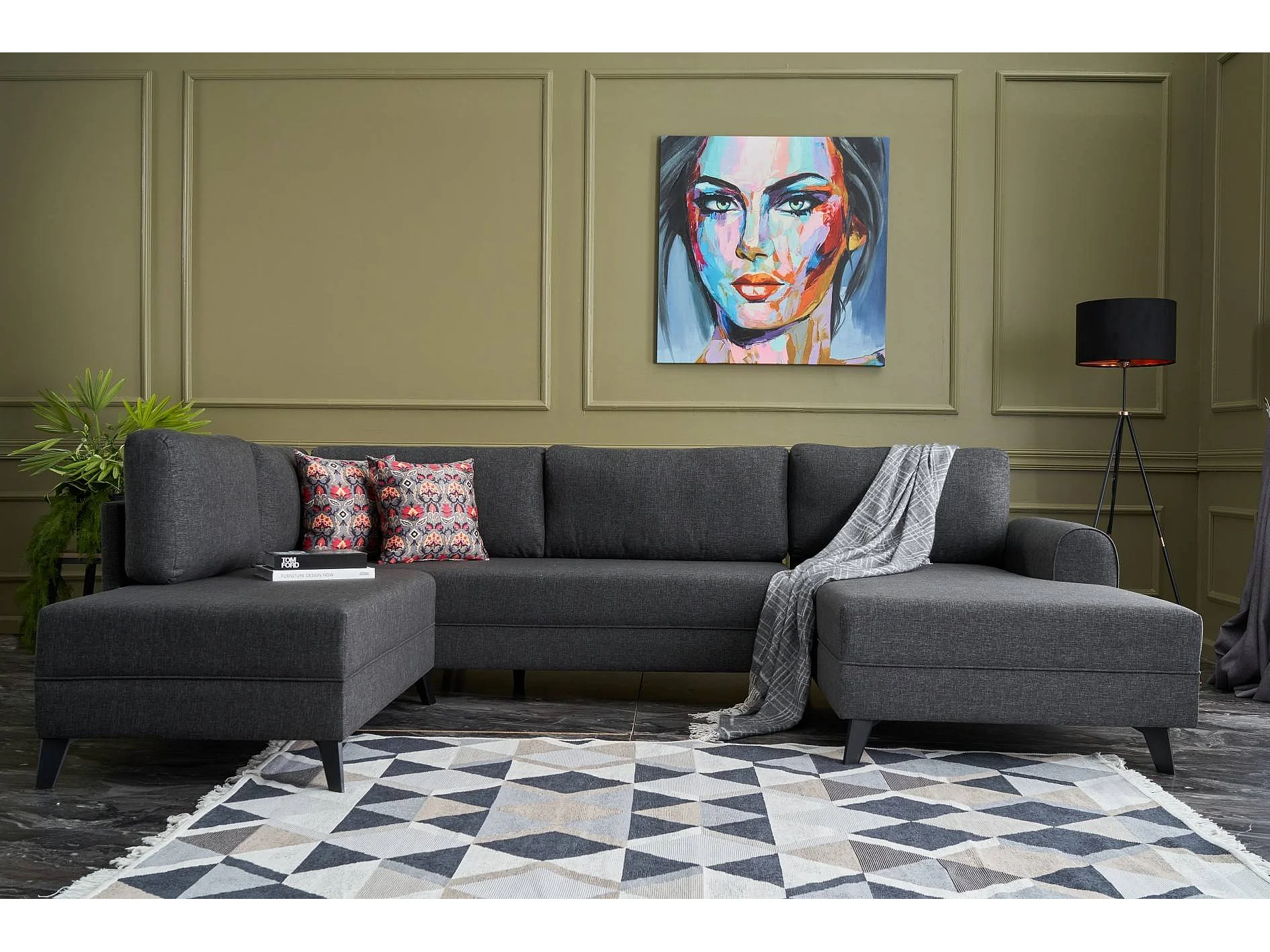 Canapé panoramique d'angle à gauche modulable Lalardie Tissu Anthracite