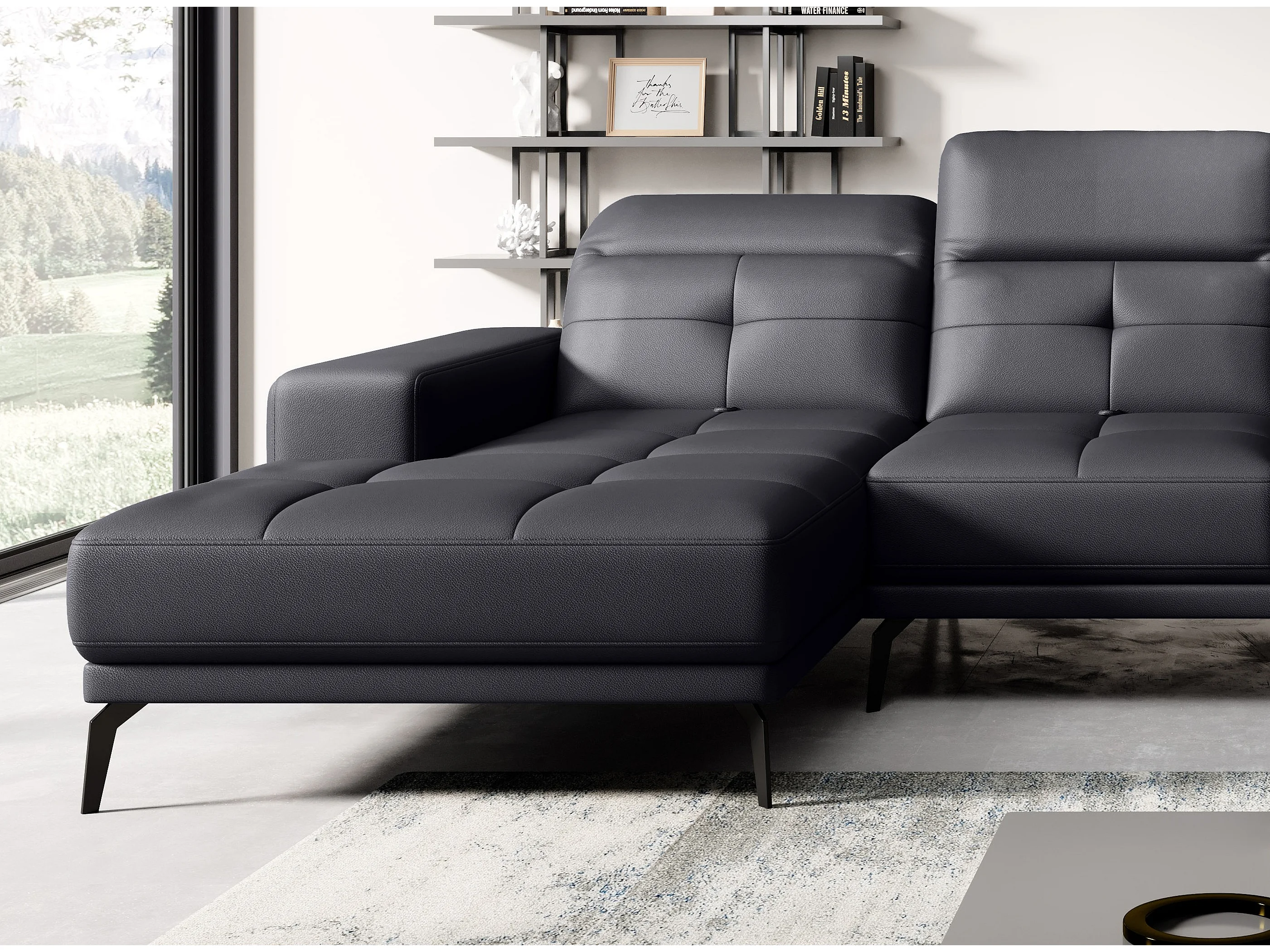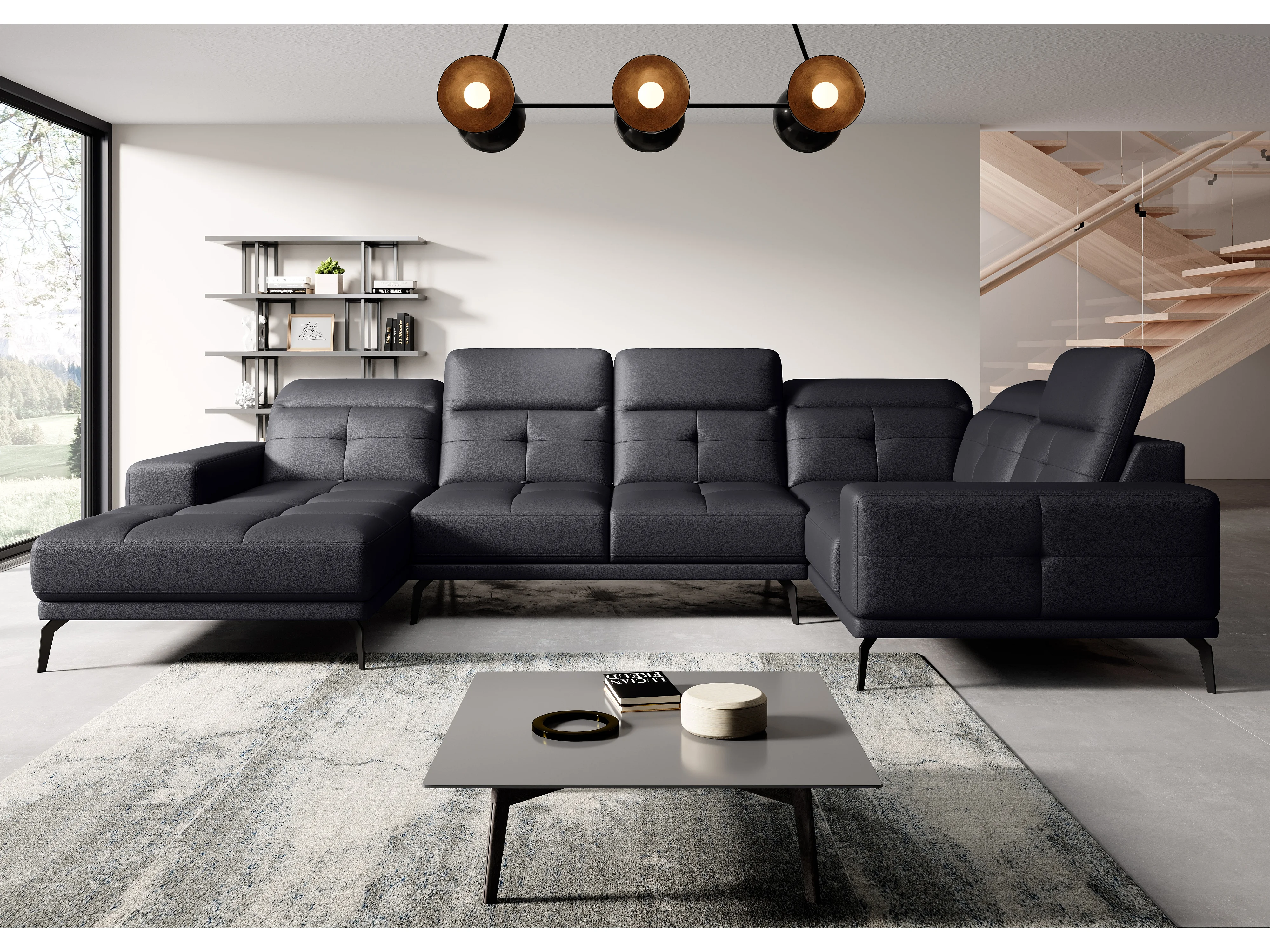Canapé panoramique design SKAW simili cuir - Têtières réglables-Noir-Méridienne A droite