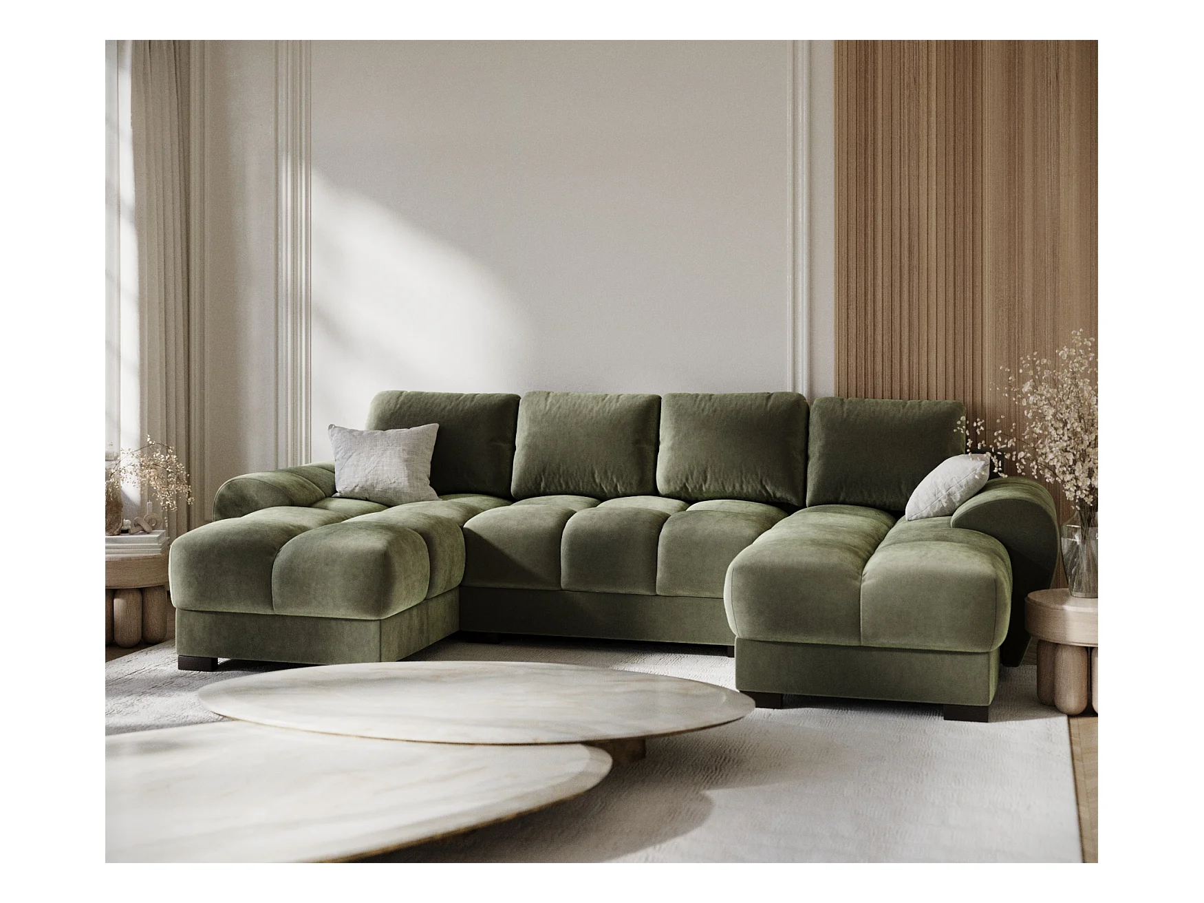 Canapé panoramique en tissu velours Peebles - 6 places - vert olive