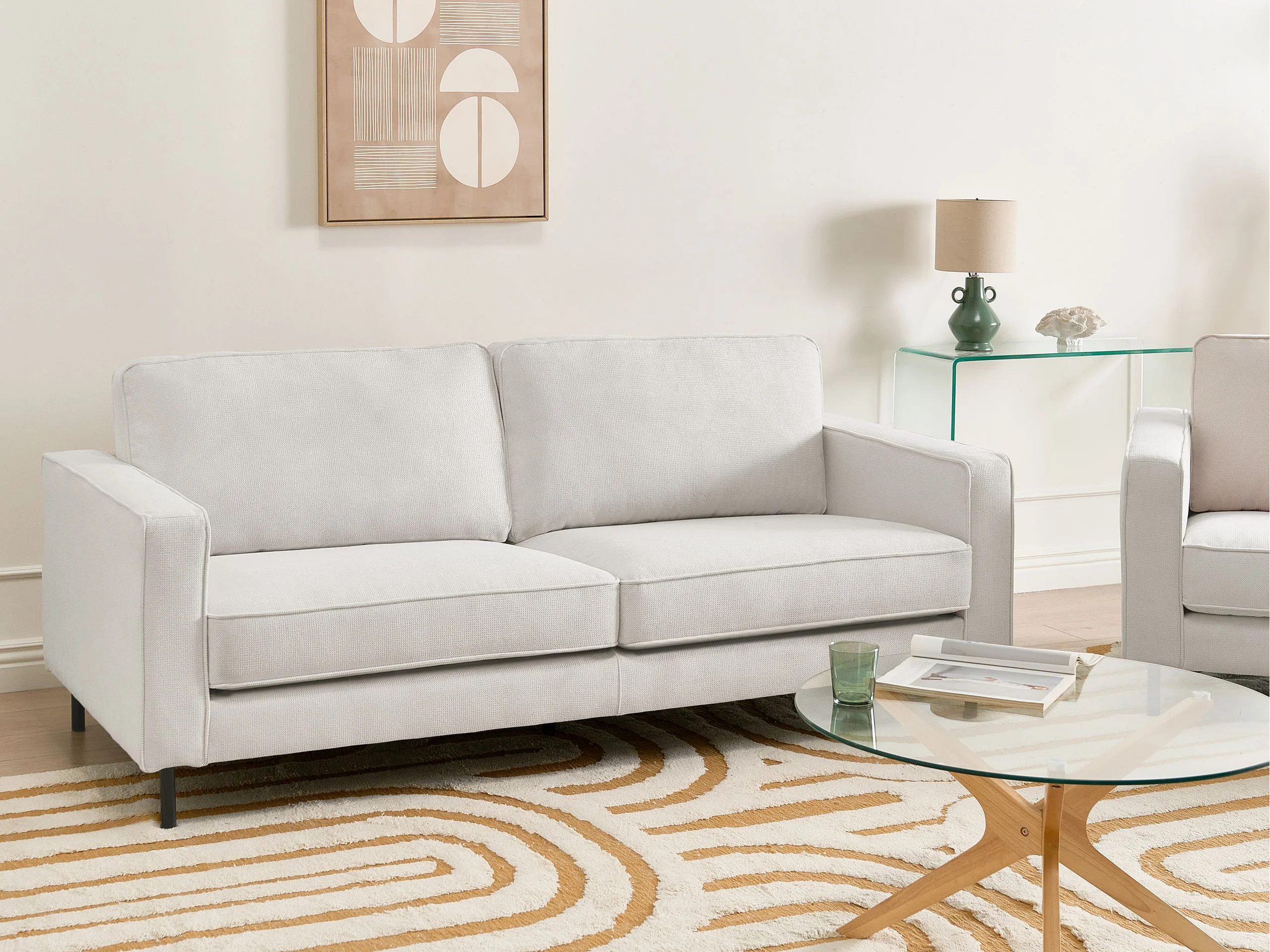 Canapé 3 places SAVALEN Tissu Blanc cassé