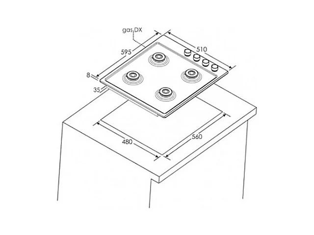 Plaque gaz CANDY 5500W 58.5cm, CHW640LXB