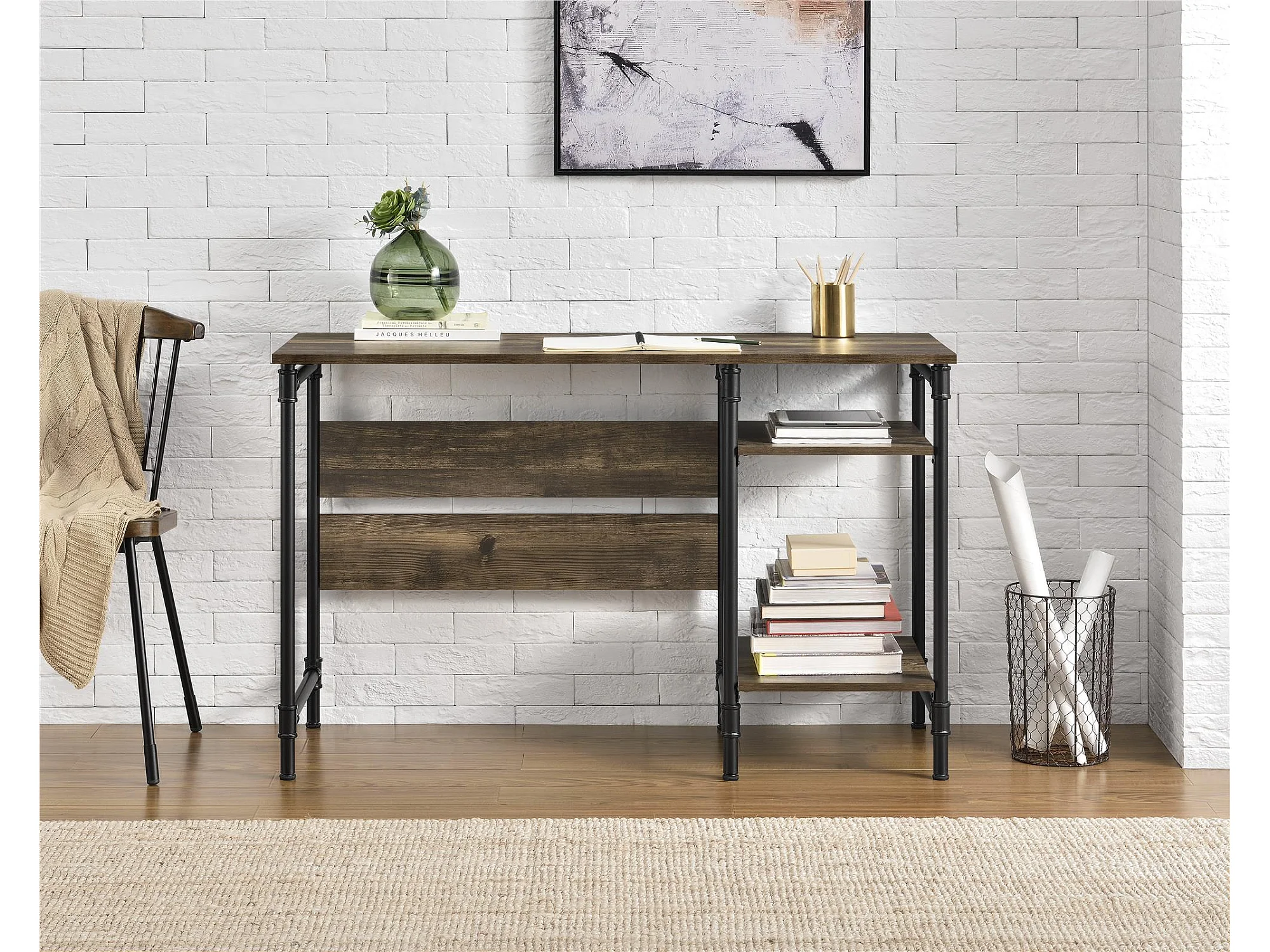Carter | Bureau à caisson avec 2 étagères en panneaux de particules