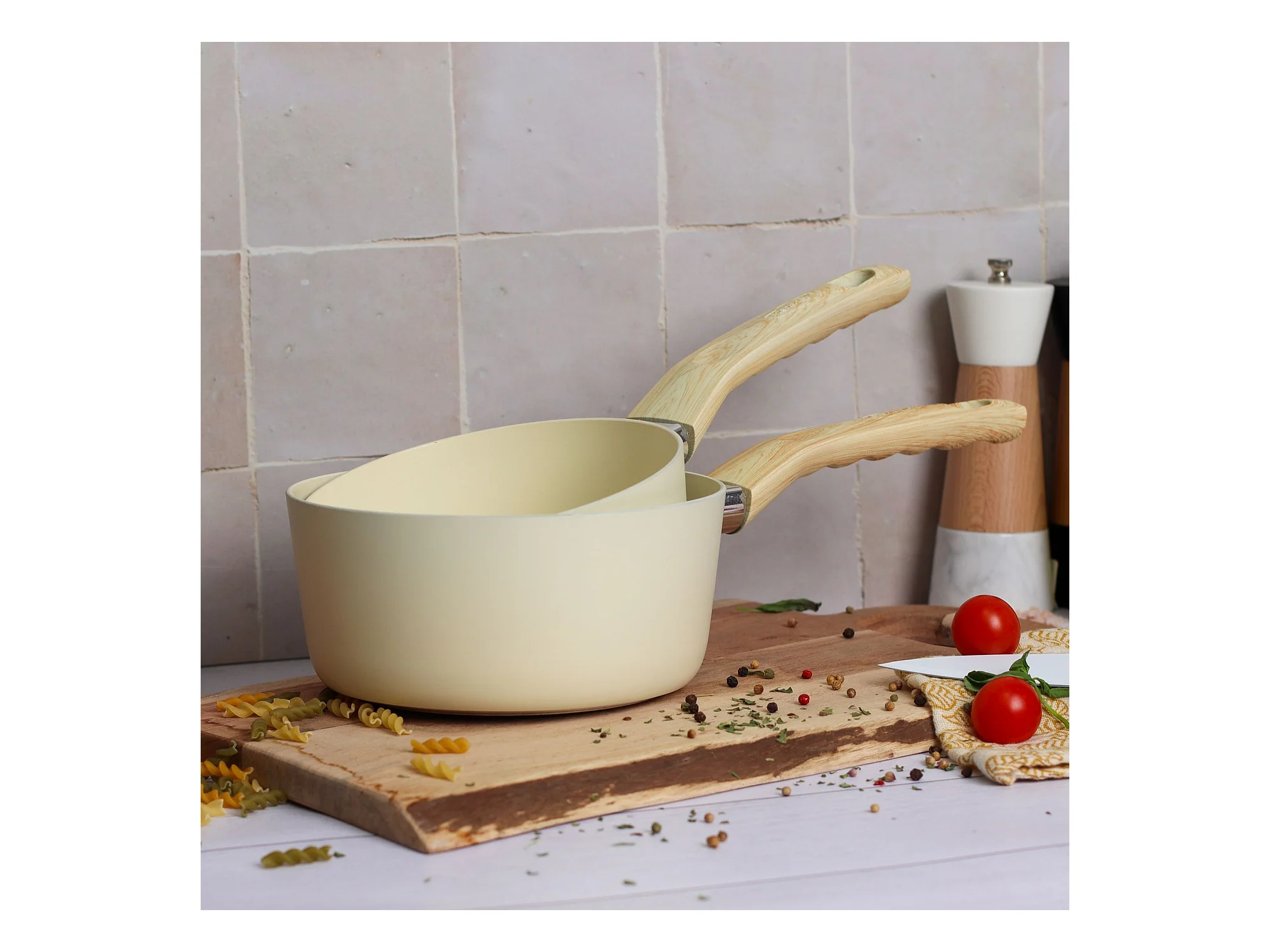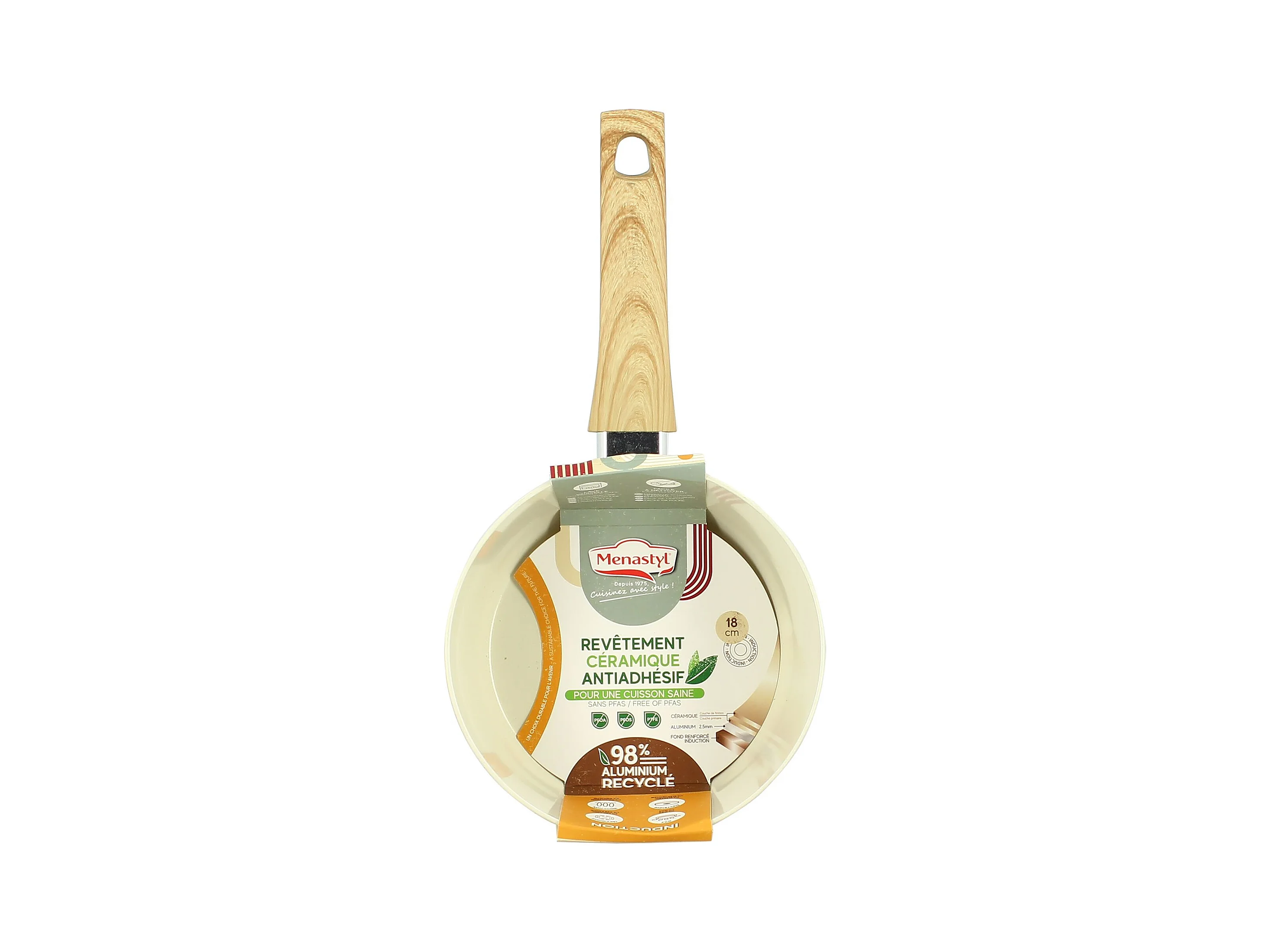 Menastyl - Casserole 18cm Colorama Creme - En Aluminium - Revetement Antiadhesif En Ceramique
