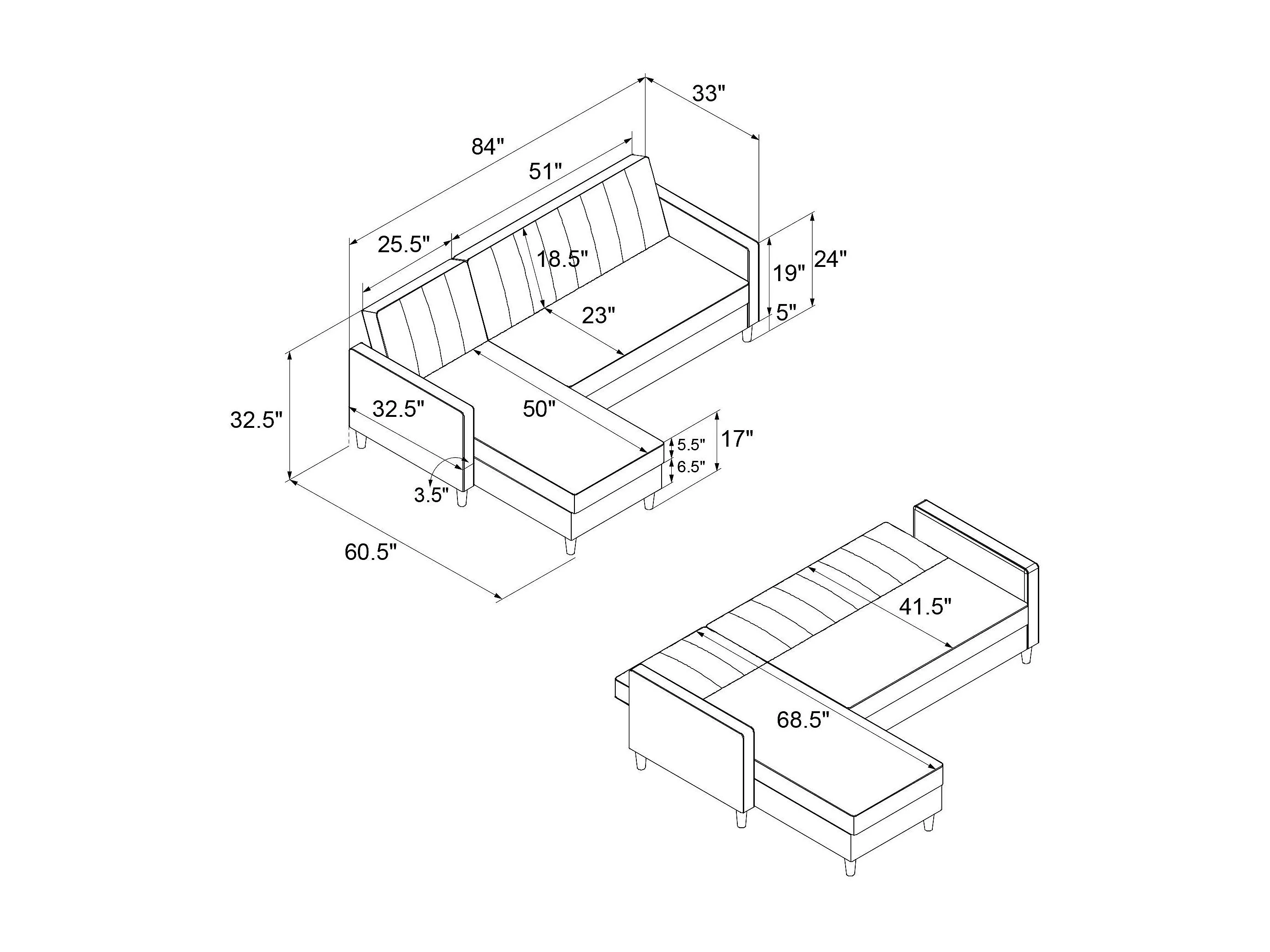 Celine | Canapé lit 4 places avec chaise longue en velours Gris