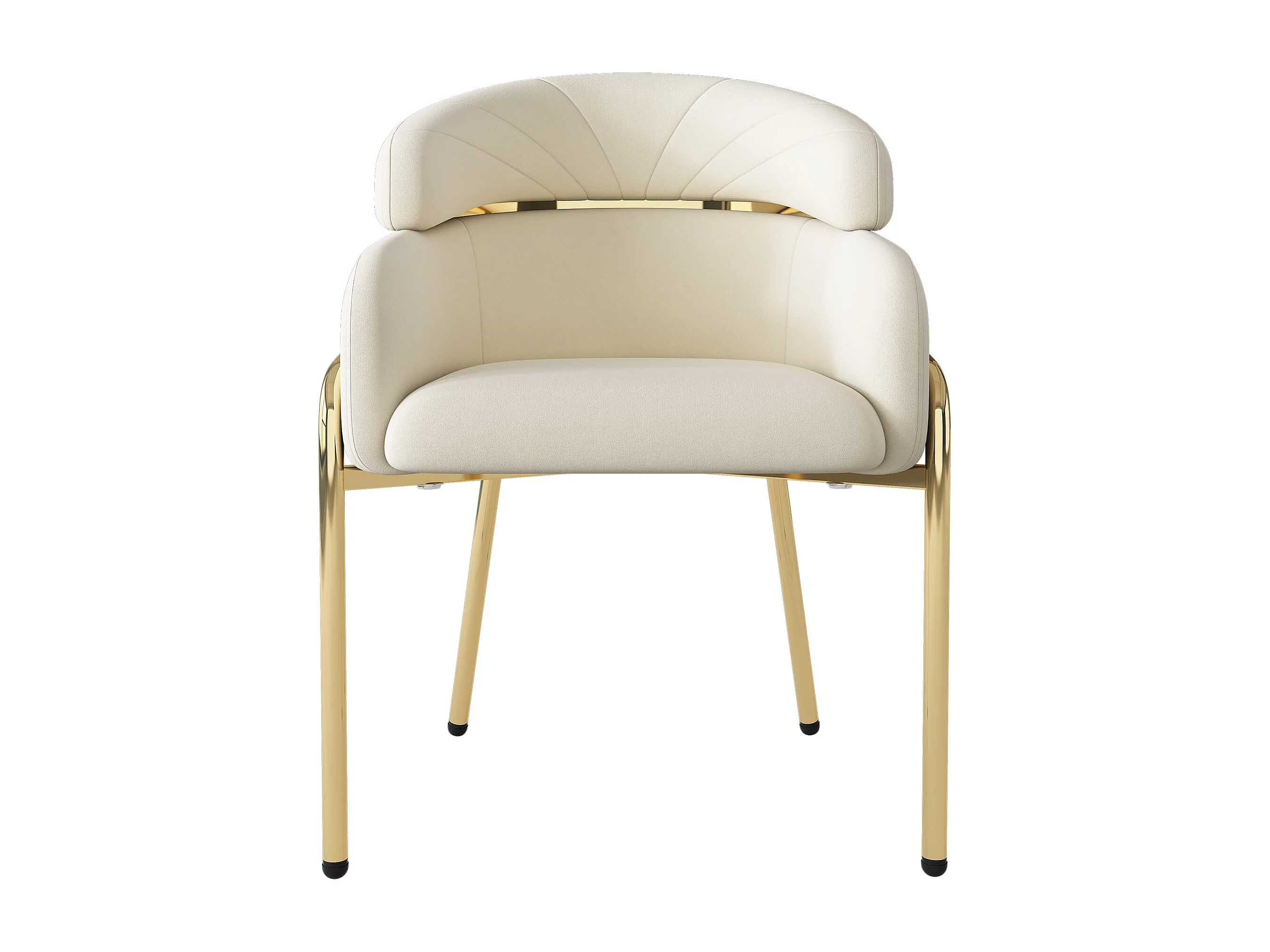 Chaise à manger simple en velours avec accoudoirs et dossier - pieds en métal - beige