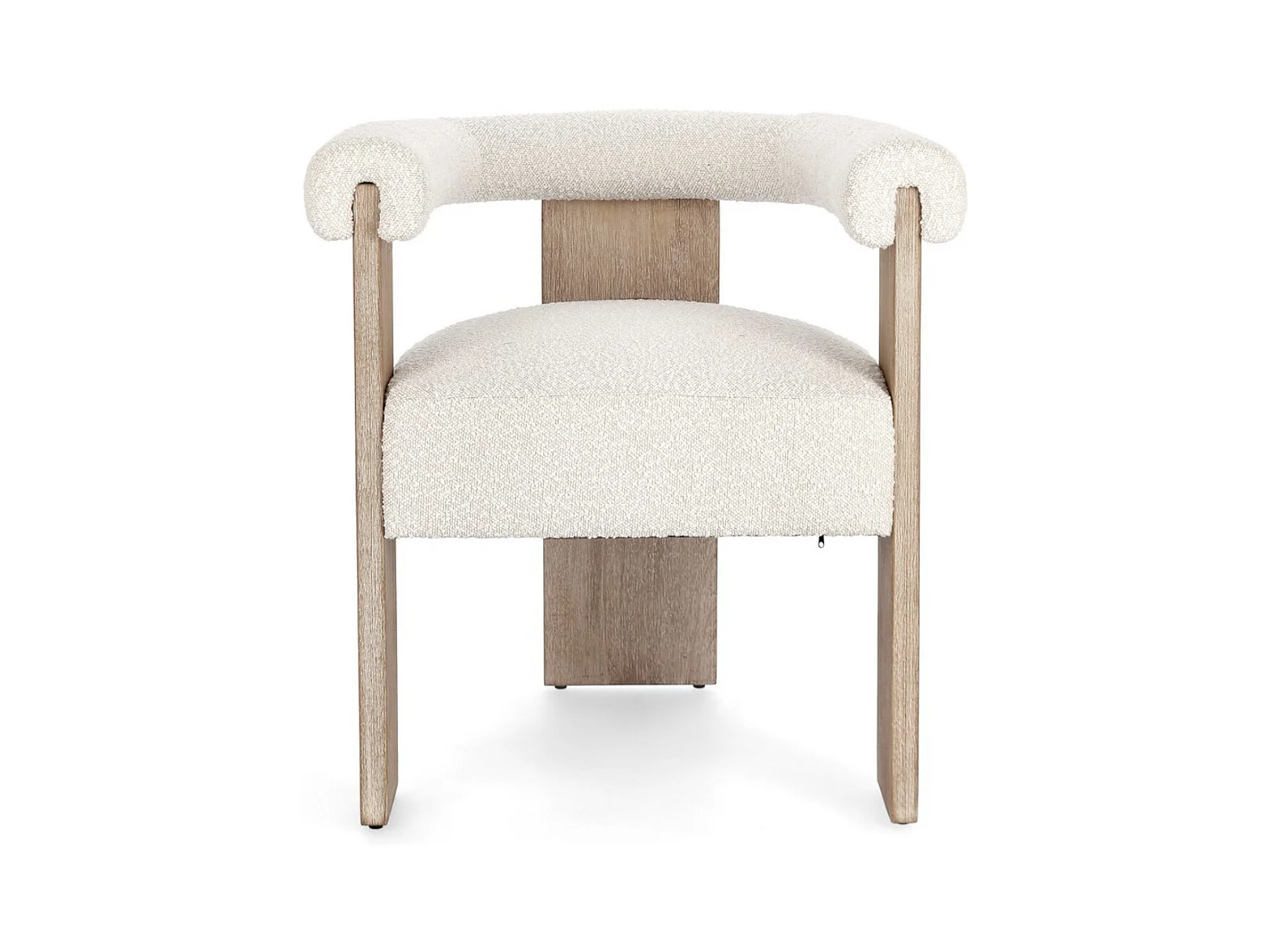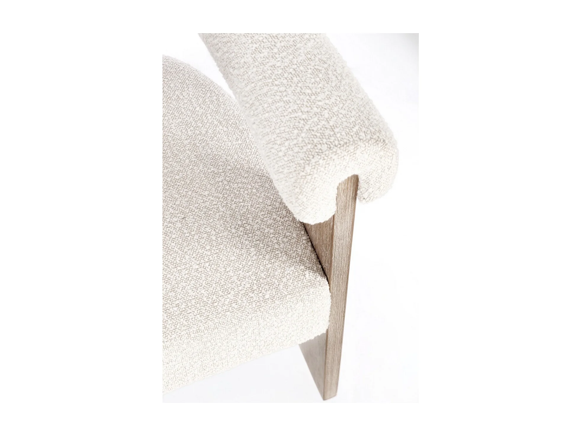 Chaise avec accoudoir en tissu bouclette et structure en bois – Modèle Agathy-Naturel/Beige clair