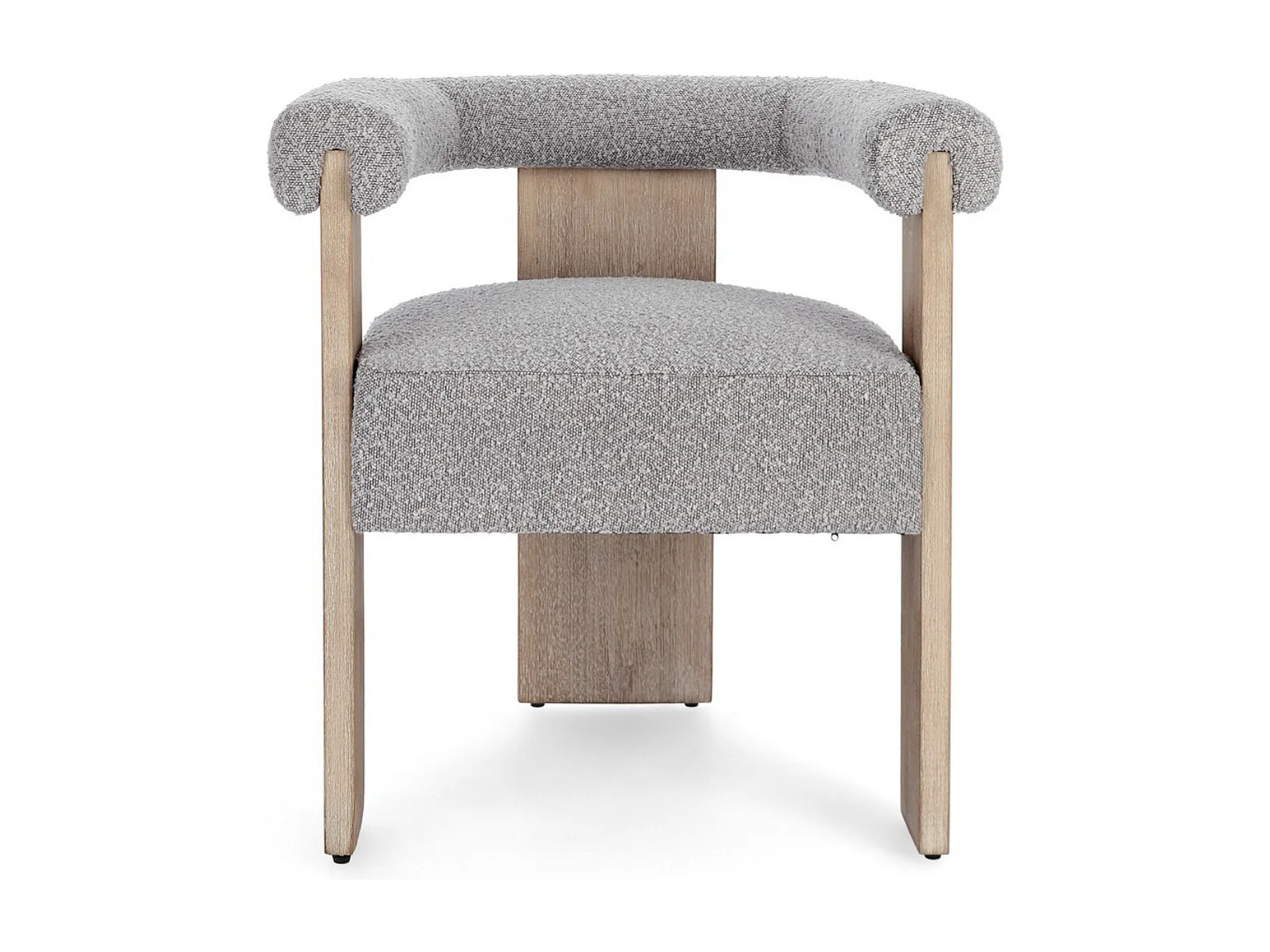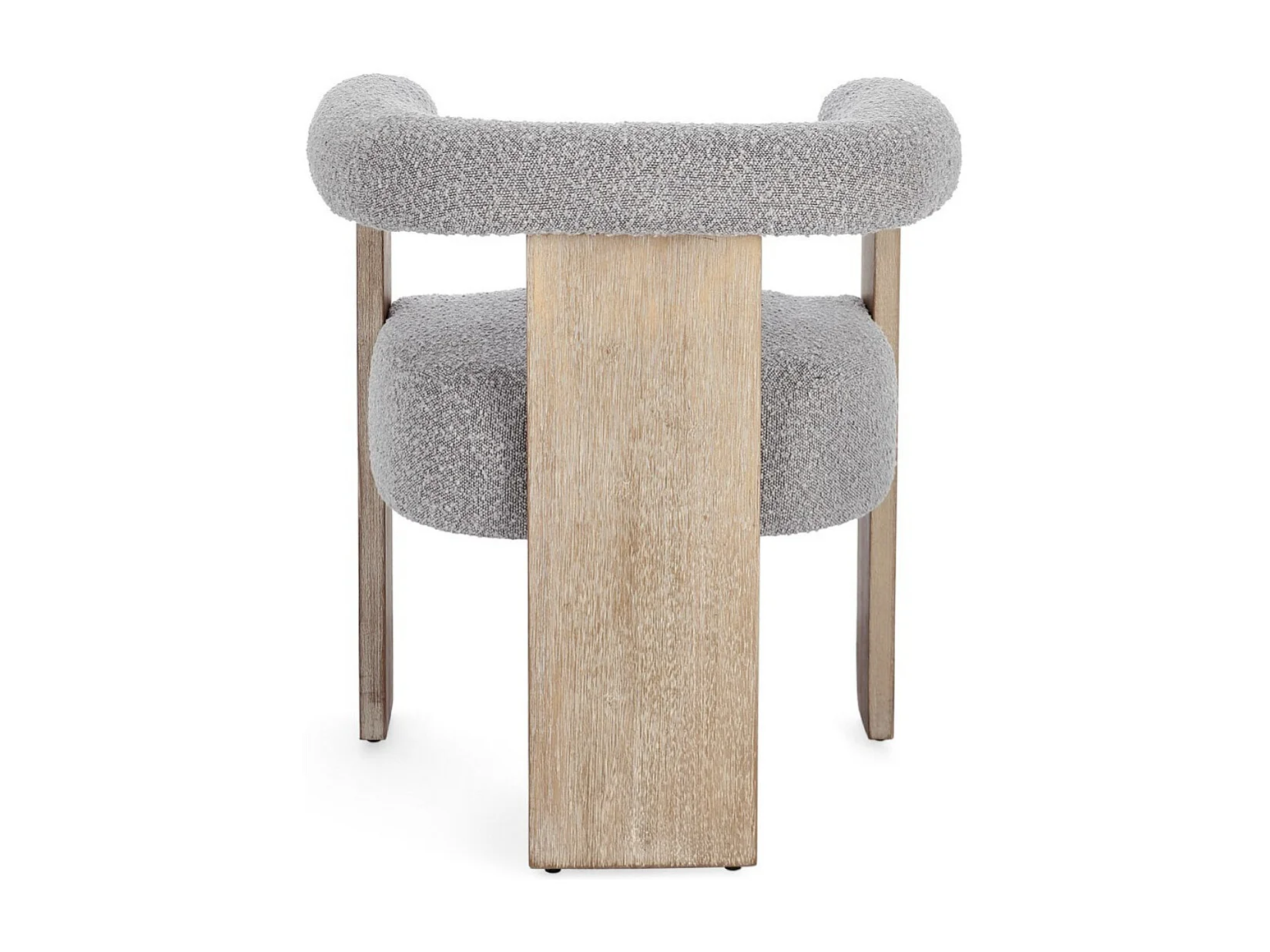 Chaise avec accoudoir en tissu bouclette et structure en bois – Modèle Agathy-Naturel/Gris