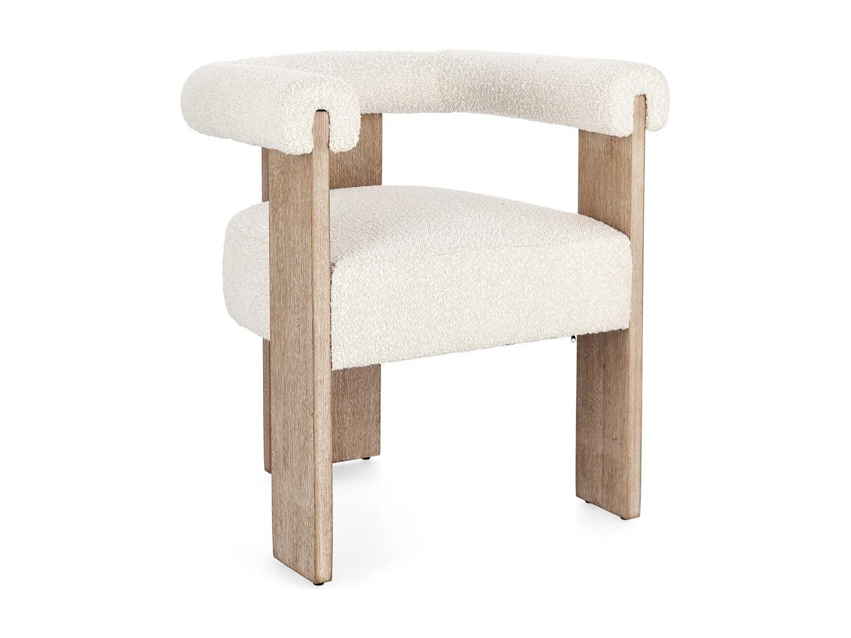 Chaise avec accoudoir en tissu bouclette et structure en bois – Modèle Agathy-Naturel/Beige clair
