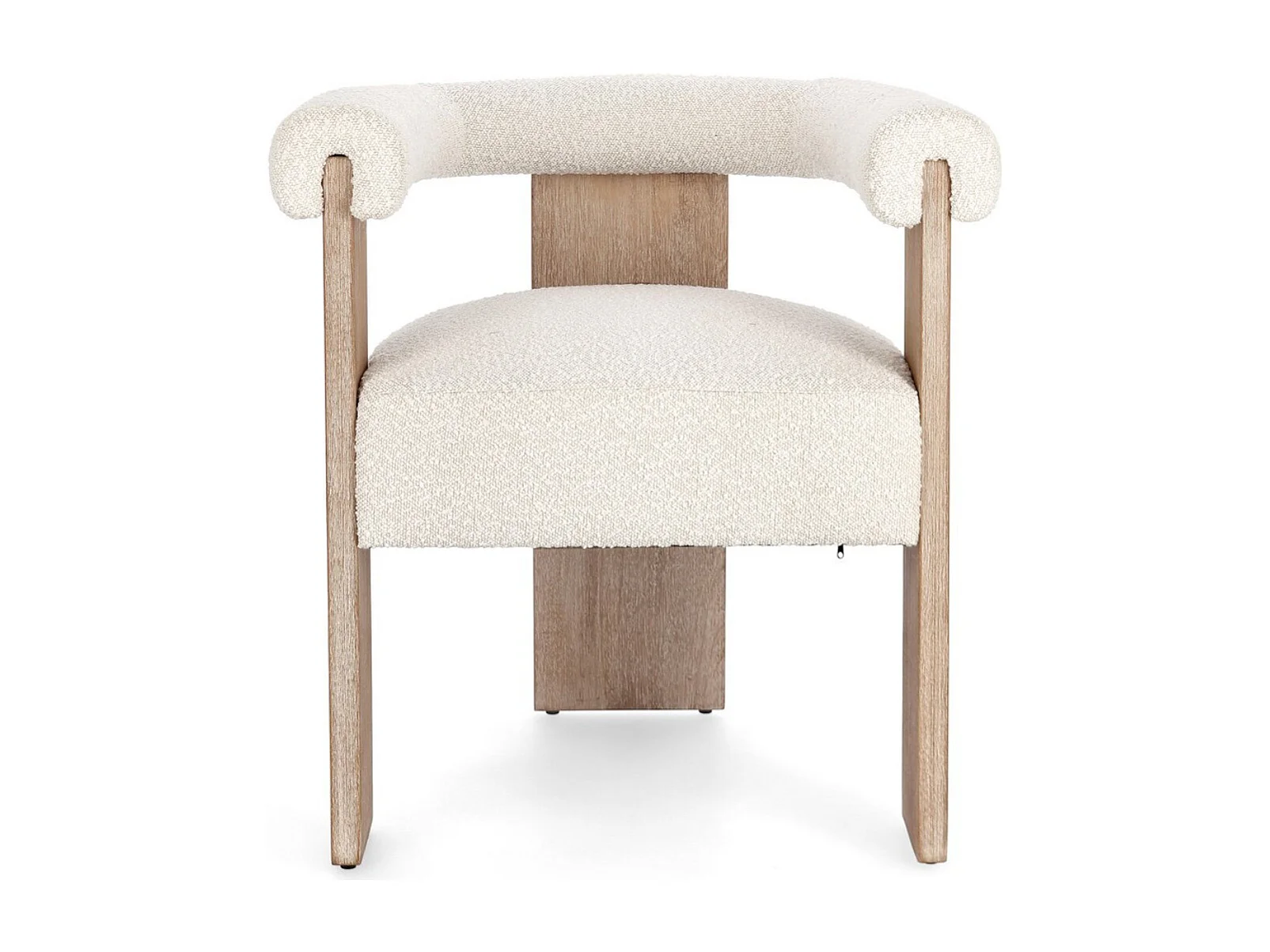 Chaise avec accoudoir en tissu bouclette et structure en bois – Modèle Agathy-Naturel/Beige clair
