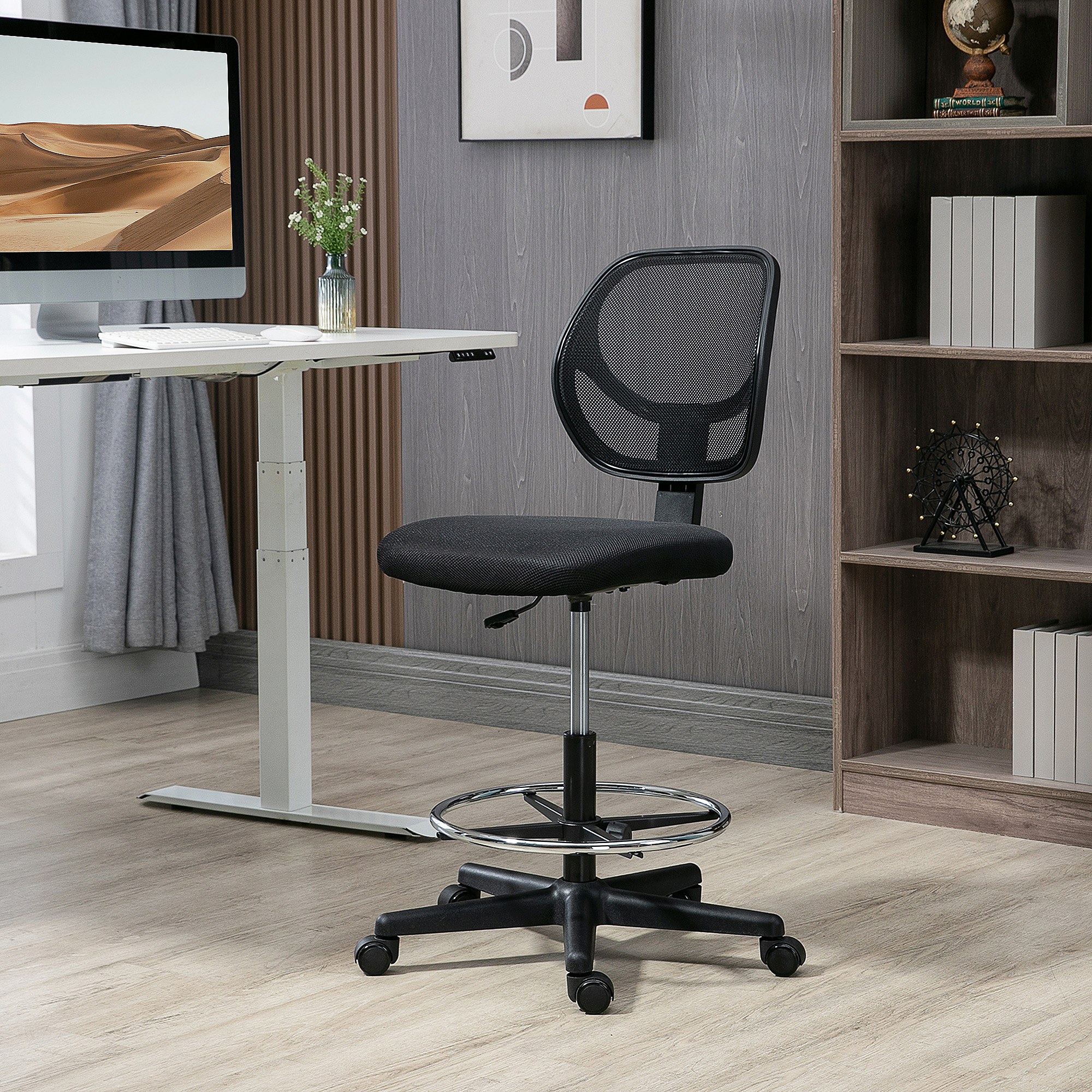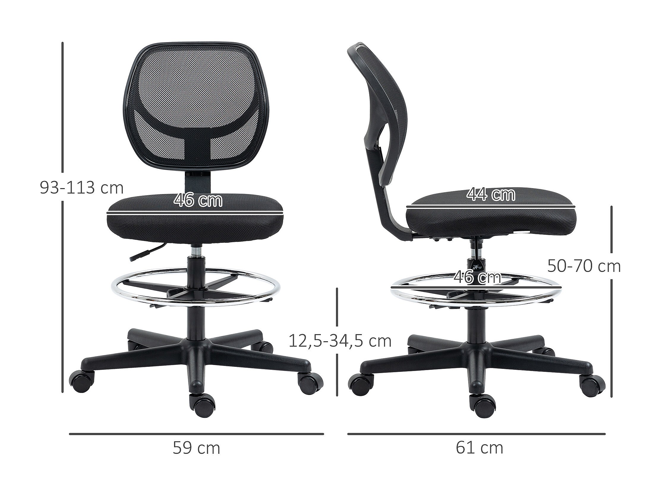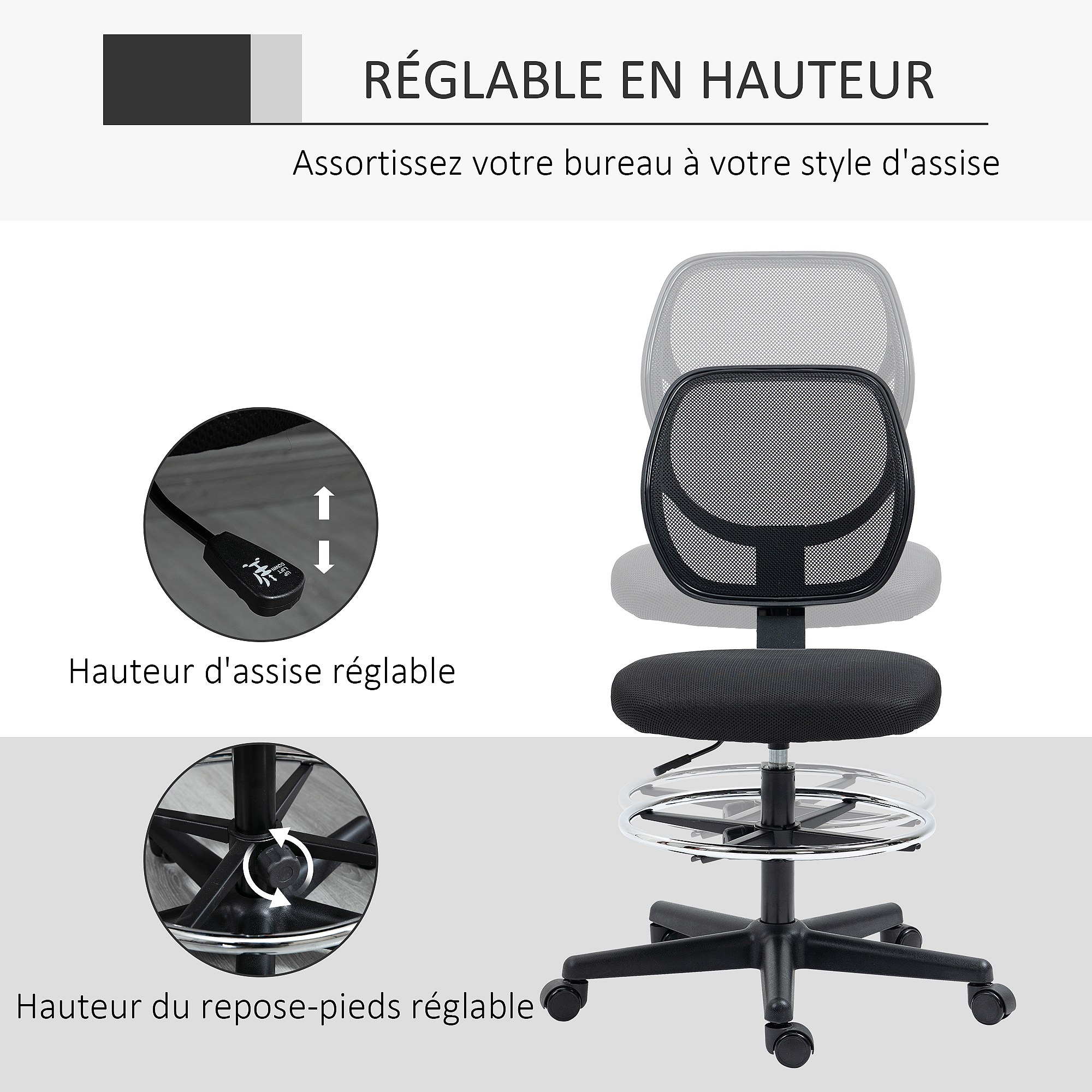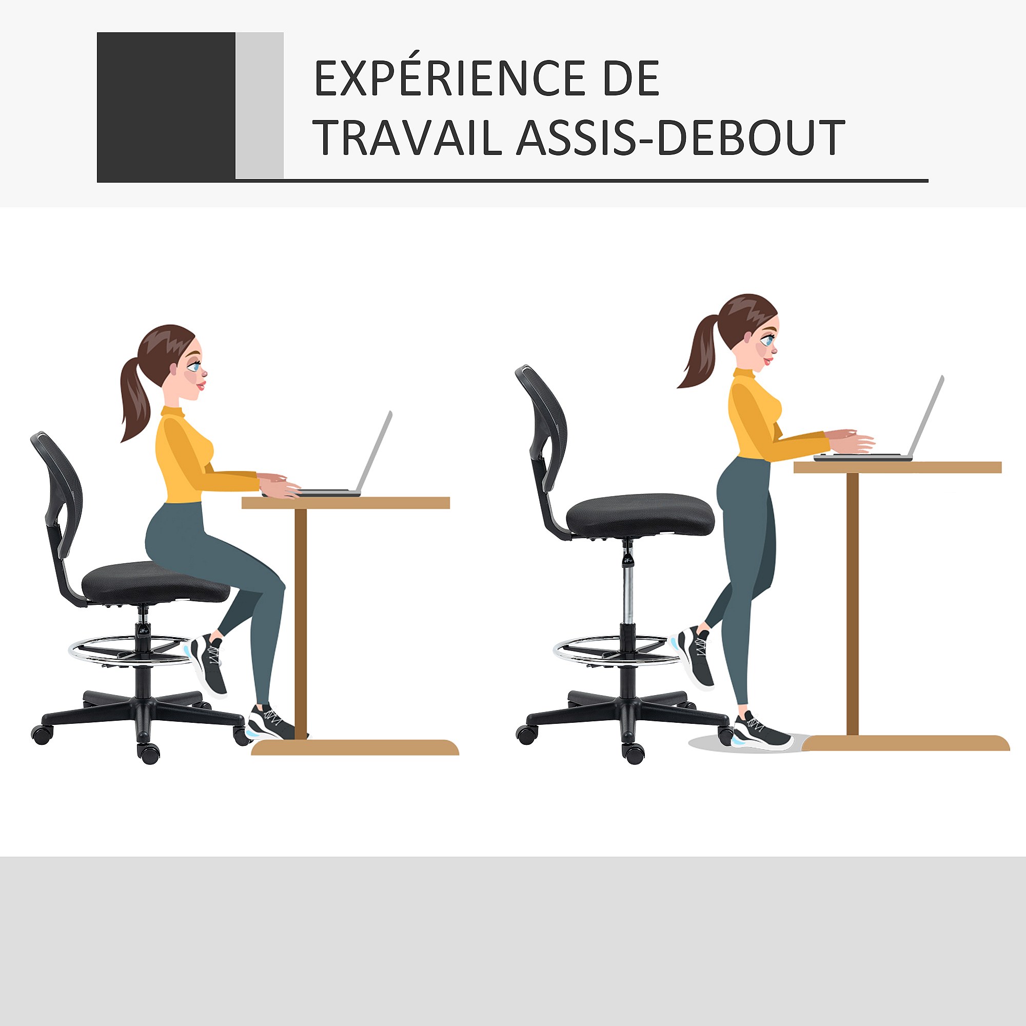 Chaise de bureau assise haute réglable dim. 59L x 61l x 93-113H cm pivotant 360° tissu maille respirante noir