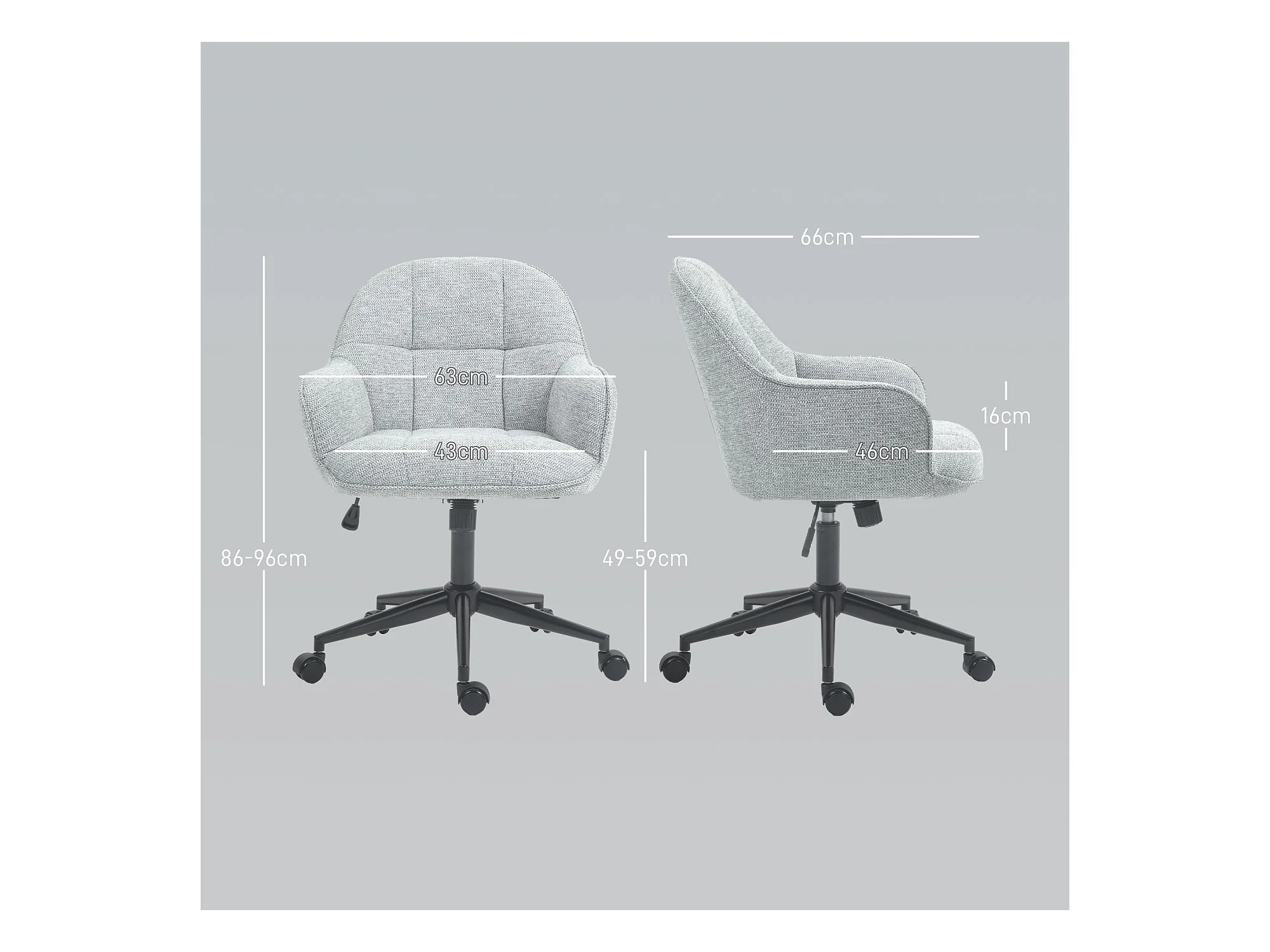 HOMCOM Chaise de bureau design contemporain dossier accoudoirs striés hauteur réglable pivotant 360° piètement chromé lin gris clair
