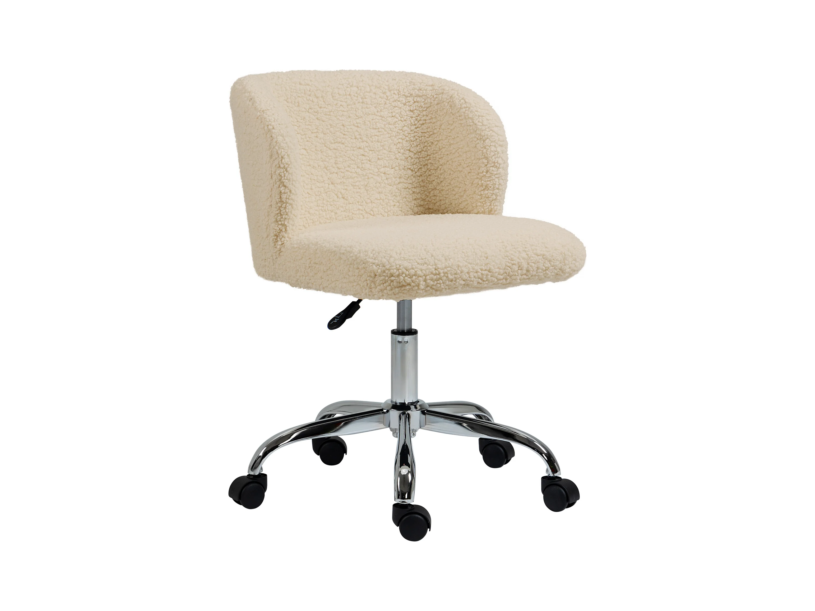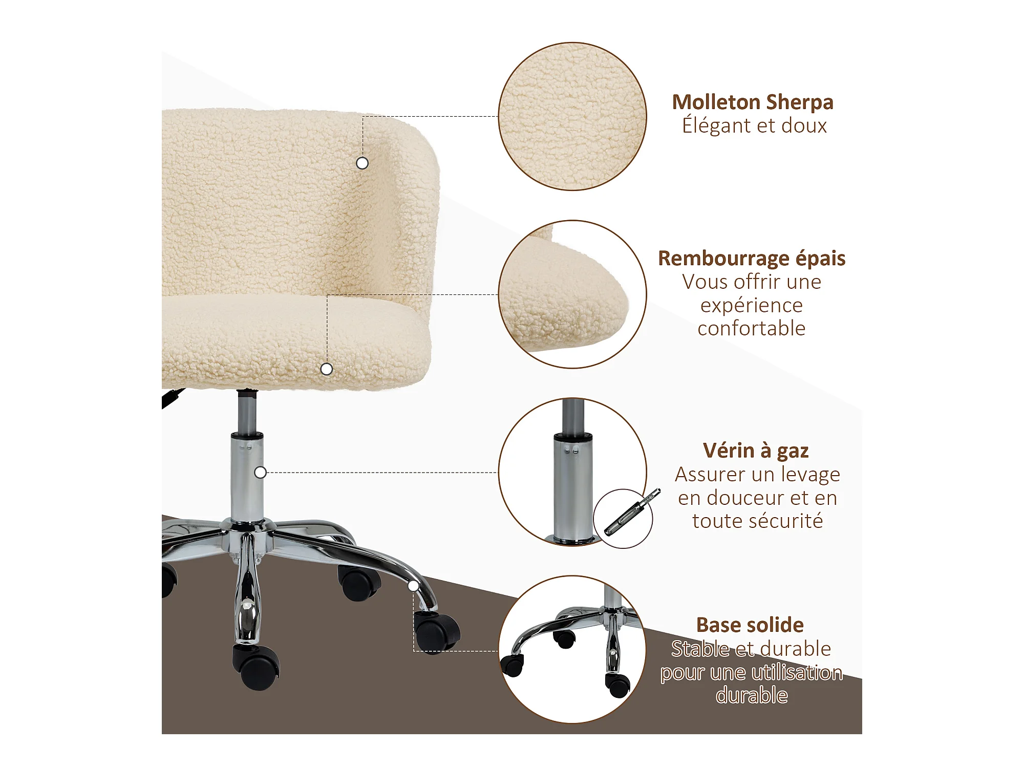Chaise de bureau design - hauteur réglable, pivotante - piètement acier chromé revêtement effet laine bouclée terre de sienne