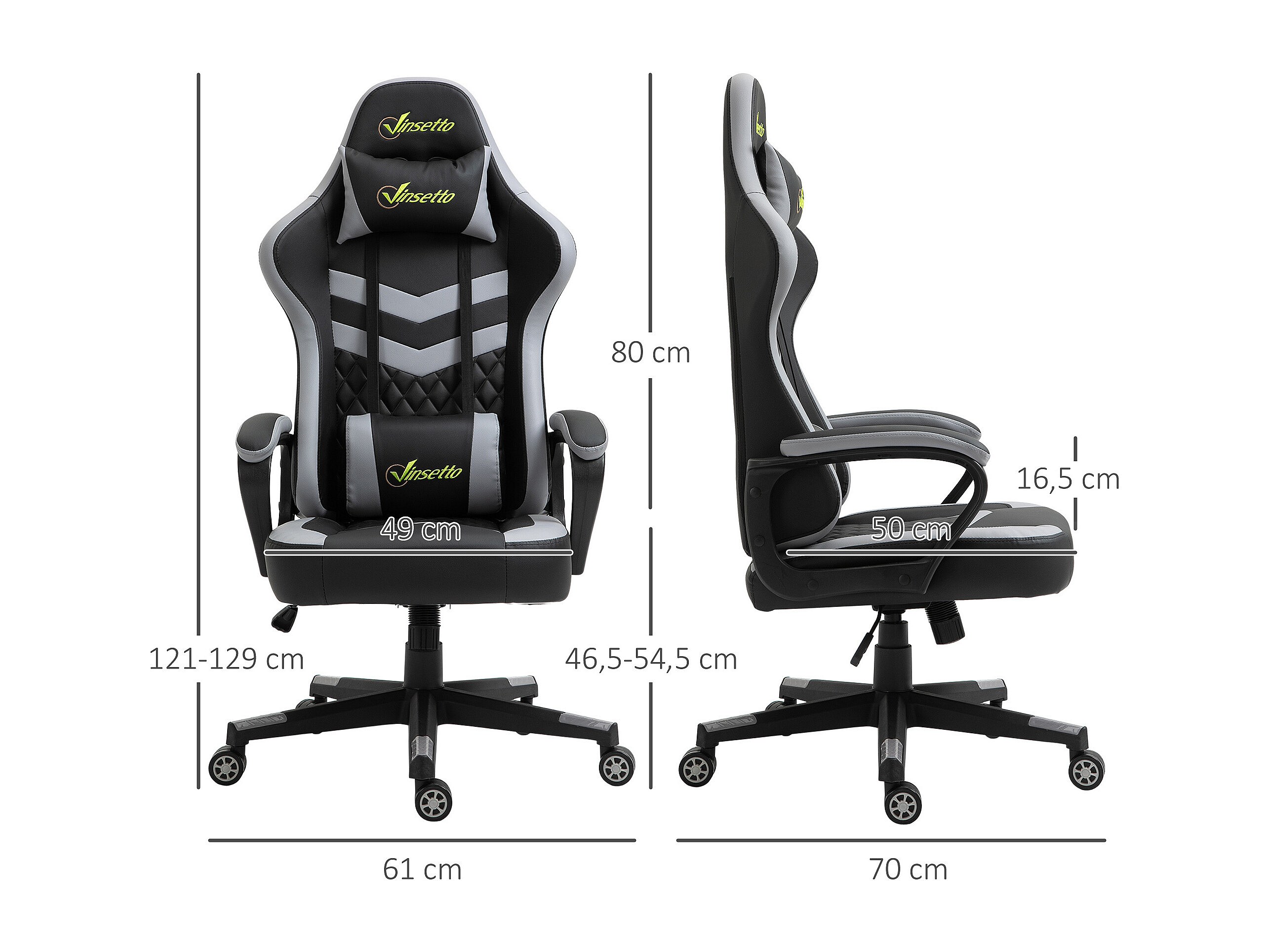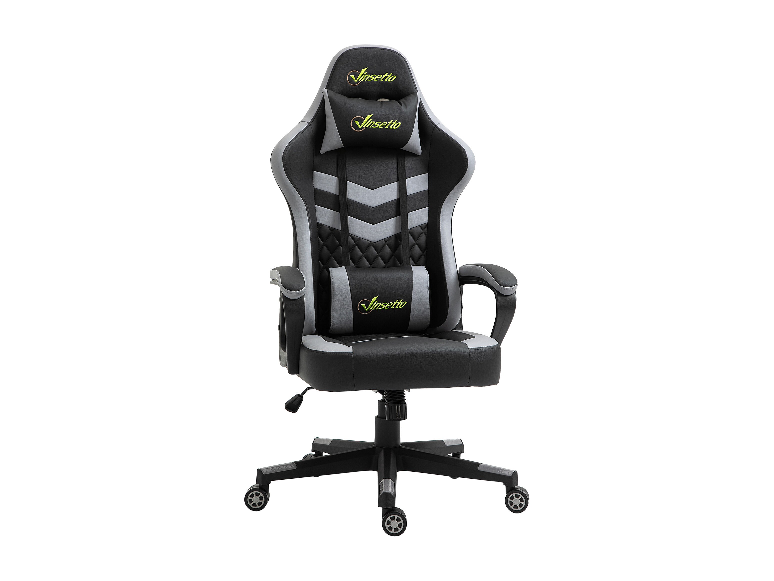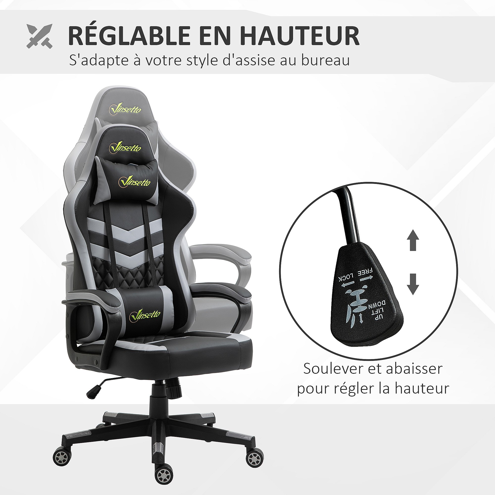Chaise de bureau gaming réglable - coussin lombaires et tétière inclus - fonction bascule verrouillable - noir gris
