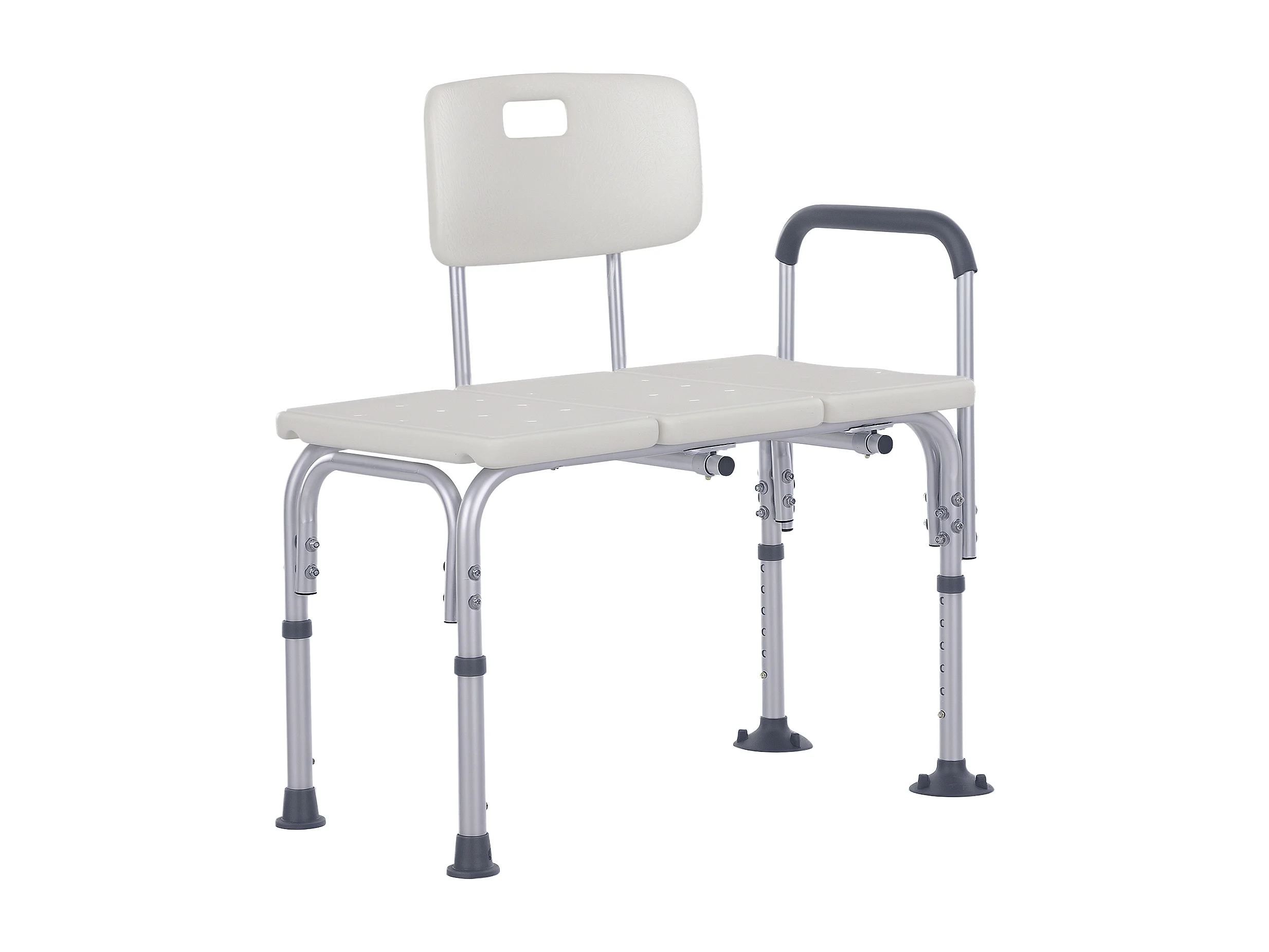 Chaise de douche siège de douche ergonomique hauteur réglable pieds antidérapants dossier accoudoirs amovibles charge max. 136 Kg alu HDPE blanc