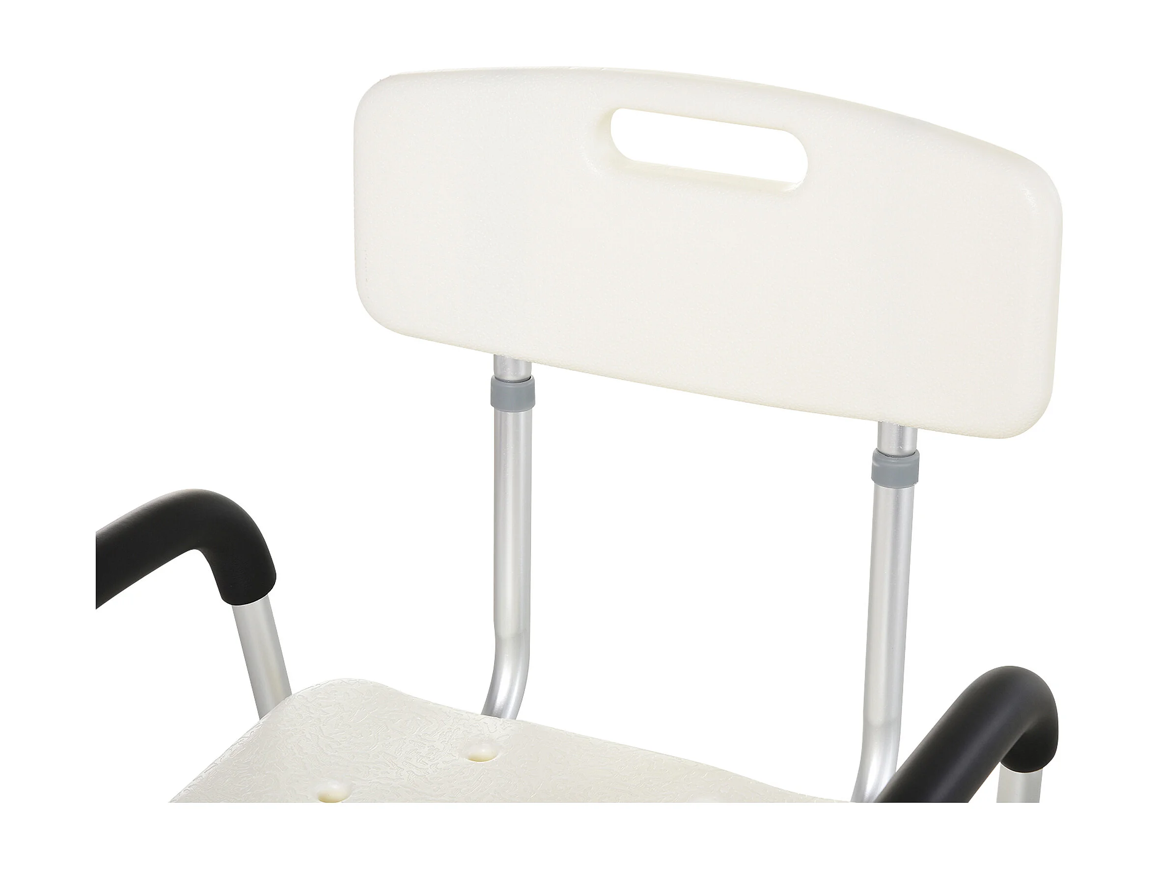 Chaise de douche siège de douche ergonomique hauteur réglable pieds antidérapants dossier accoudoirs amovibles charge max. 136 Kg alu HDPE blanc