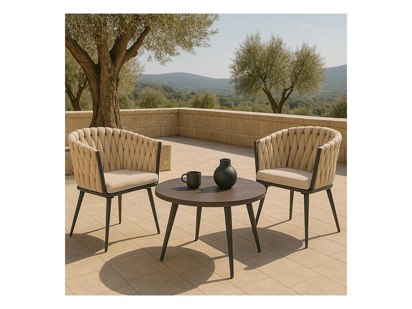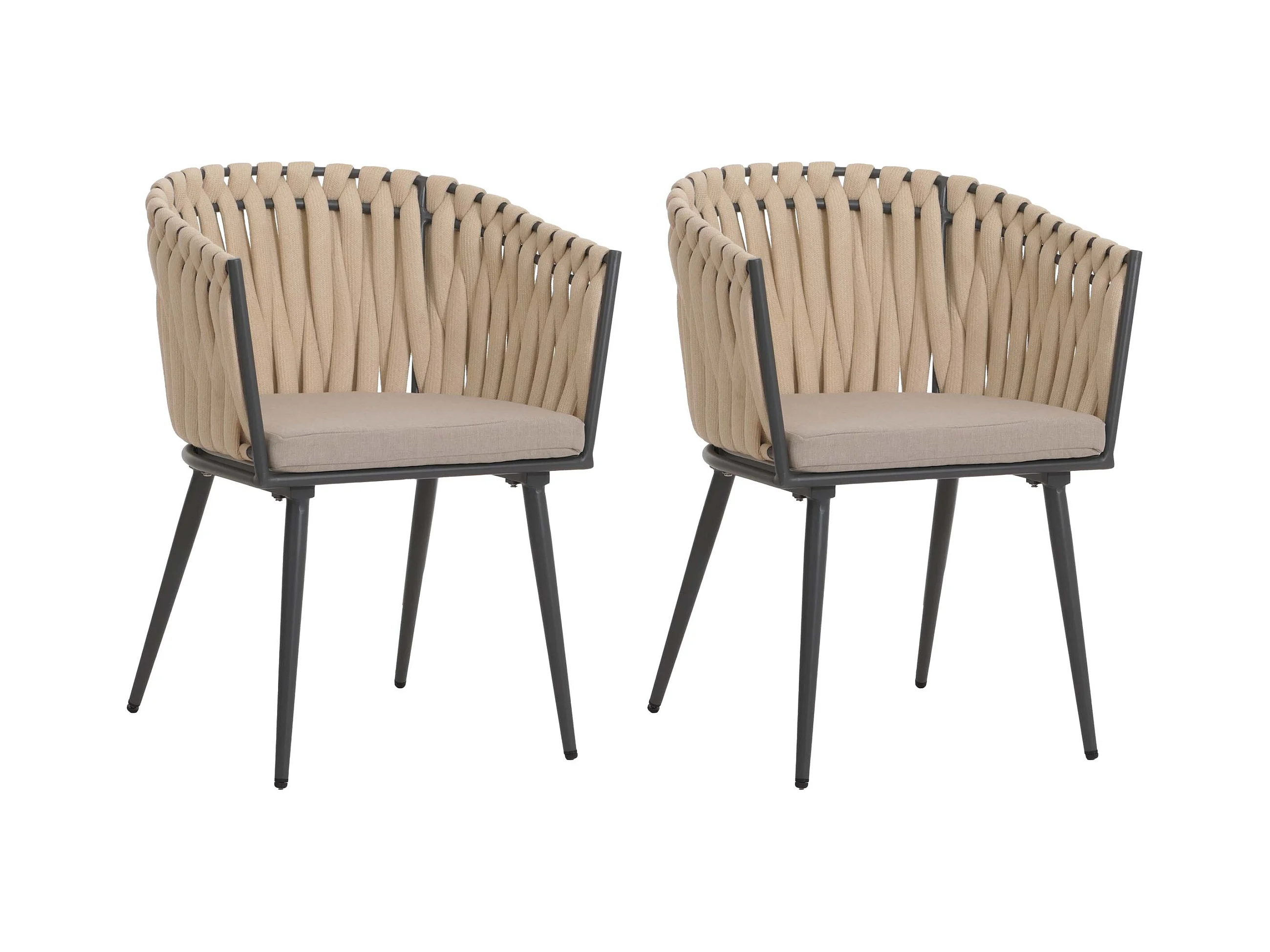 Chaise de jardin MCW-N38 (lot de 2), crème Coussin marron clair