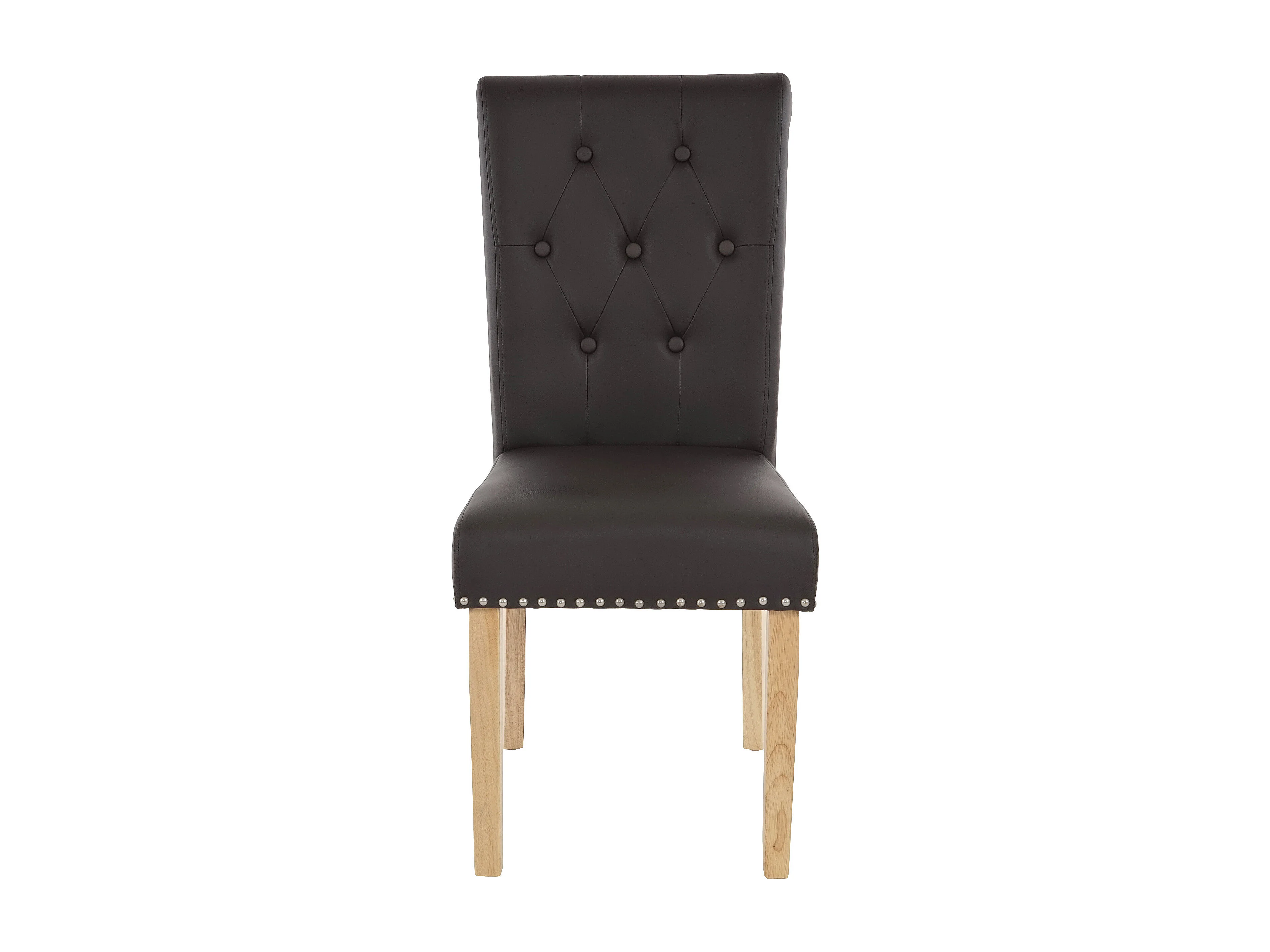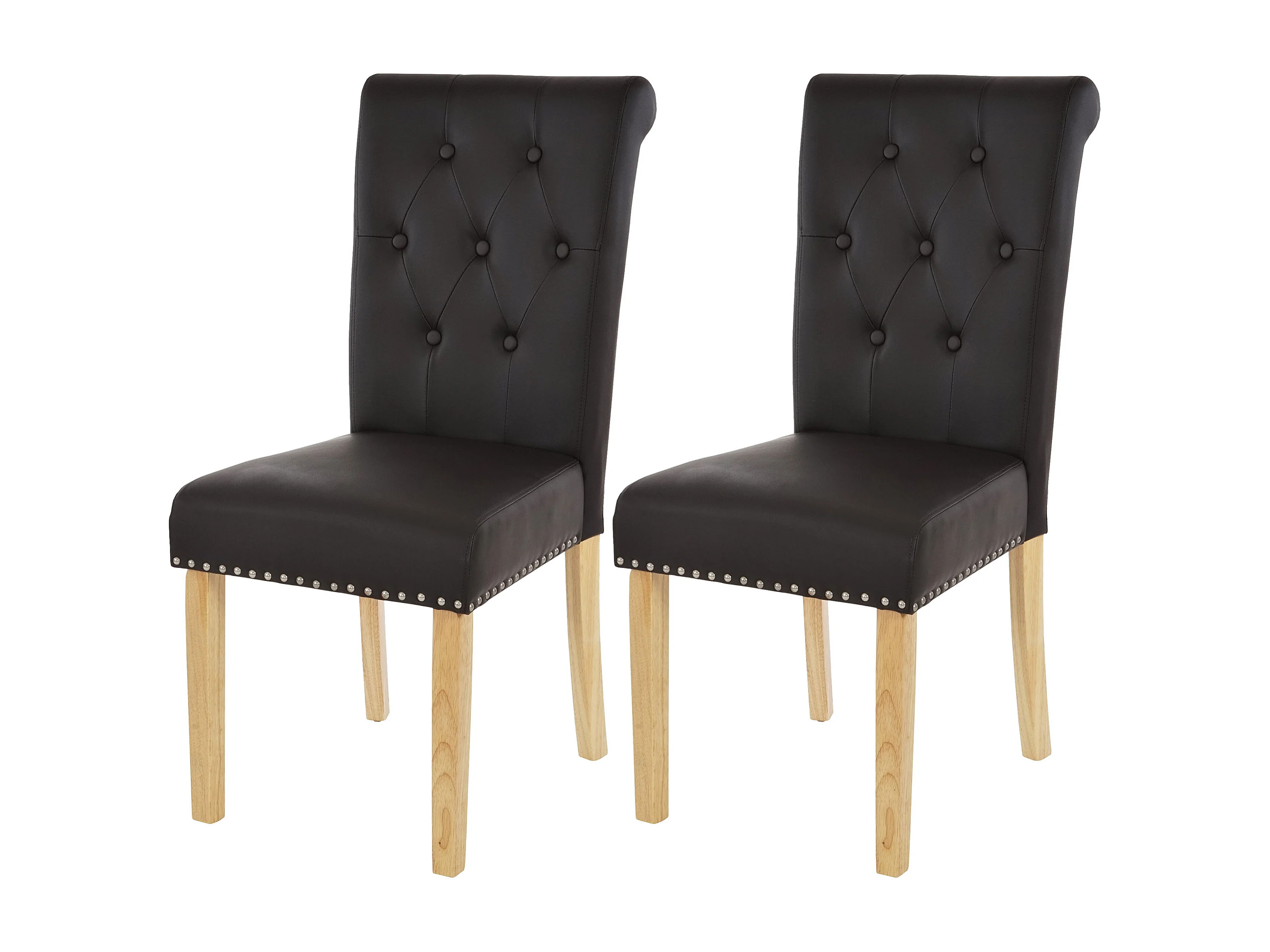 Chaise de salle à manger Chesterfield II (lot de 2), similicuir brun foncé, pieds clairs