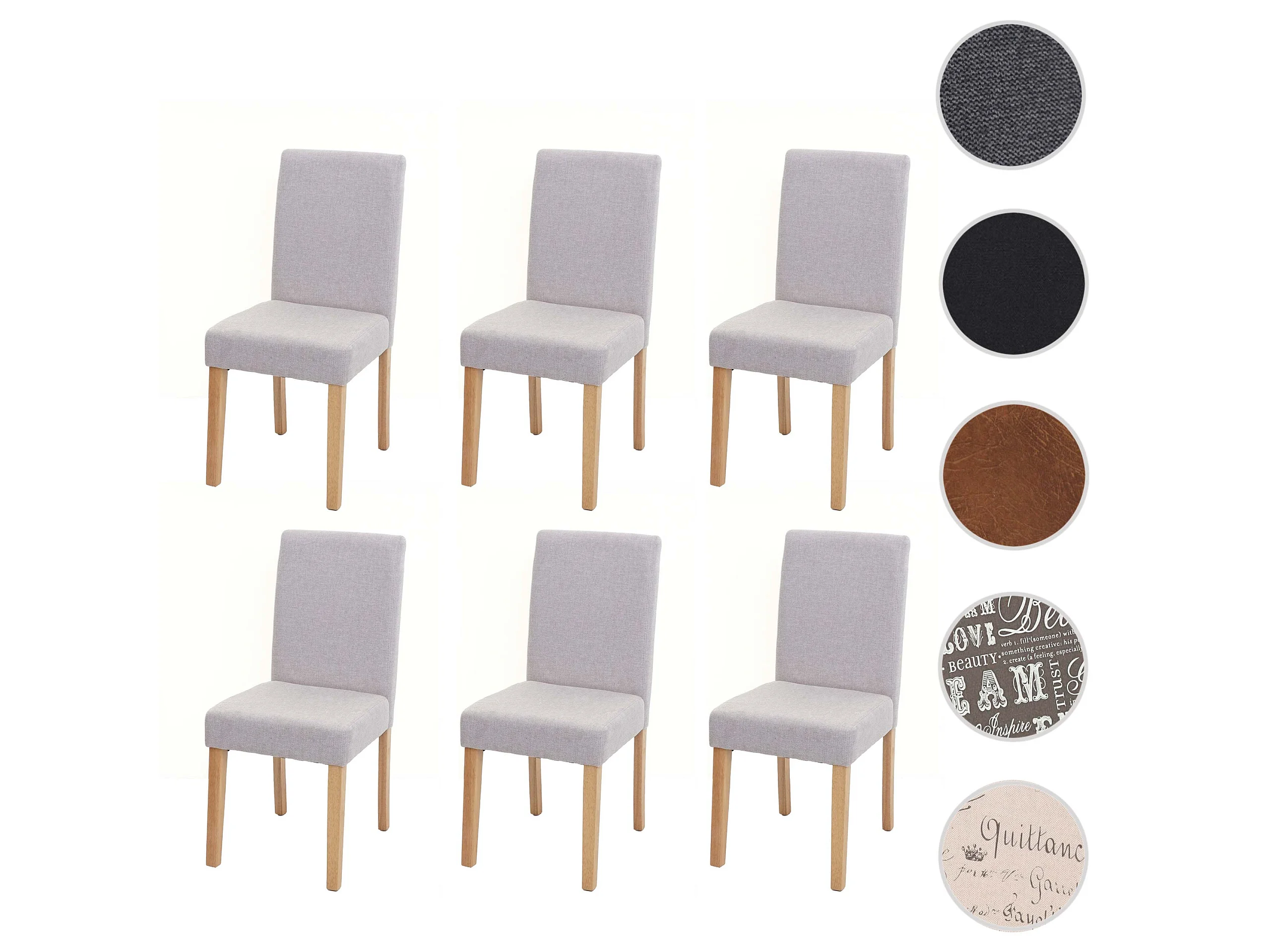 Chaise de salle à manger Littau (lot de 6), textile, crème-beige, pieds clairs