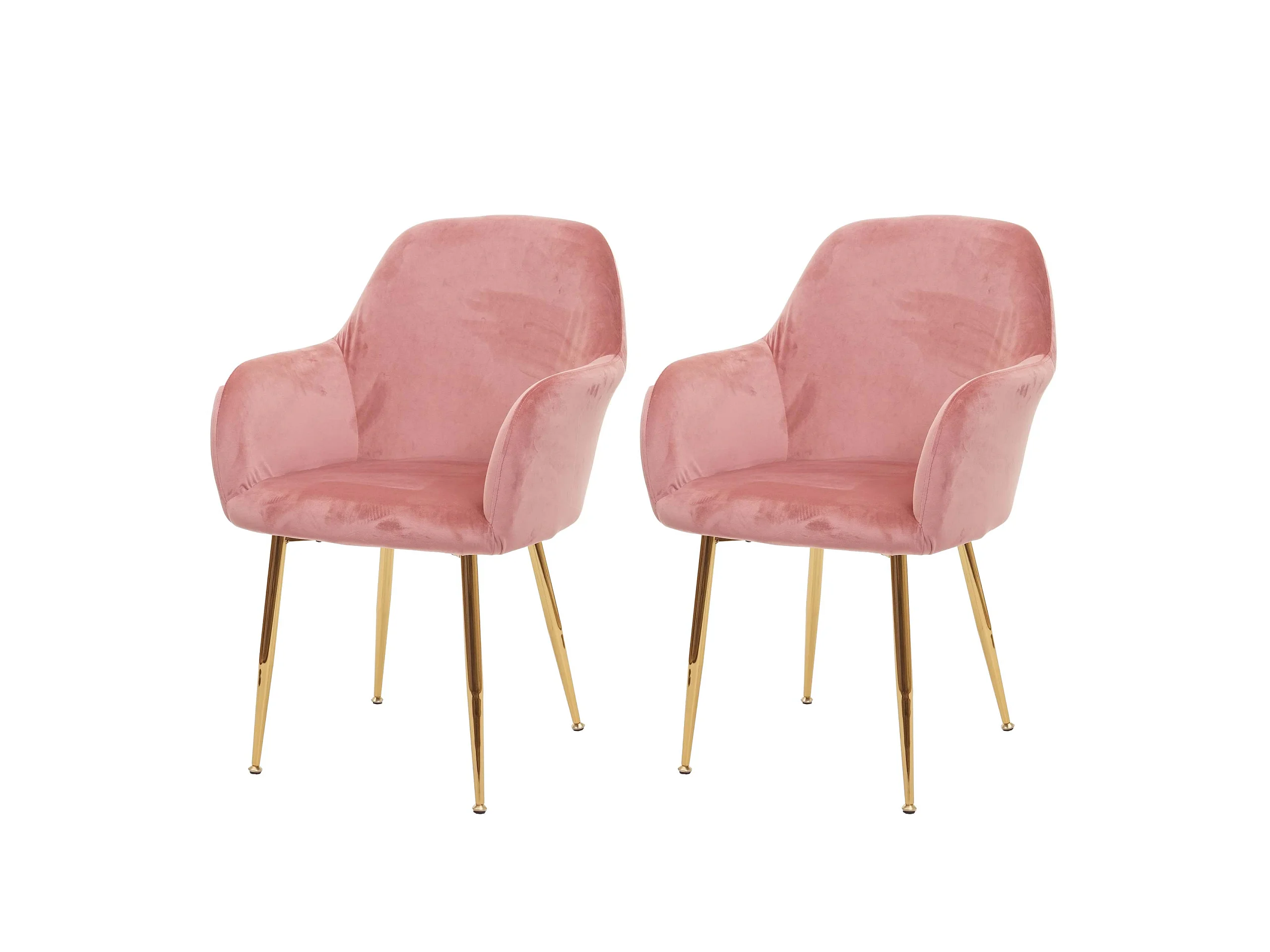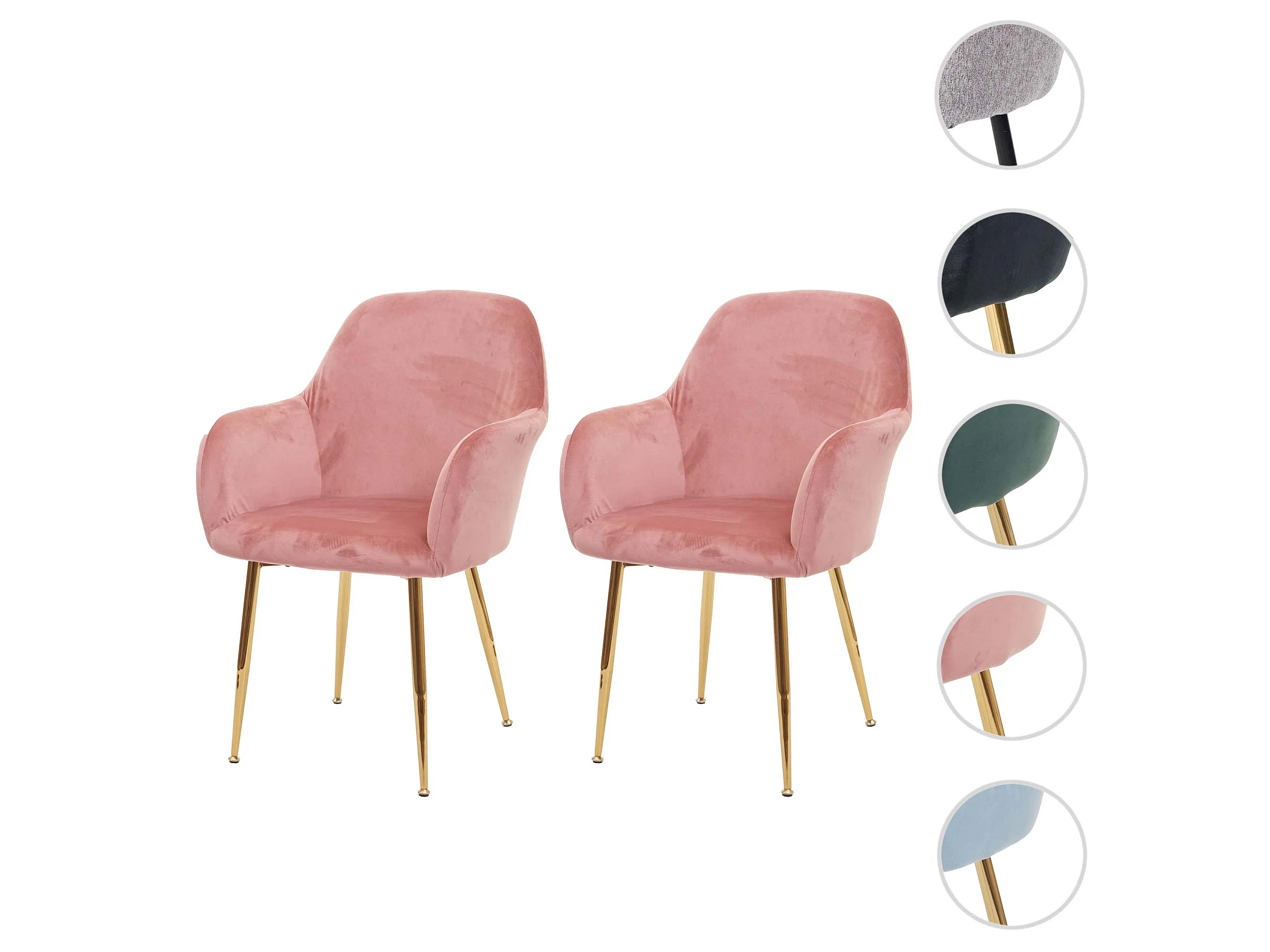 Chaise de salle à manger MCW-F18 (lot de 2), velours vieux rose, pieds dorés