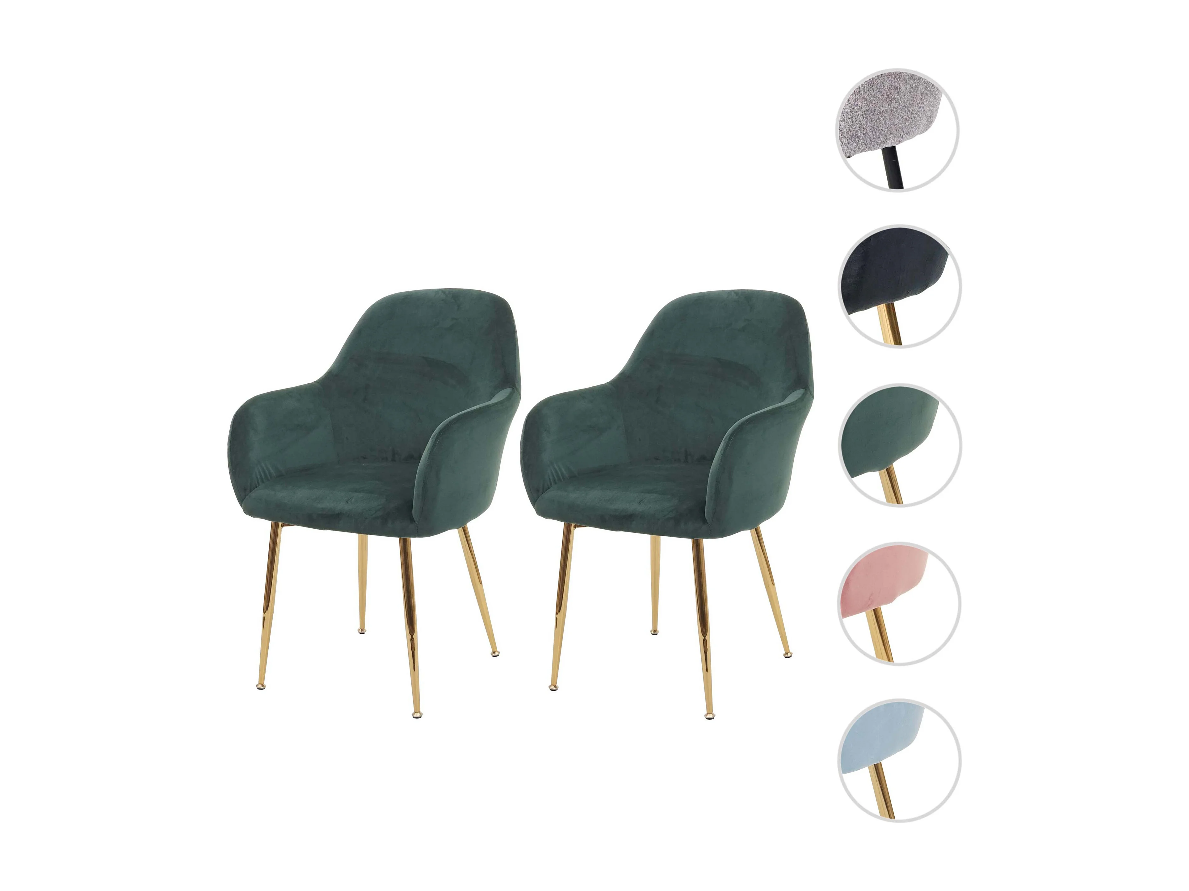 Chaise de salle à manger MCW-F18 (lot de 2), vert velours, pieds dorés