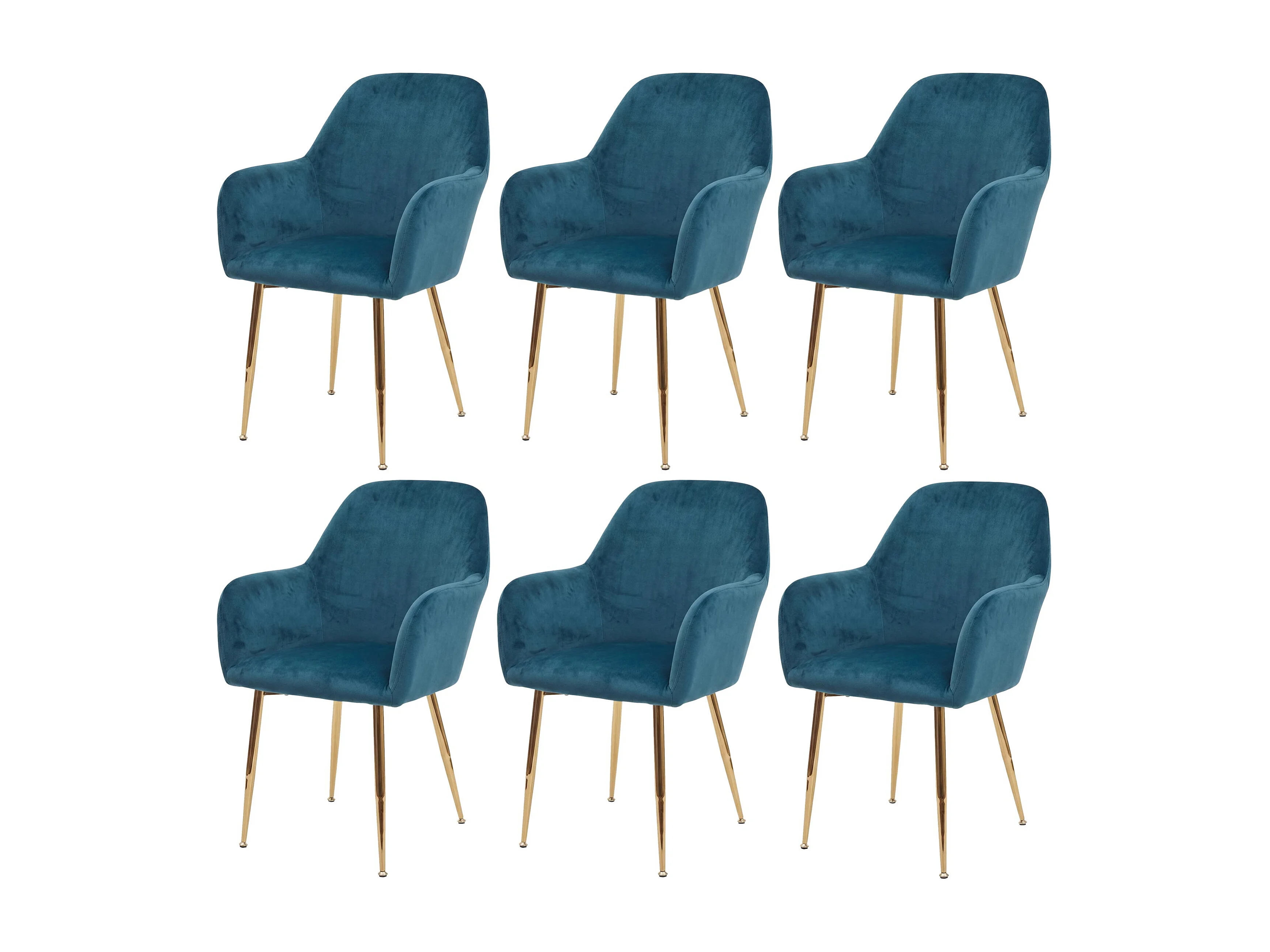 Chaise de salle à manger MCW-F18 (lot de 6), velours menthe, pieds dorés