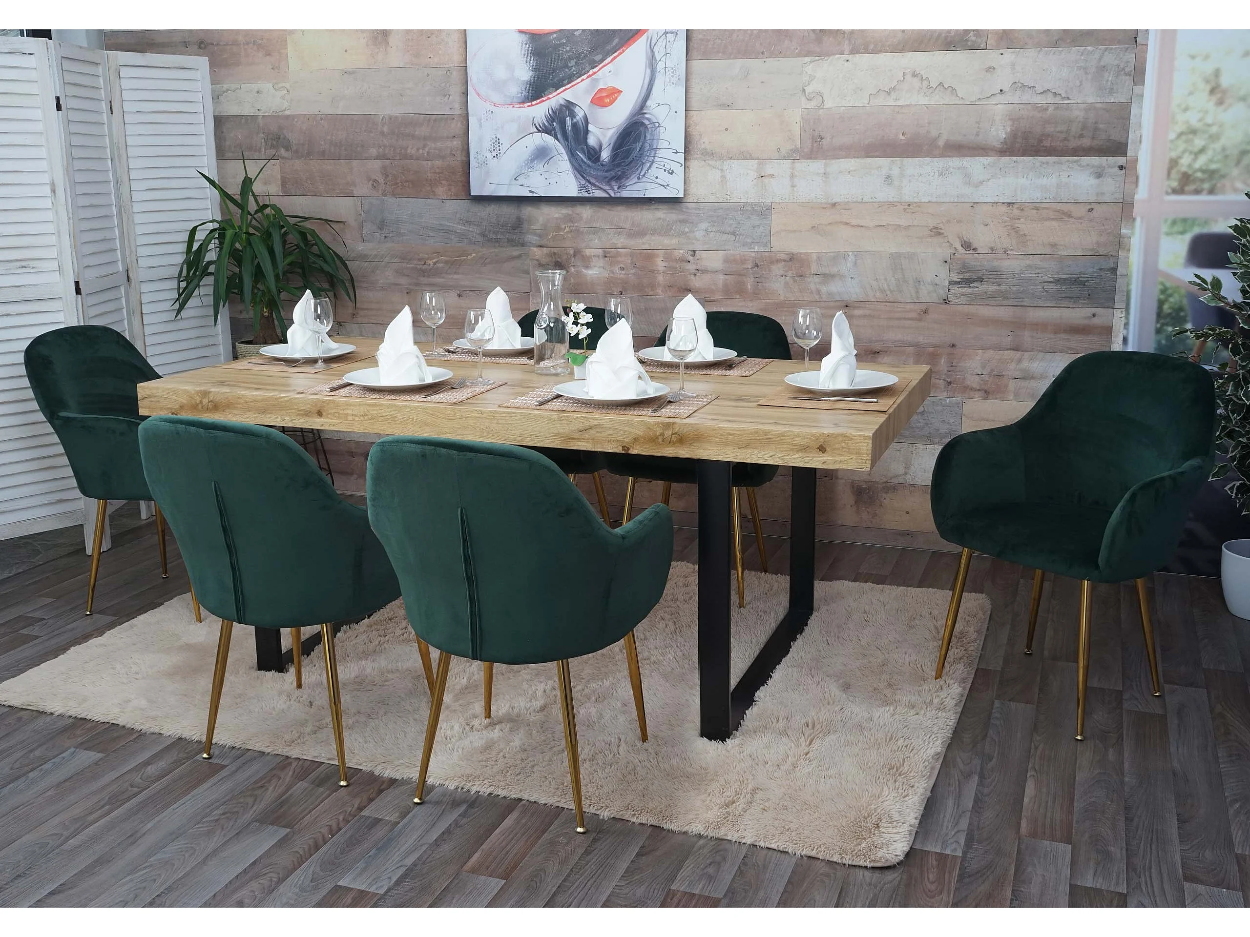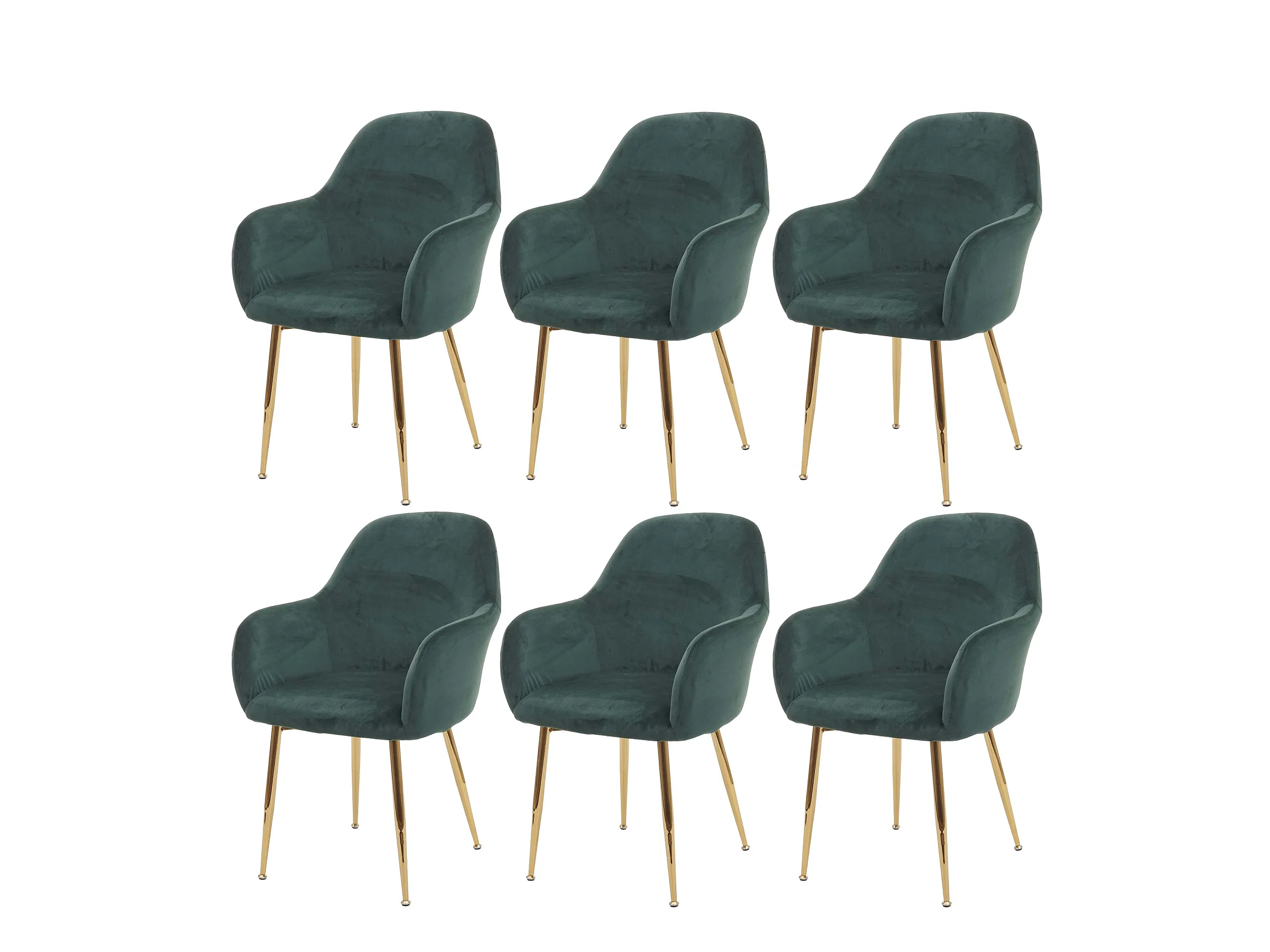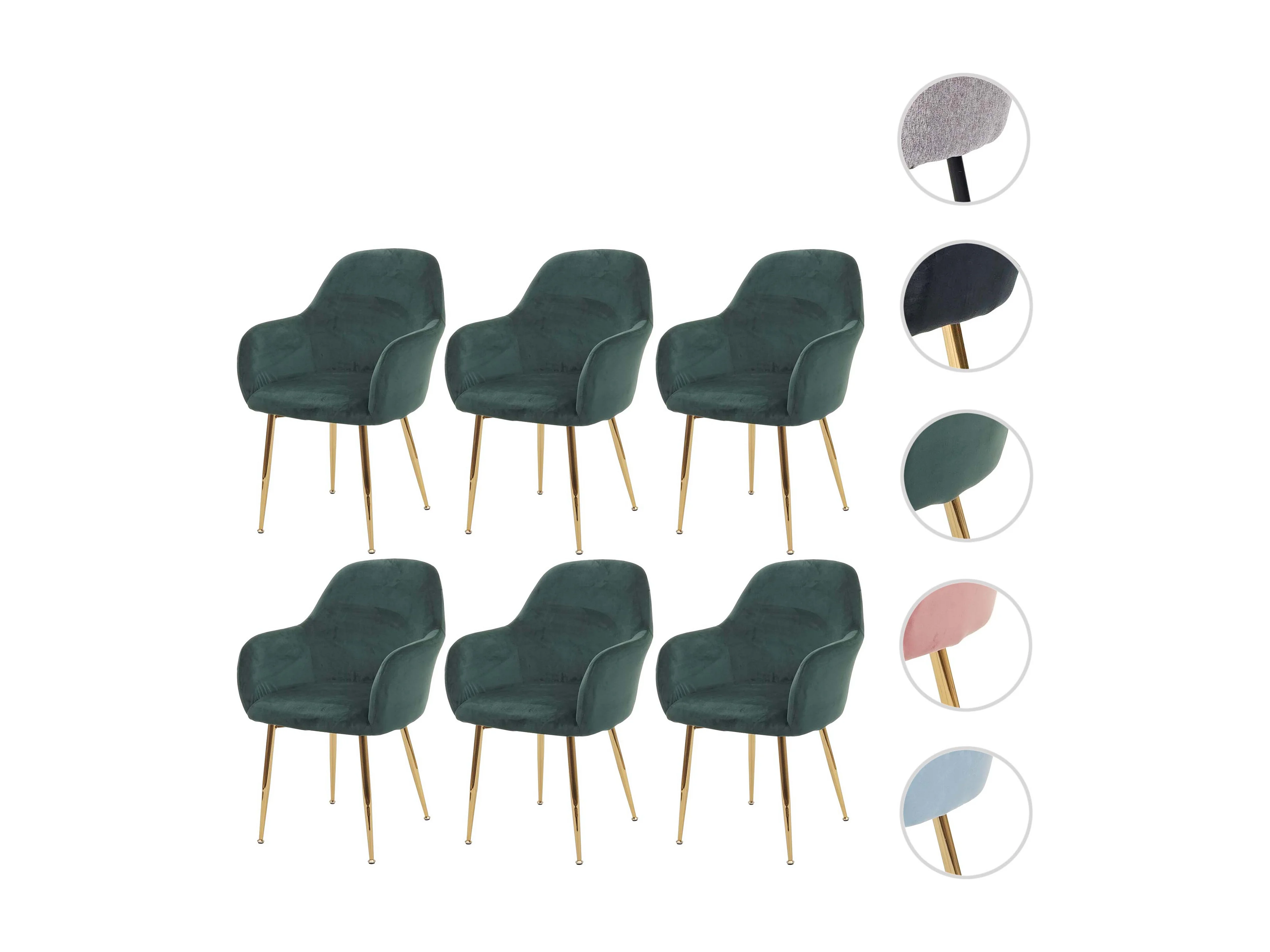 Chaise de salle à manger MCW-F18 (lot de 6), velours vert, pieds dorés