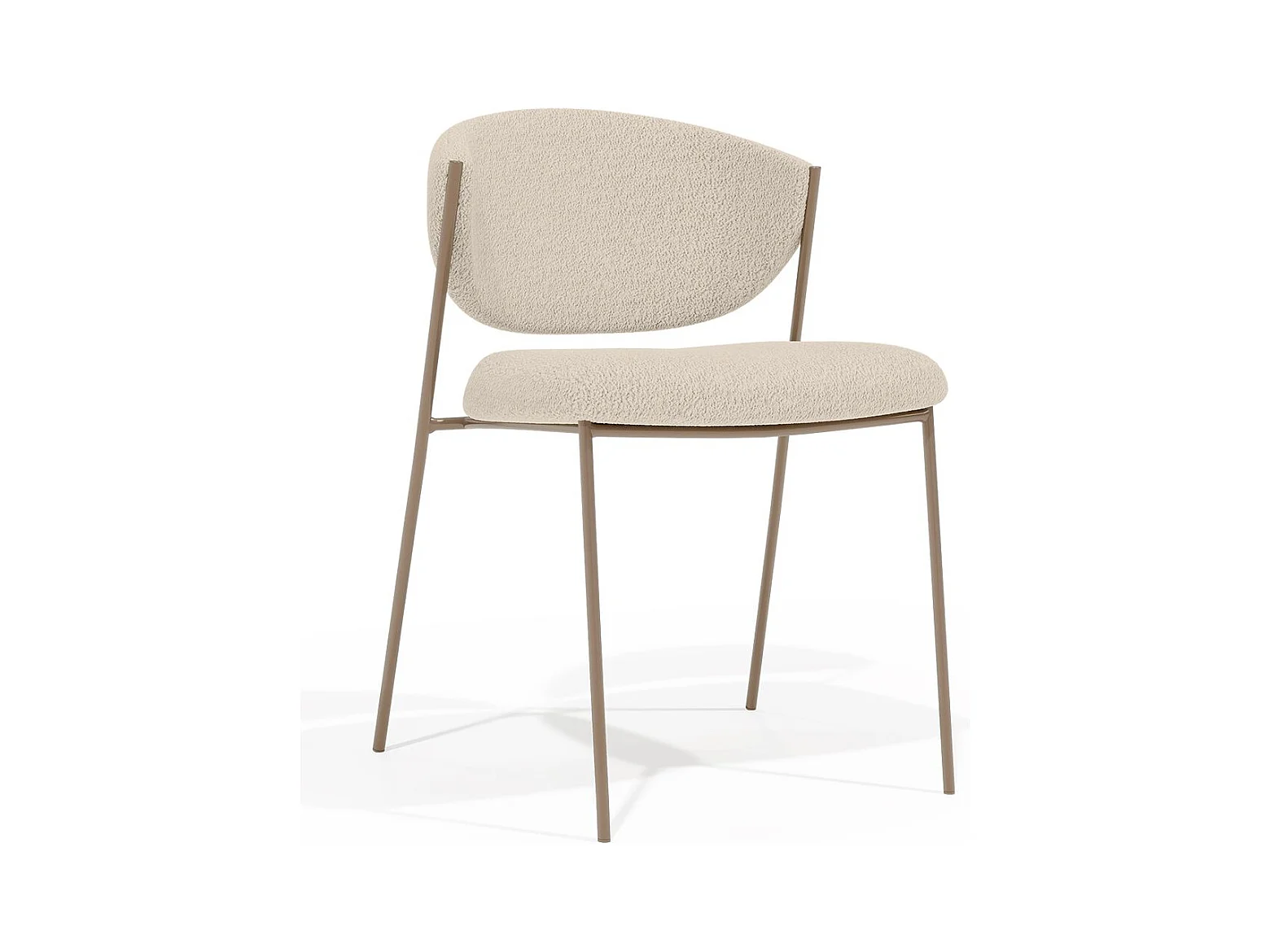 Chaise en tissu bouclé et structure métallique champagne Lozane - Modernité et qualité-Blanc