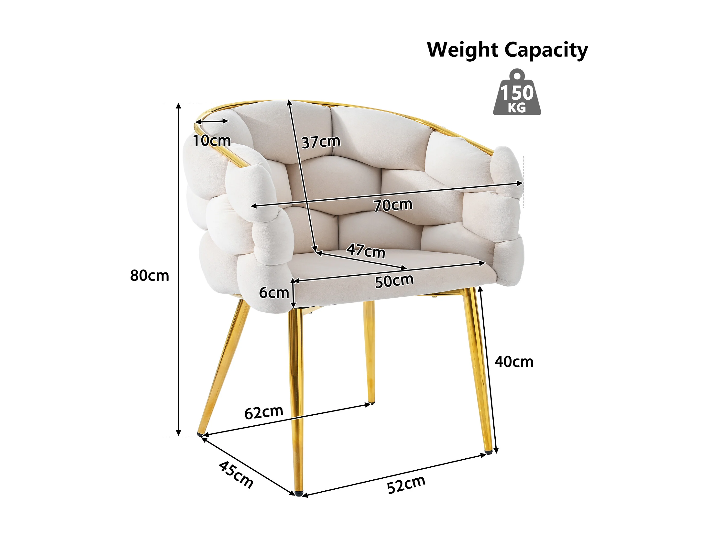 Chaise en velours avec dossier rembourré et accoudoirs - pieds en métal doré - beige