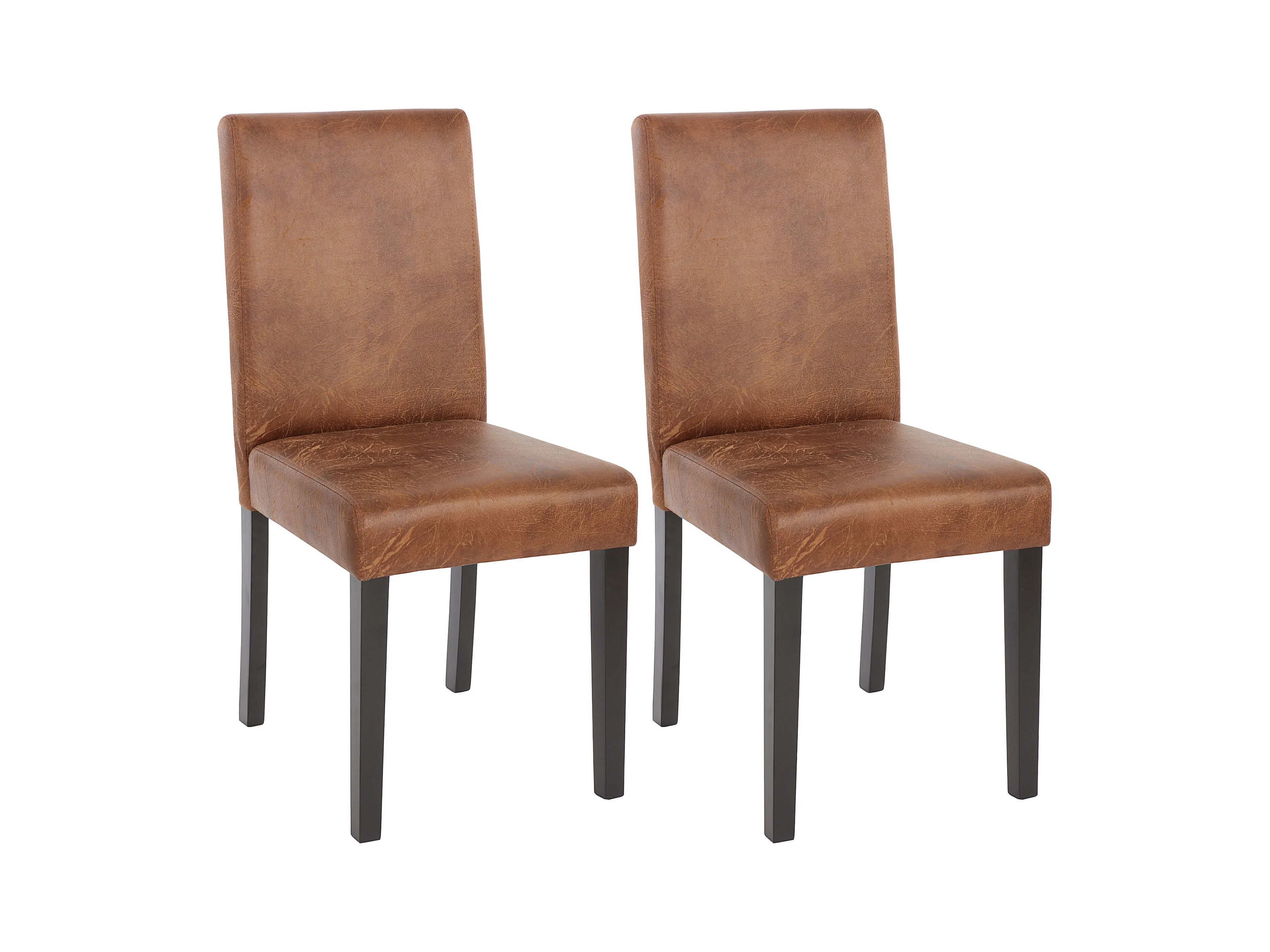 Chaise de salle à manger Littau similicuir (lot de 2), simili-cuir, aspect daim marron, pieds foncés
