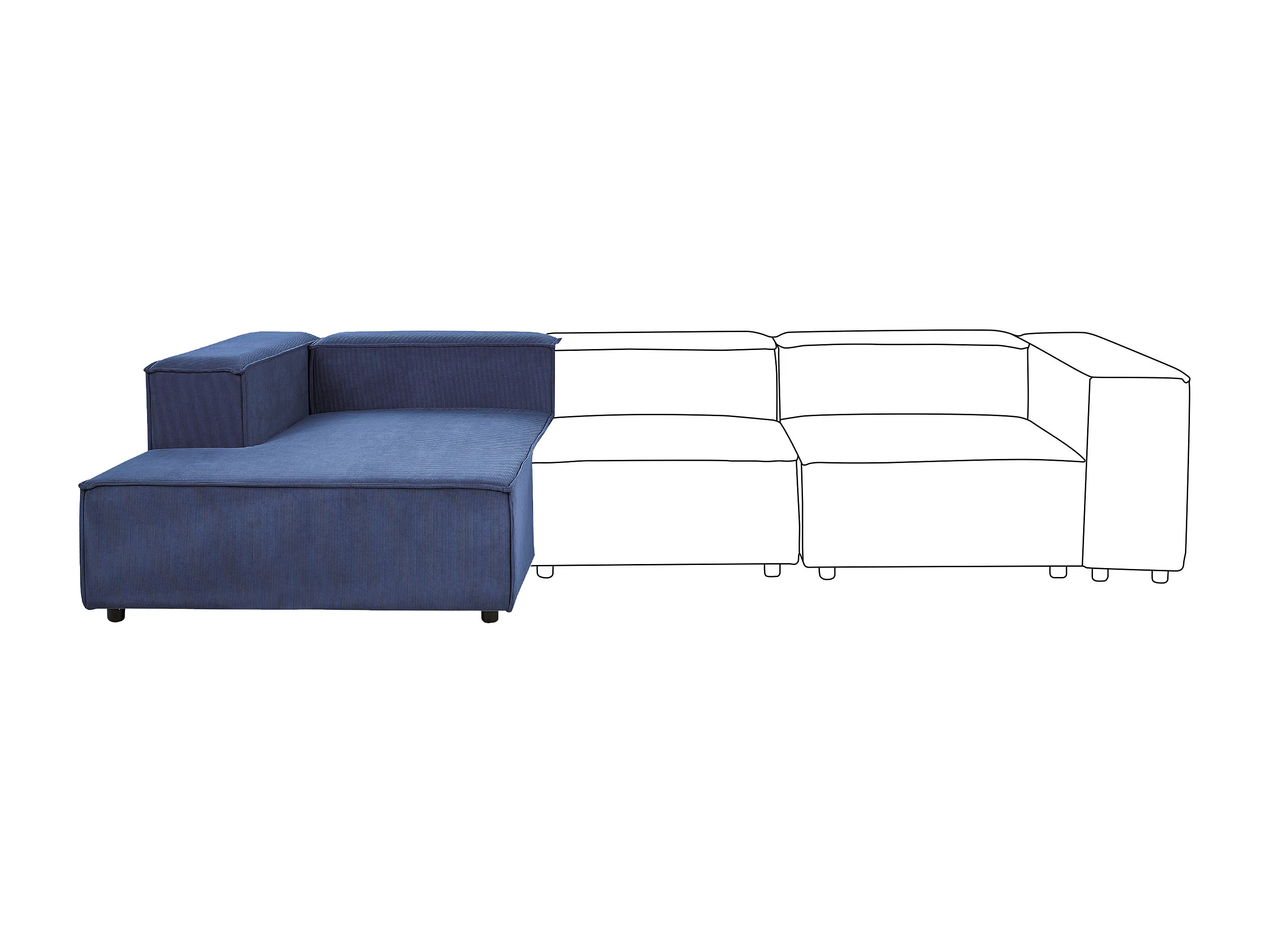 Chaise longue côté droit ARDAL Velours côtelé Bleu foncé